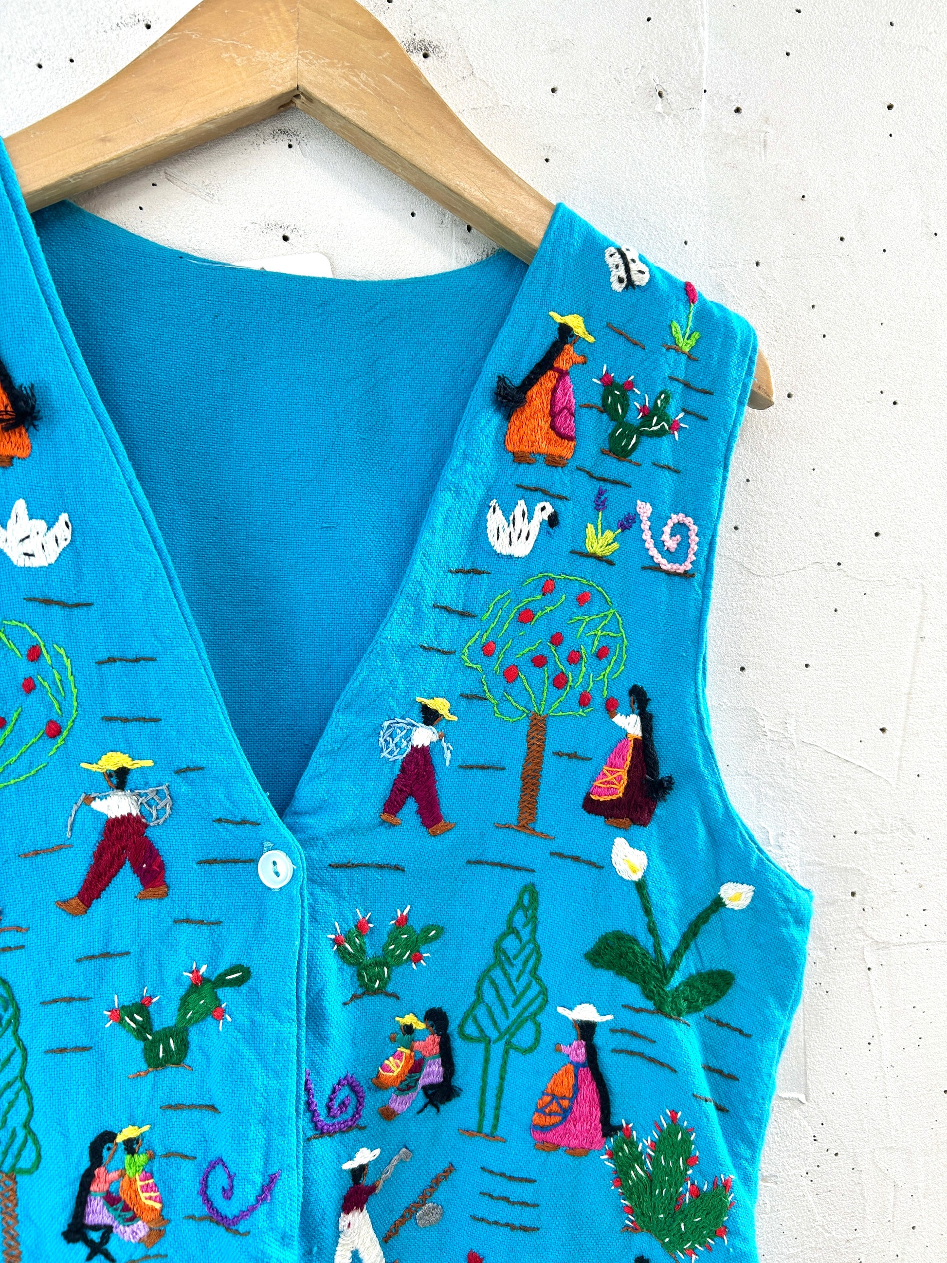 爽やかなブルーボディにメキシカン刺繍が施された1着。