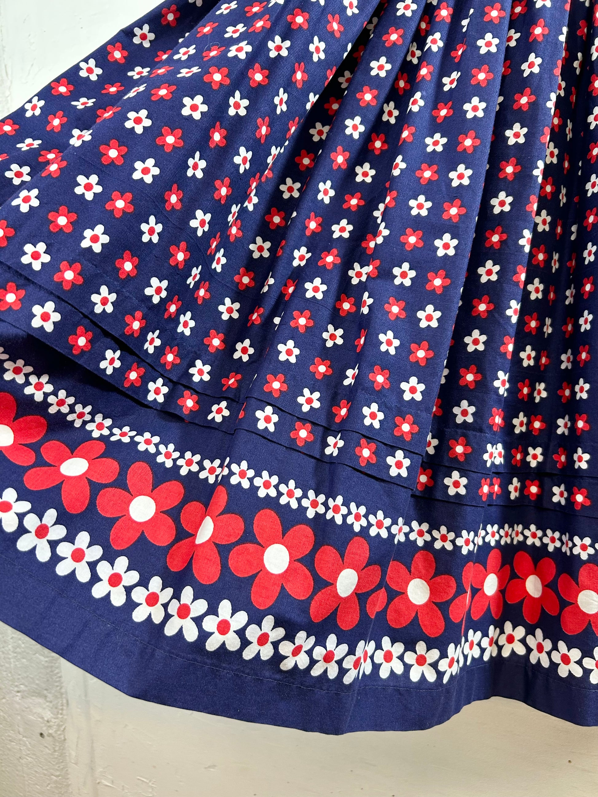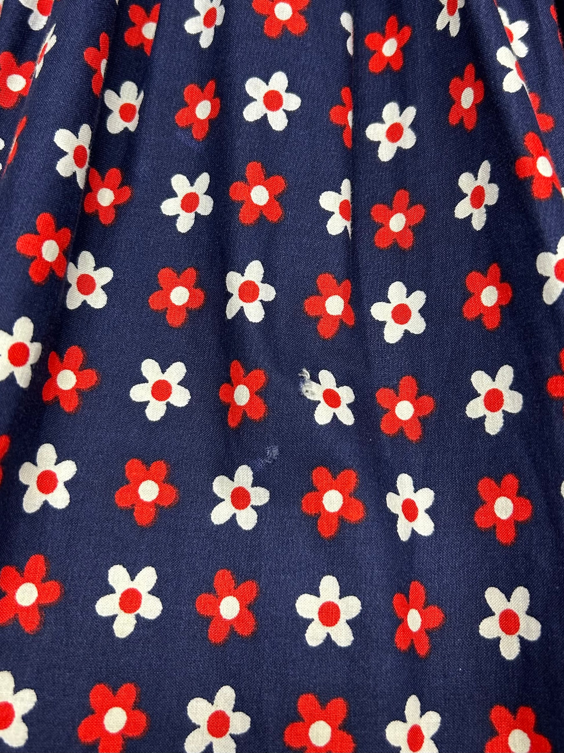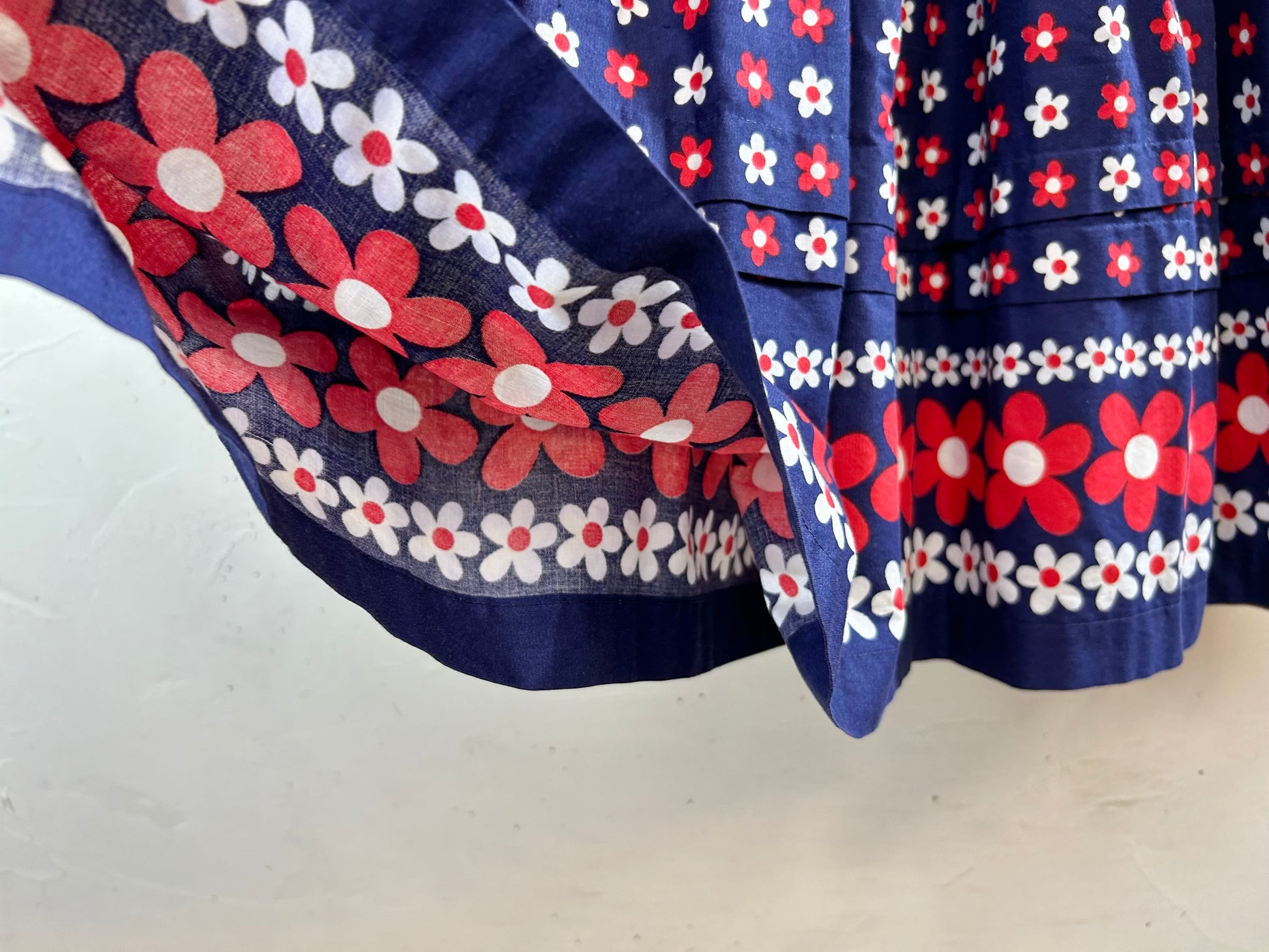 レッドとホワイトのこの時代らしいポップなフラワーが可愛らしい1着。