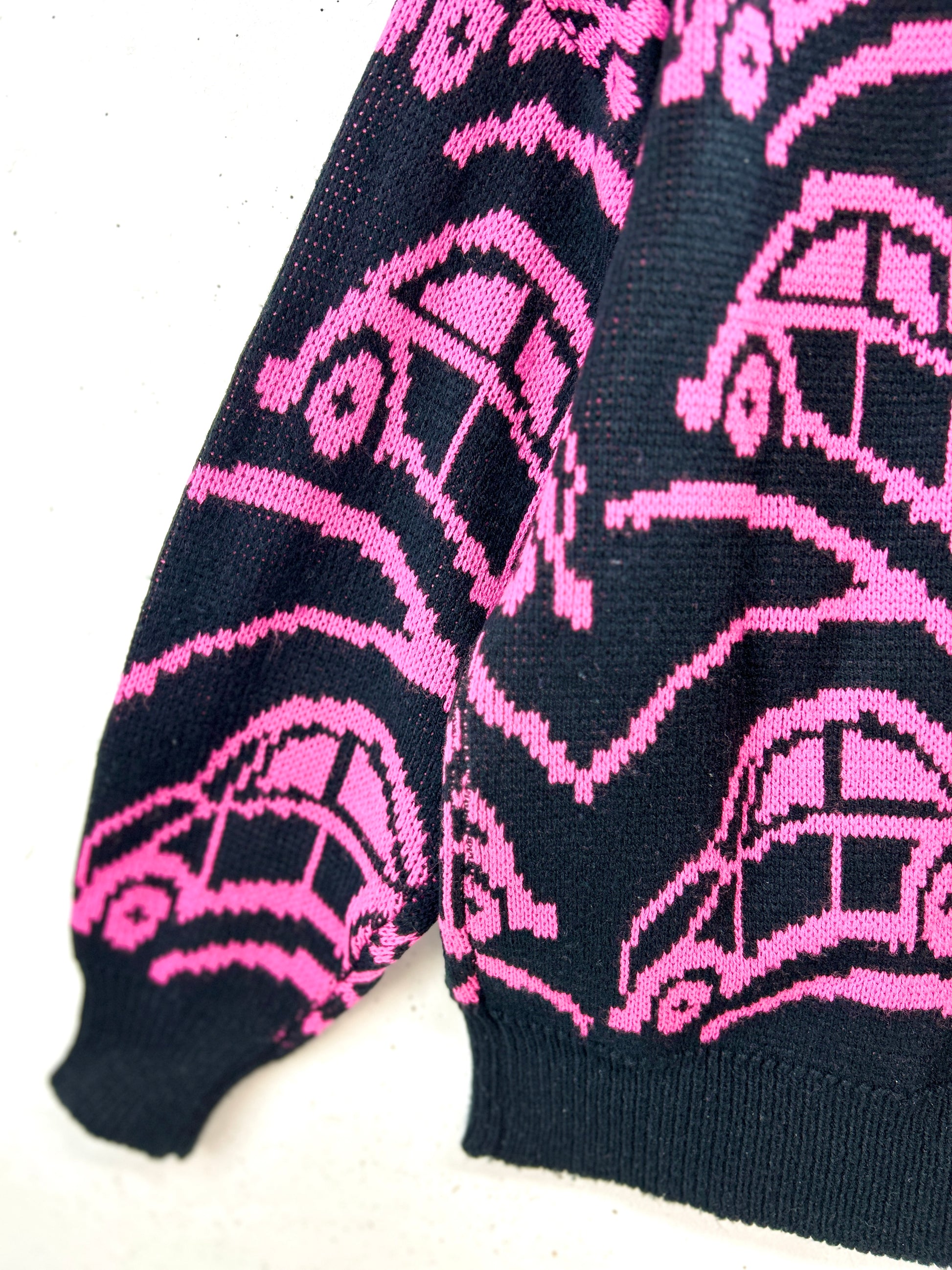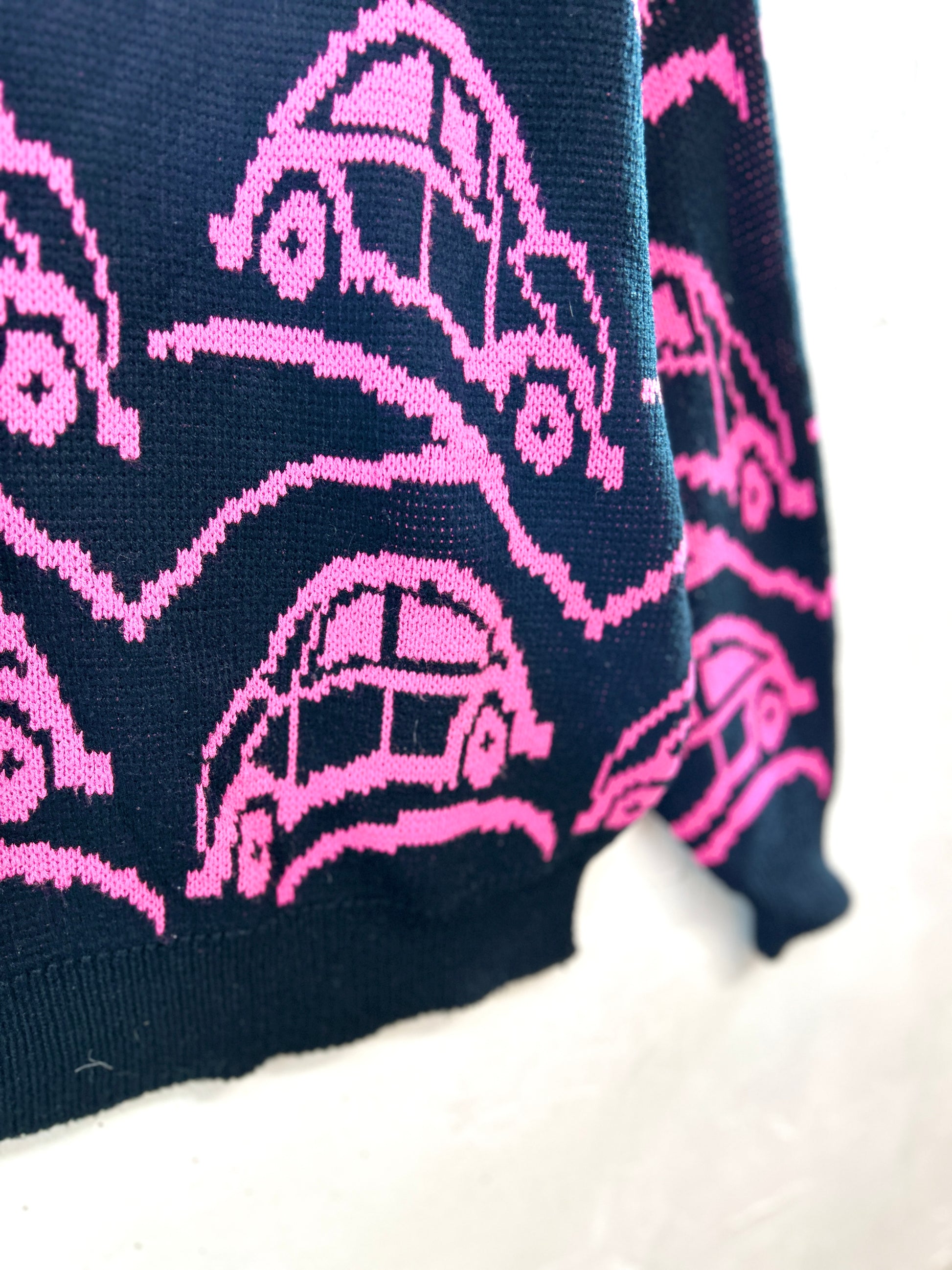ブラックボディにピンクの車がファニーに走っていて、とても可愛いデザインの1着。