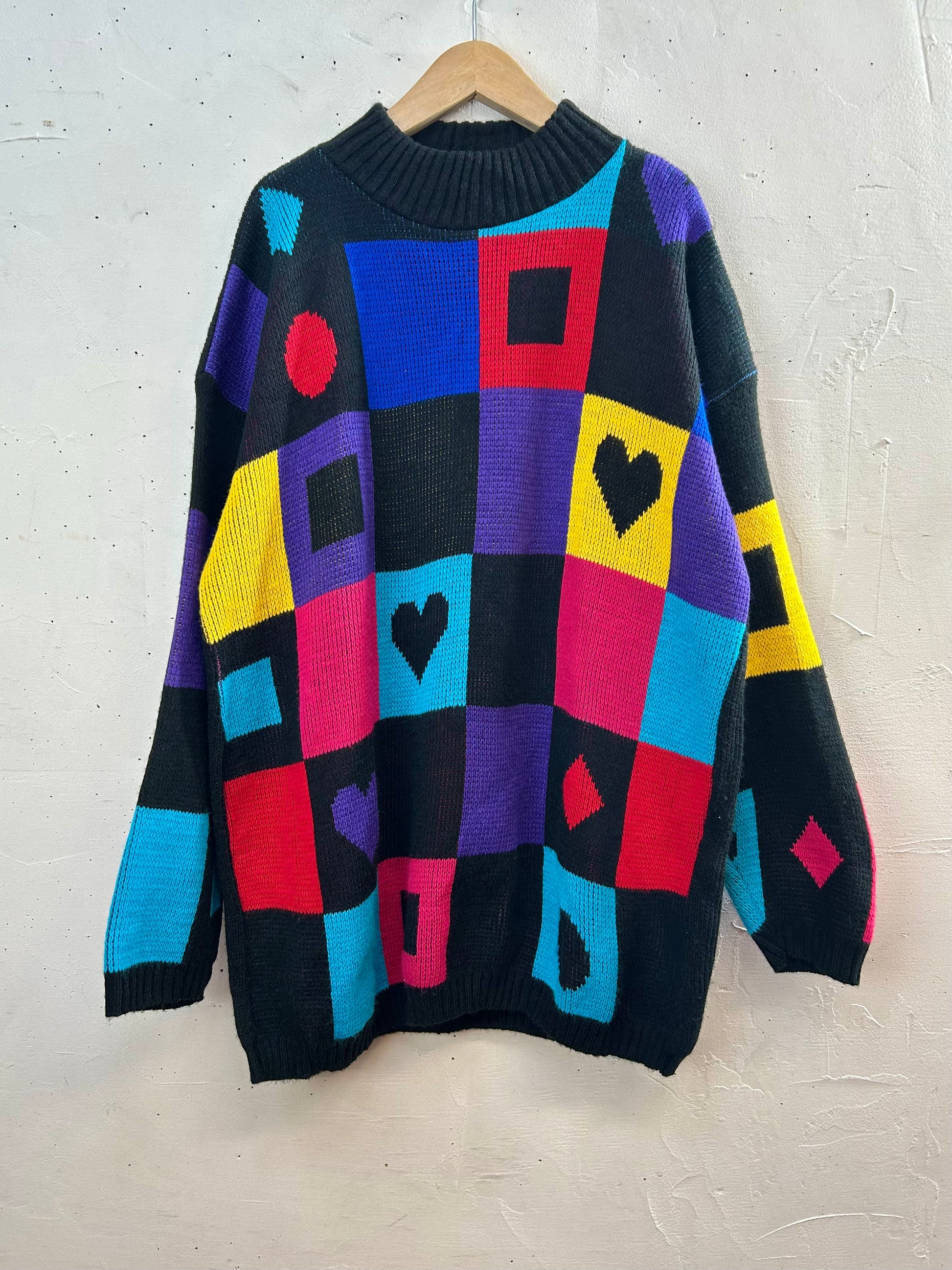 Vintage Fancy Knit Sweater MADE IN USA[C29747]