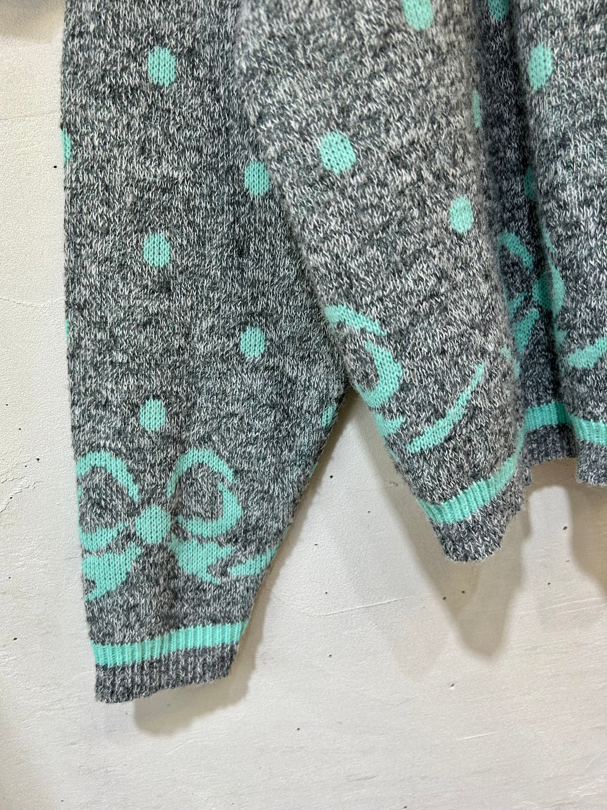 グレーボディにミントブルーのリボンとドットのデザインが可愛らしい一着。