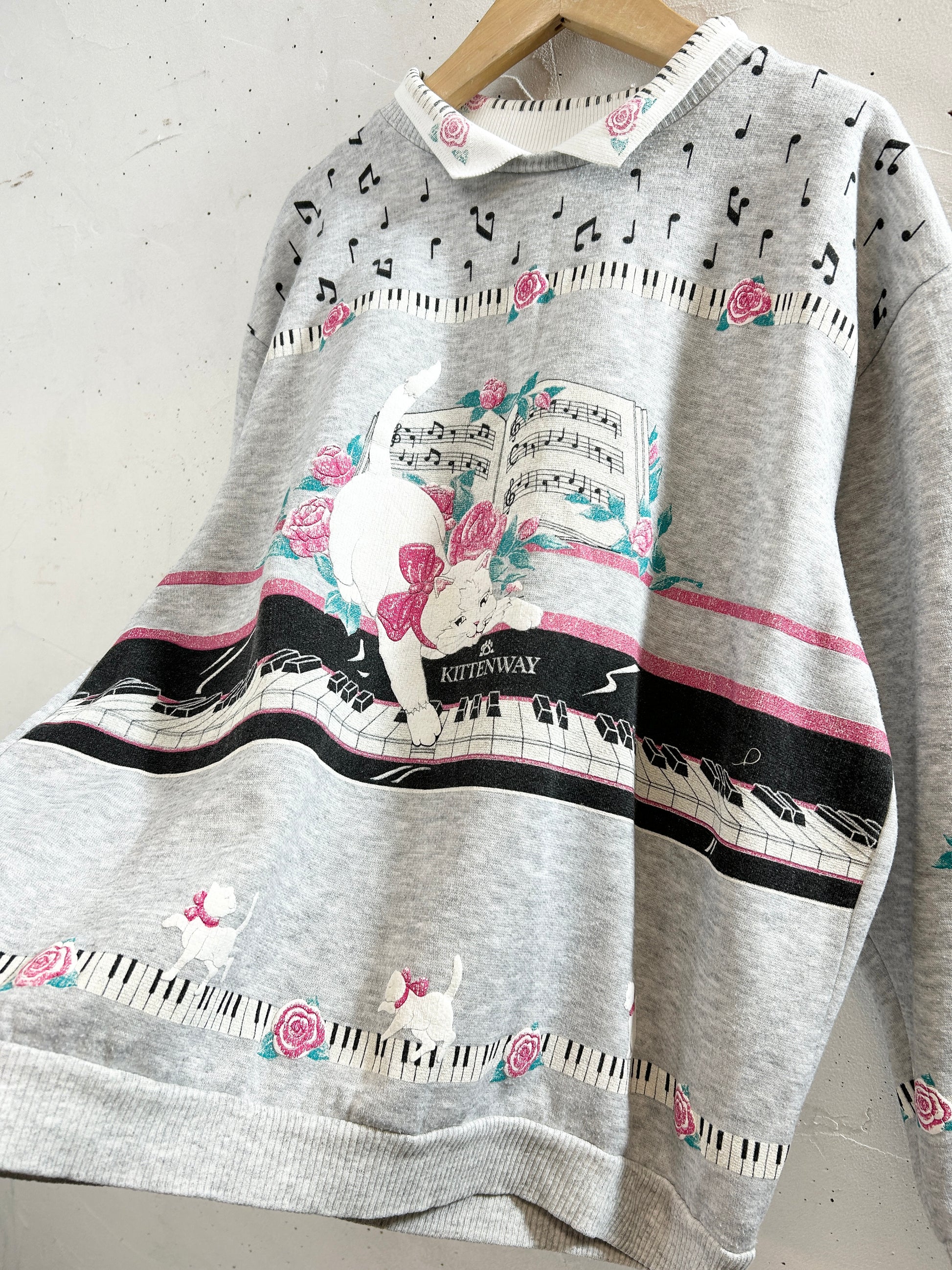 可愛いネコとピアノのプリントが非常に可愛らしい一着。