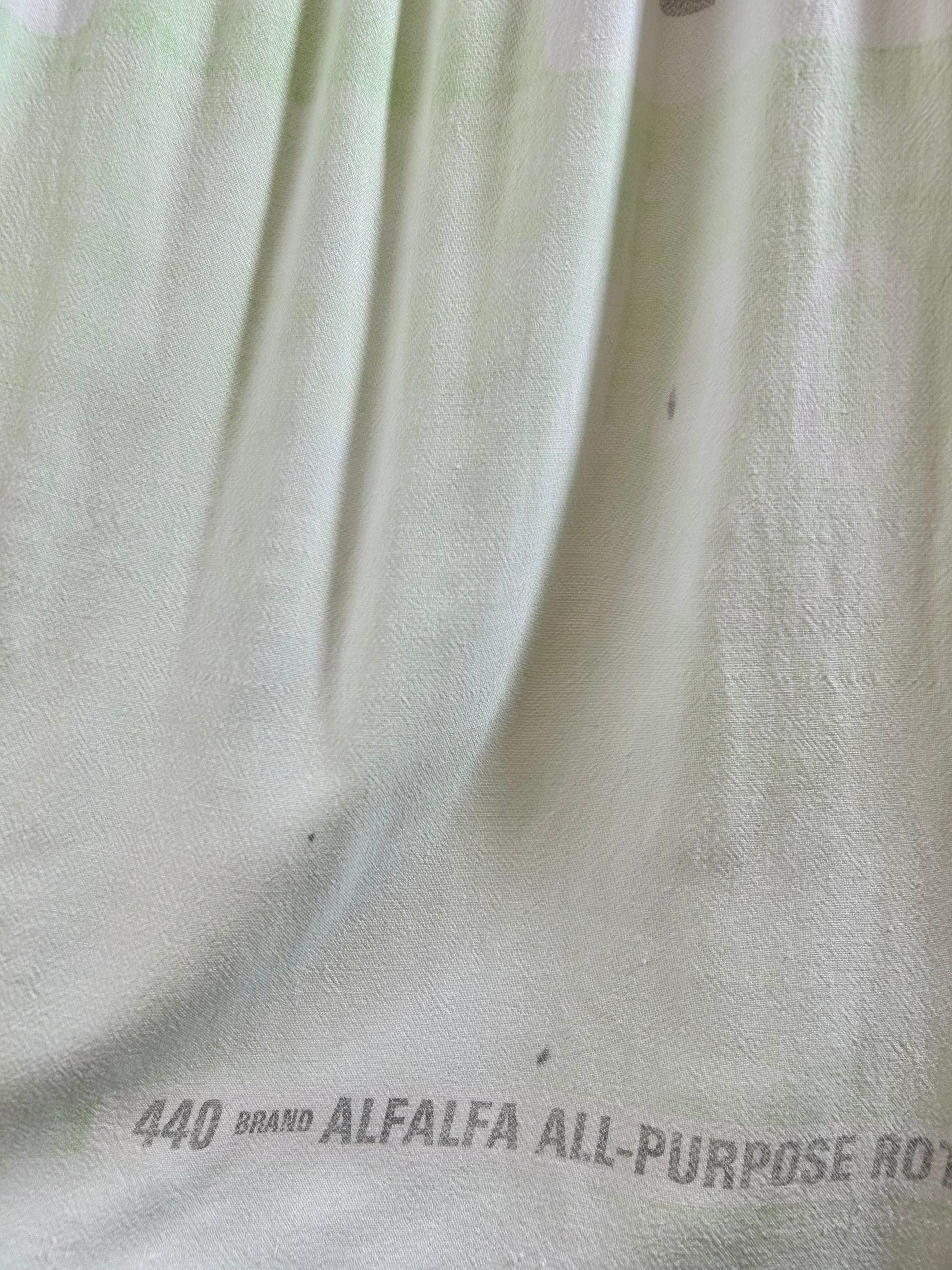 ビンテージフィードサックは、もともと家畜用飼料を入れるために作られた袋の事で、当時の主婦達は不景気の中でも愛する家族の為に洋服やパジャマといった衣類など、さまざまなものを作り有効活用したそうです。