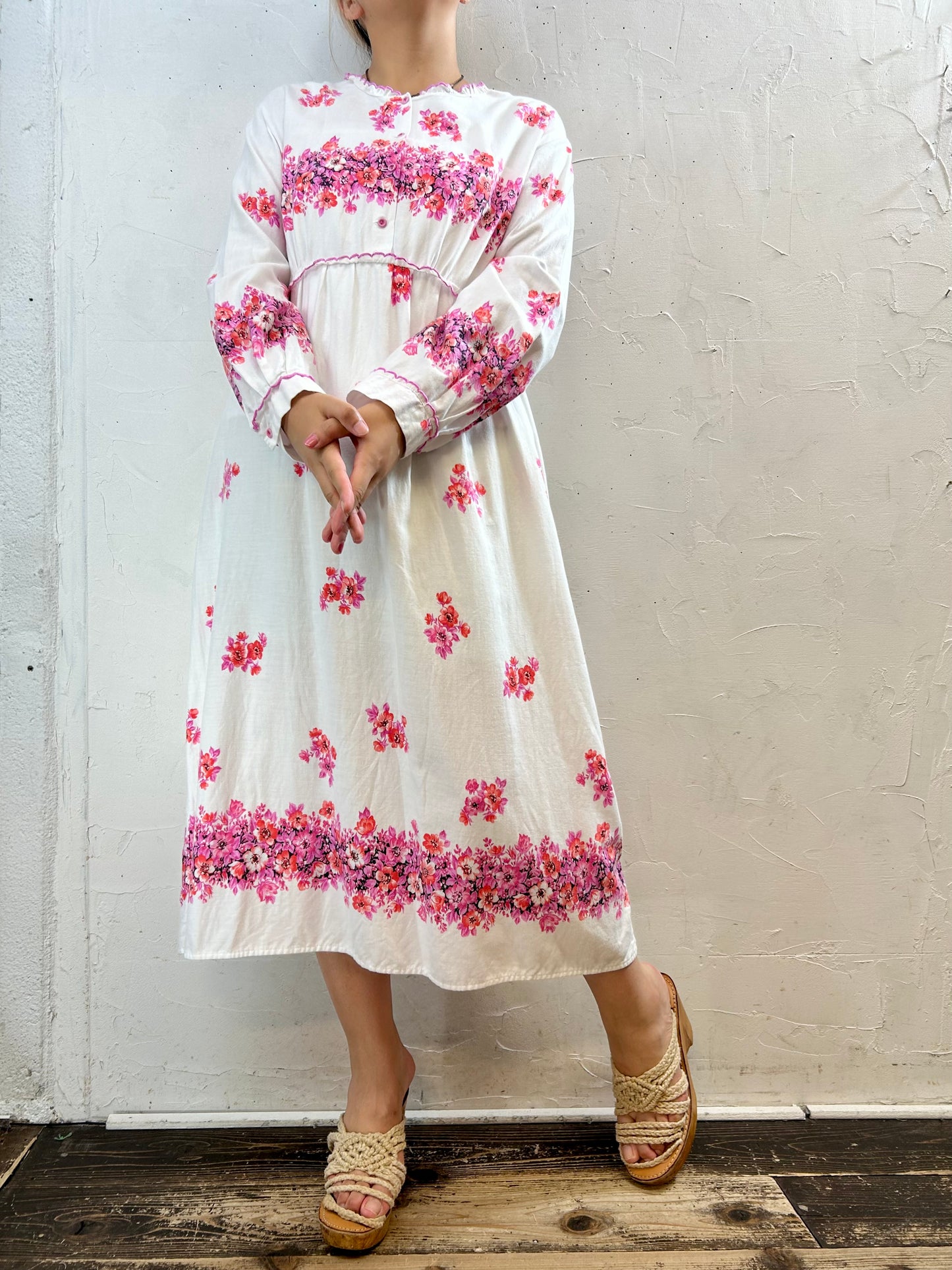 ホワイトボディに、ピンクのフラワーの組み合わせが可愛らしく、フロントや袖、裾のフラワーラインのデザインが目を惹きます。