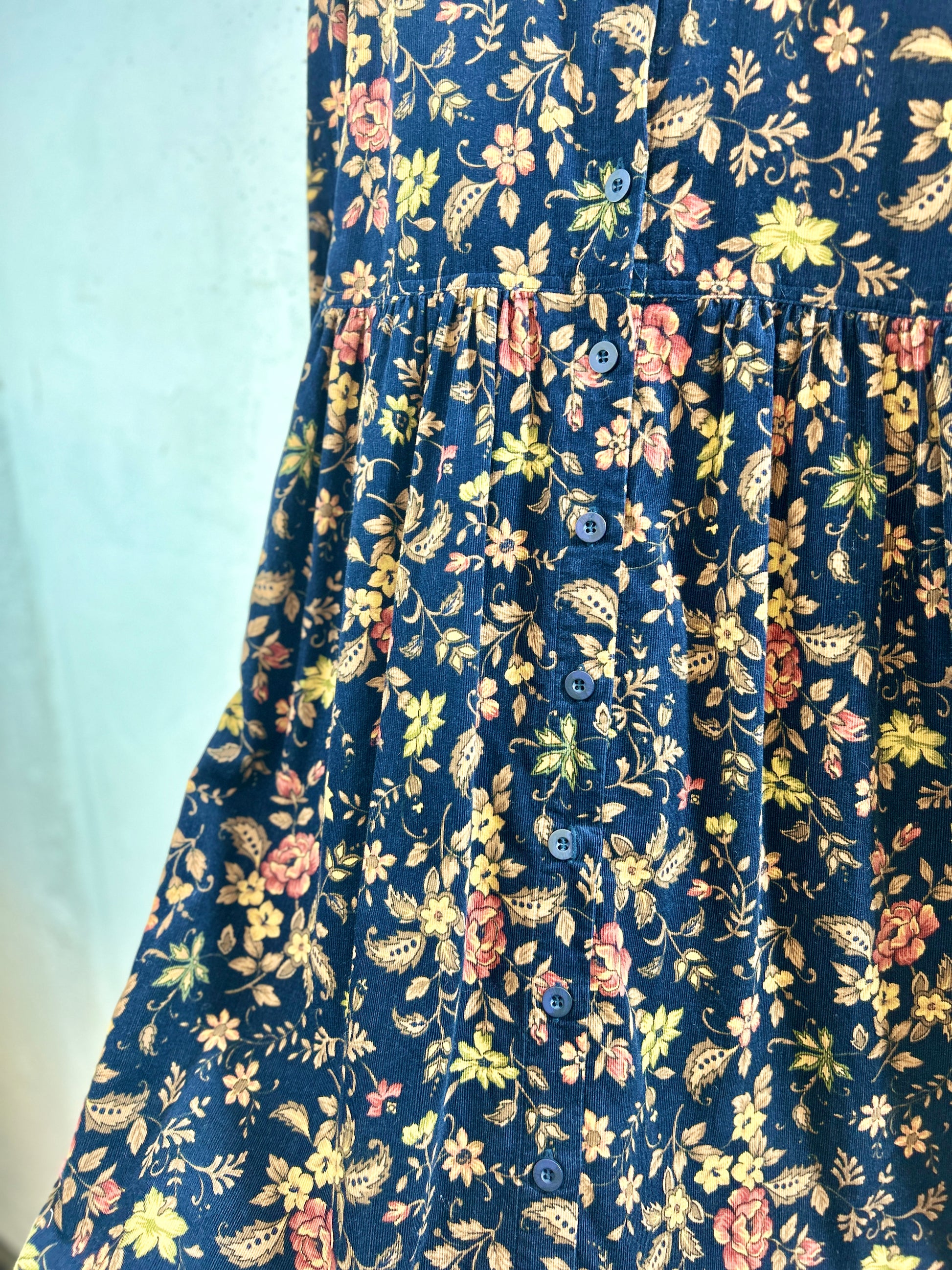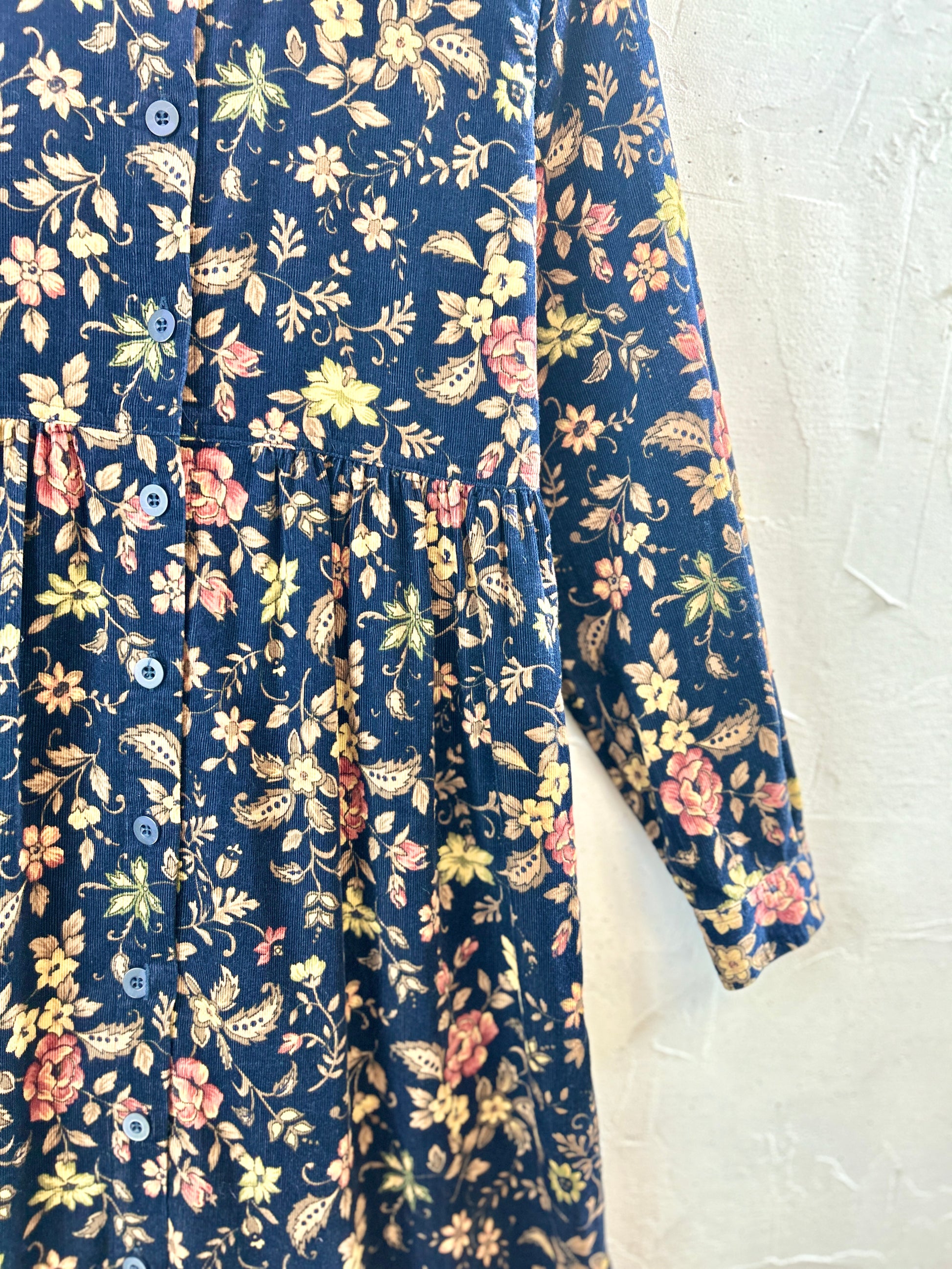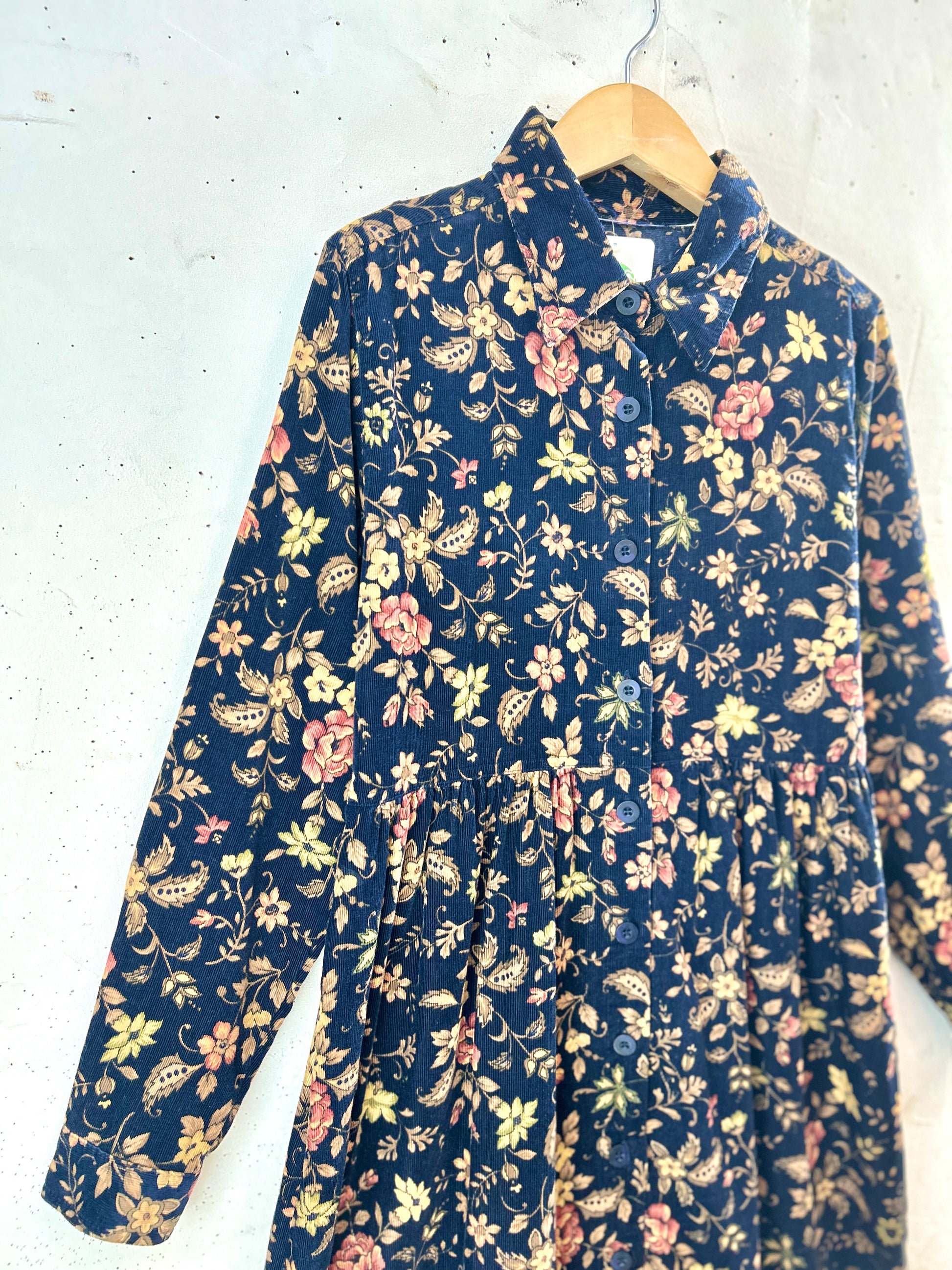 深みのあるカラーリングのフラワーパターンにコーディロイのガーリーな1着。