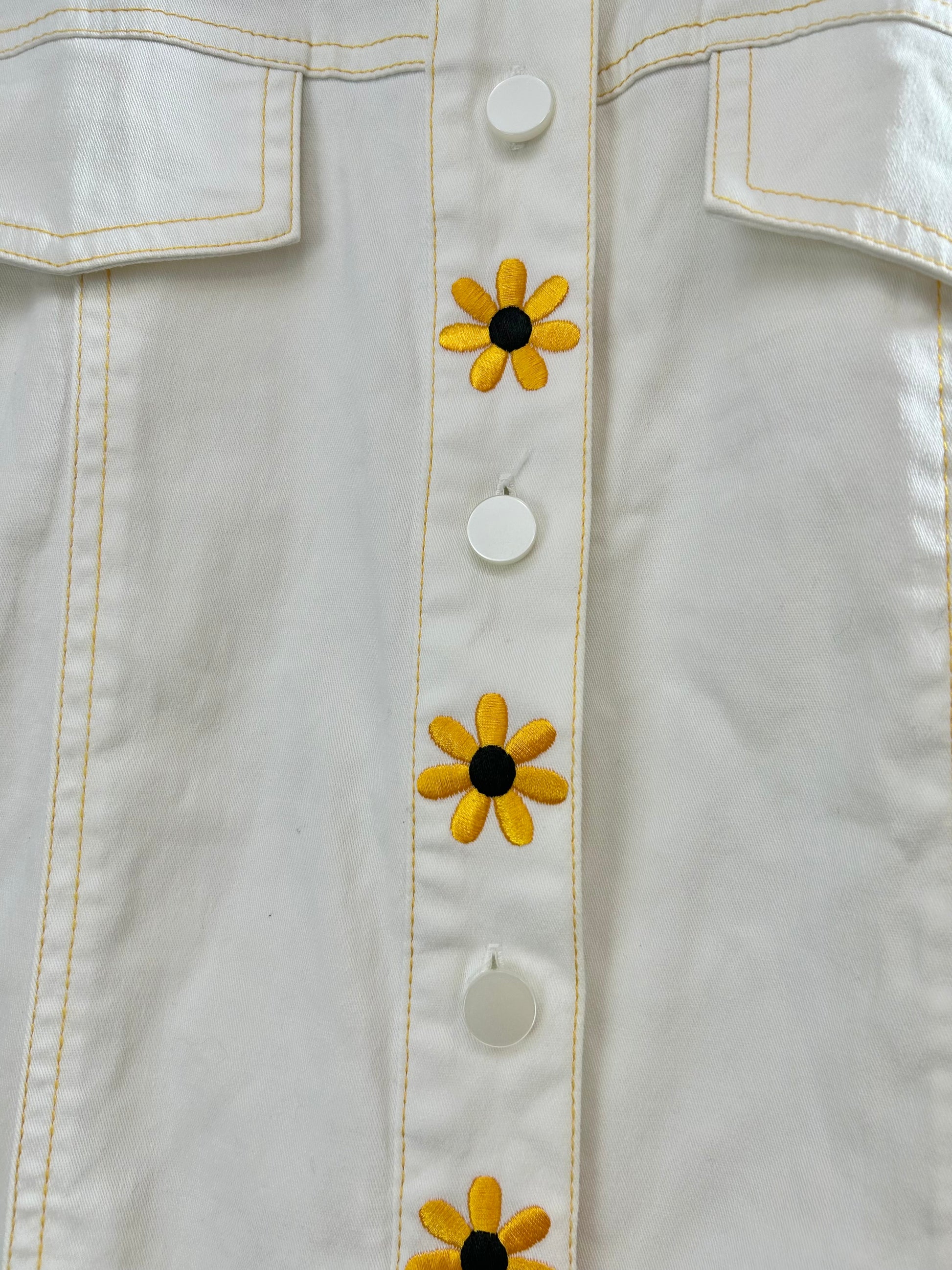 ホワイトボディにフラワー刺繍がたっぷりと施され、見てるだけでもハッピーな気持ちになる1着。