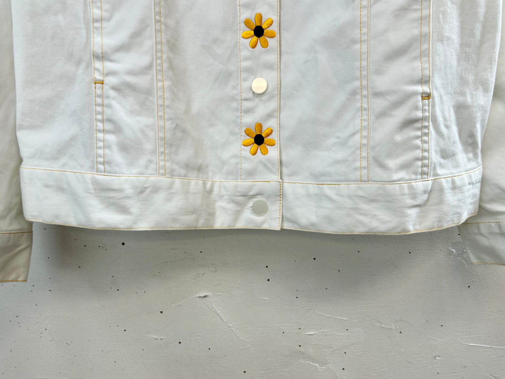 フロントを開けてきた時に前立てのフラワー刺繍が2列になるところもとても可愛いです。