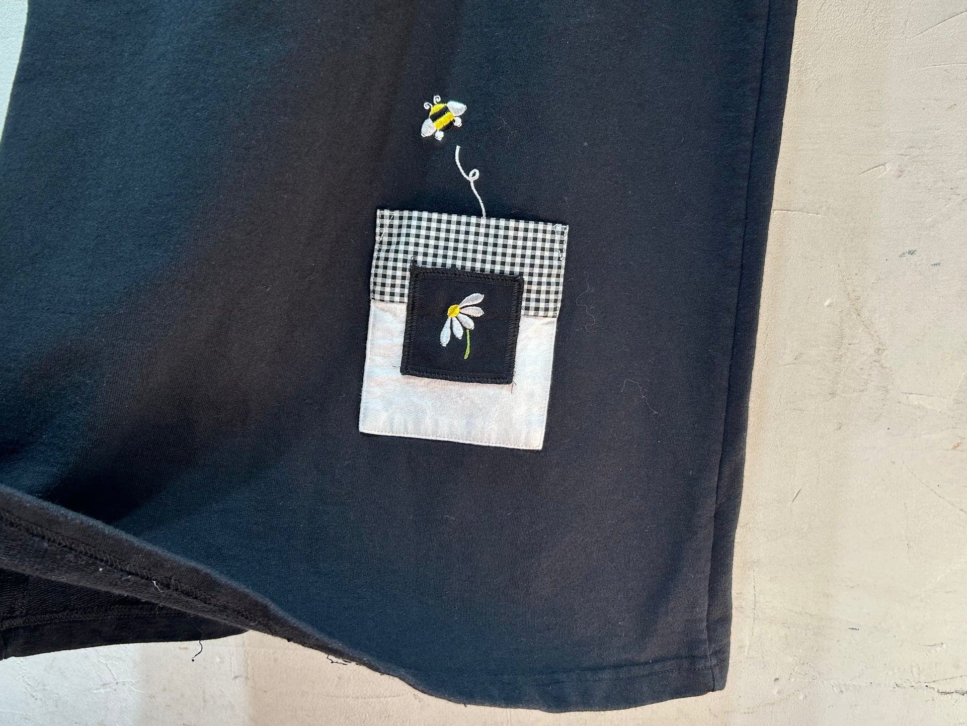 ポケットからハチが飛び出してきたような刺繍デザインで、ビンテージならではな遊び心がたまらないです。