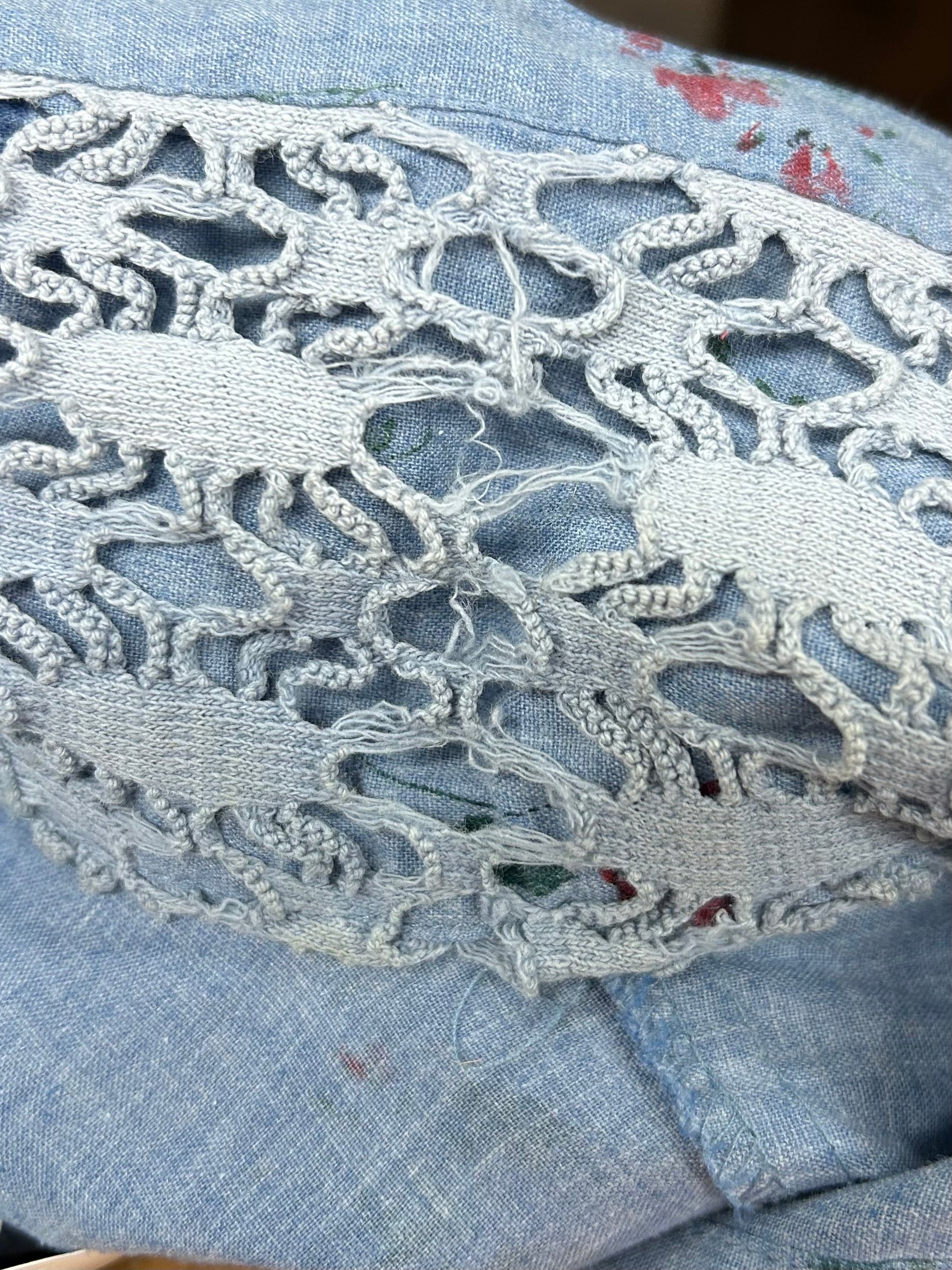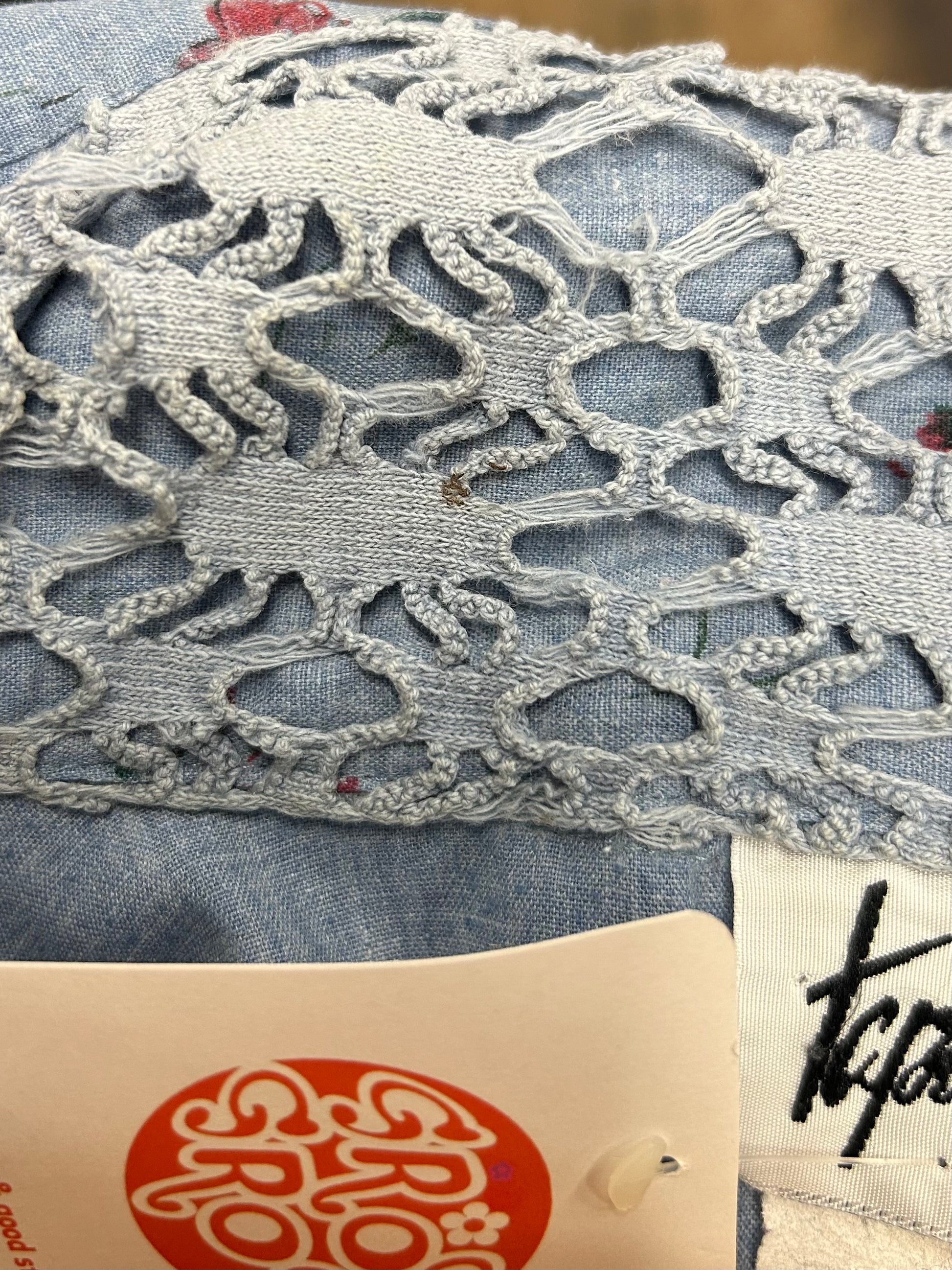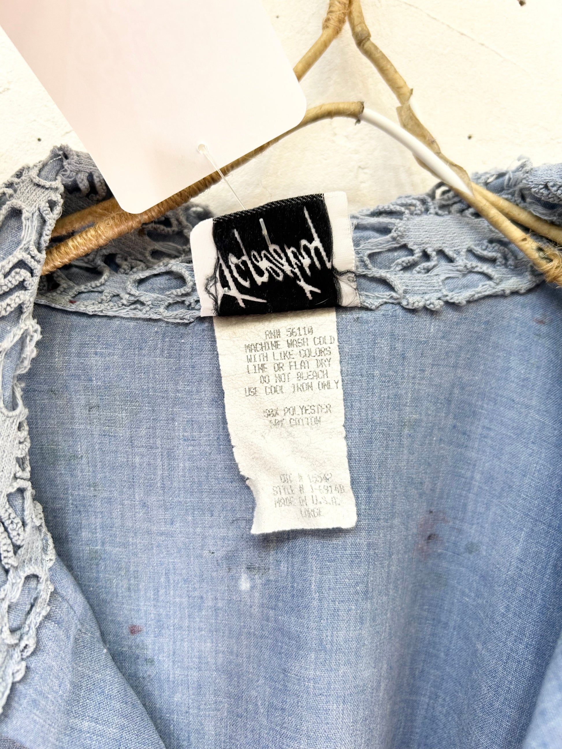 コンディション:バックネックに極小の汚れ、レースの弱くなっている部分的がございますが、ビンテージにご理解頂いている方でしたら、気にせずご着用いただける程度かと思われます。