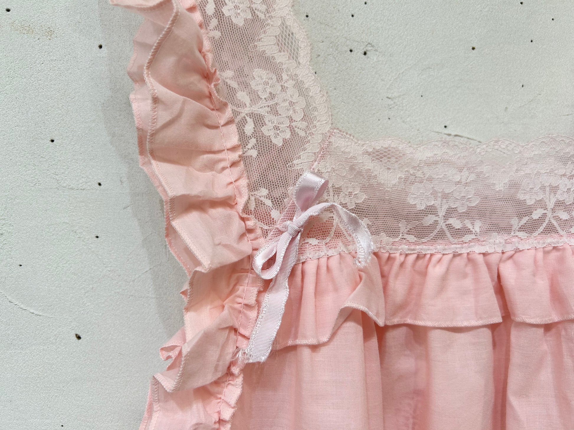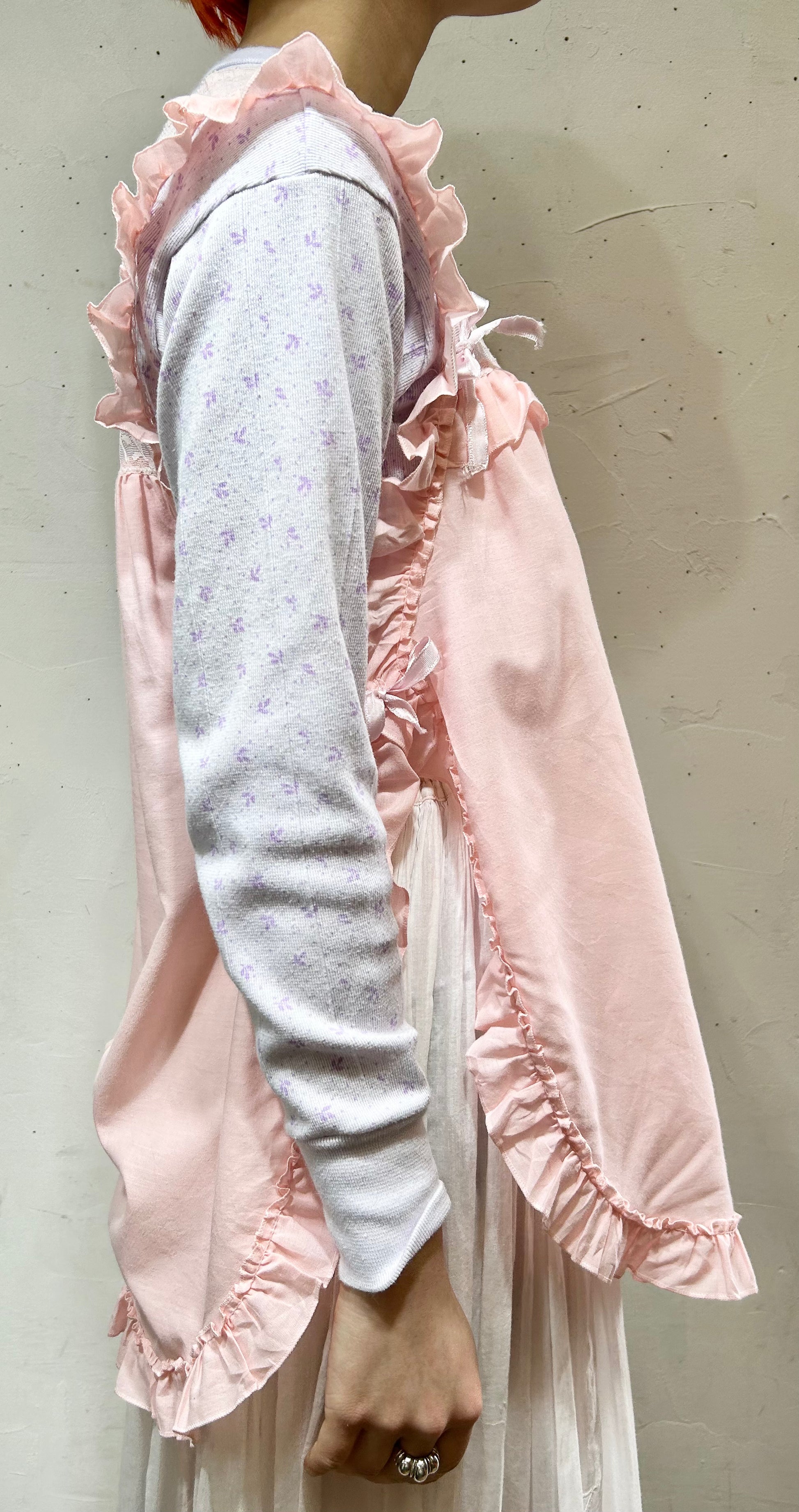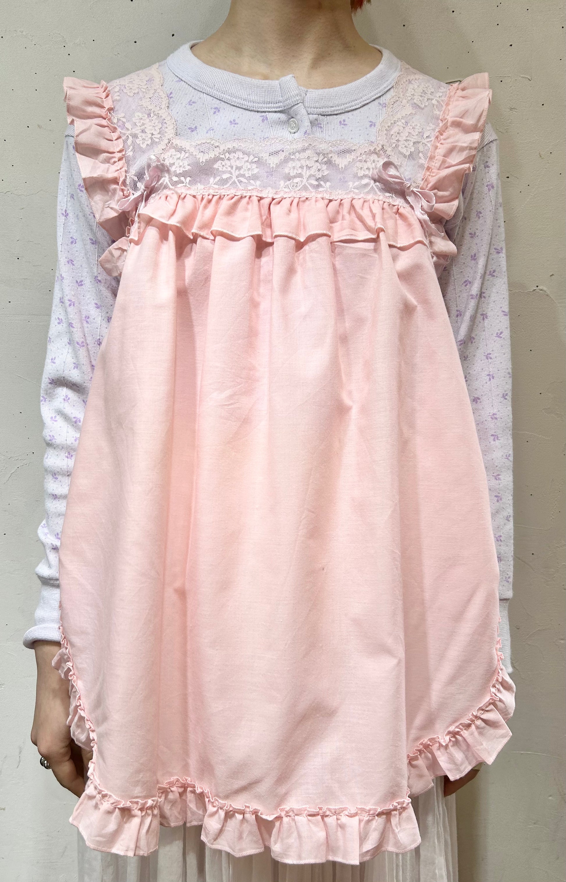 ピンクカラーとたっぷりのフリルとレースがガーリーな1着。