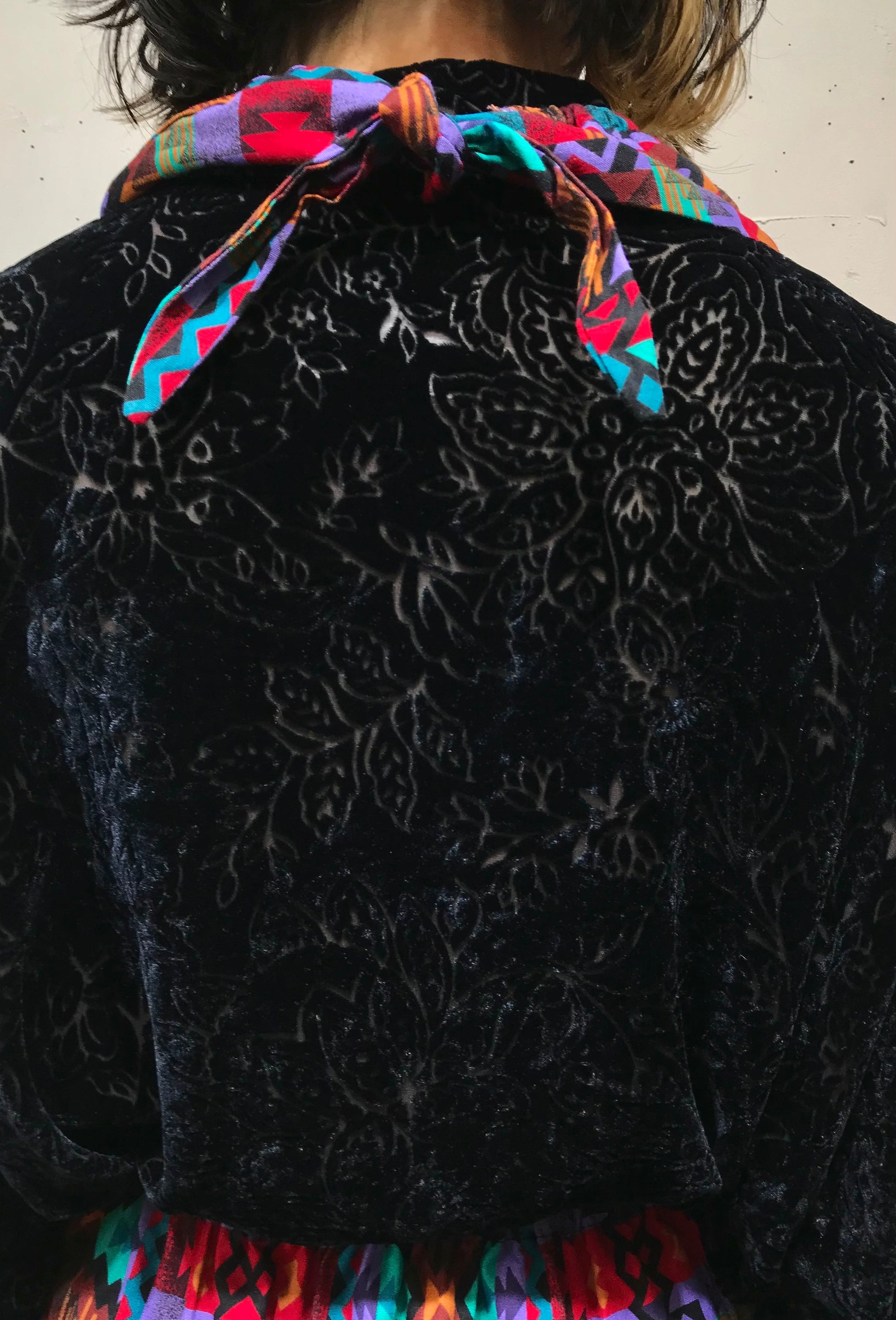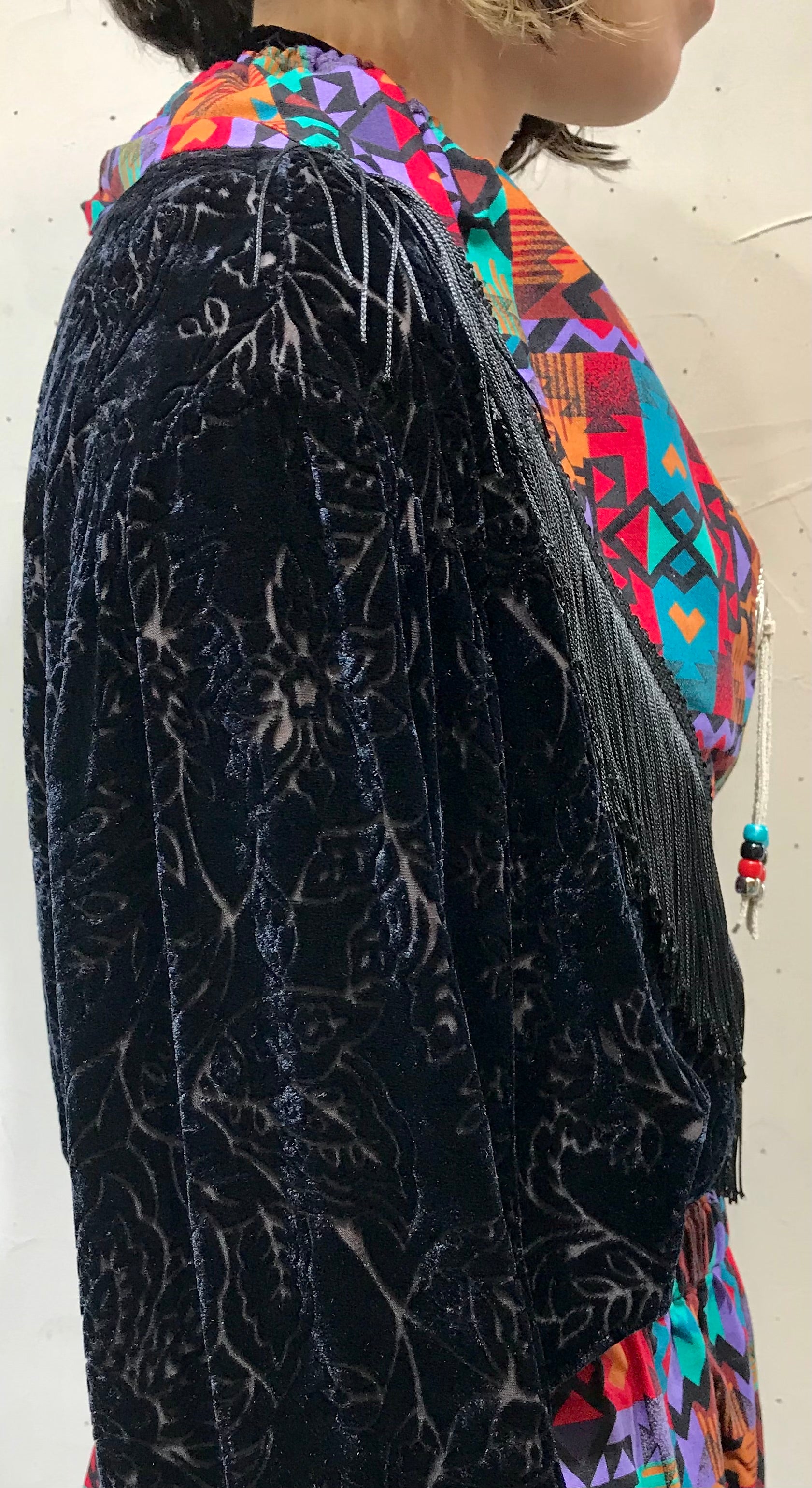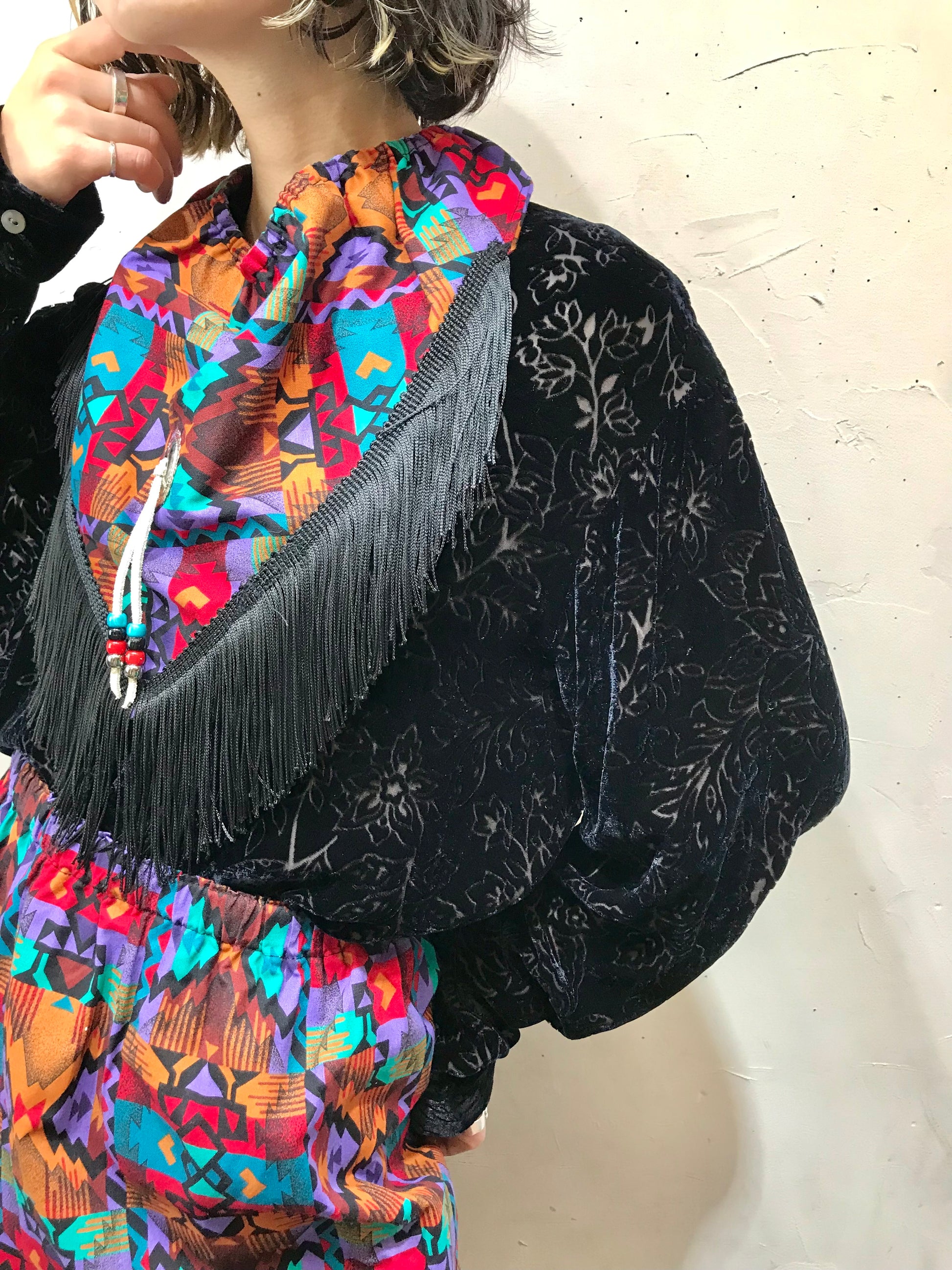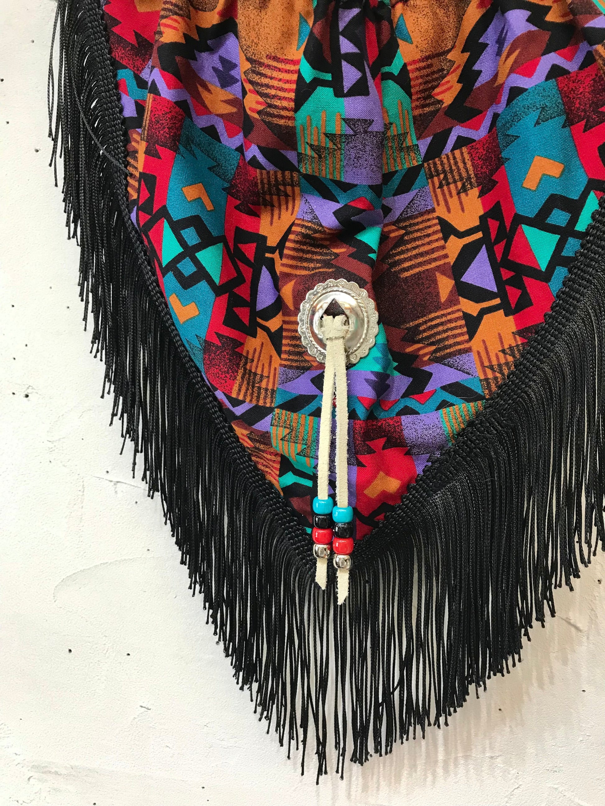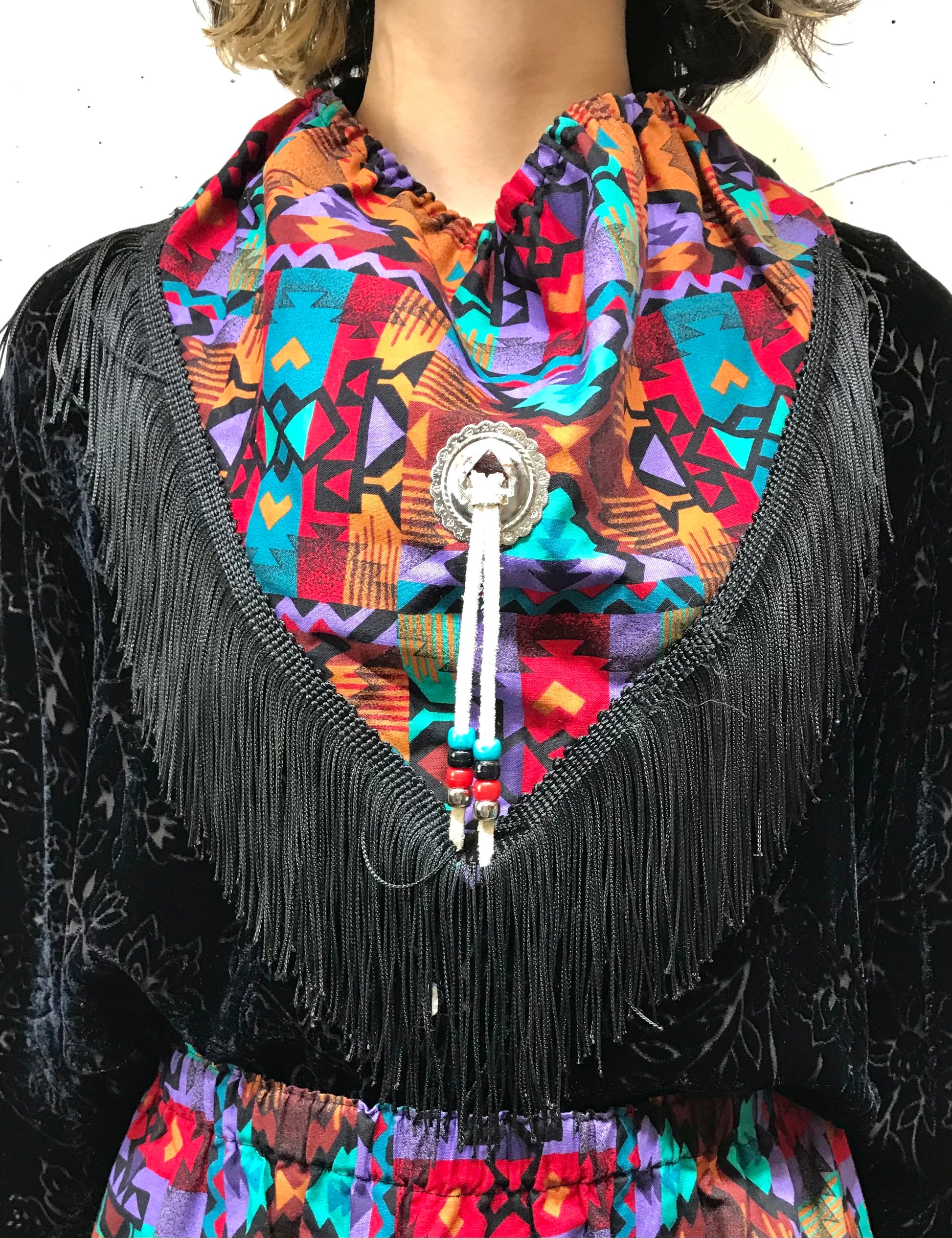 つけ襟のようにもお使いいただけ、ネイティブ生地にたっぷりフリンジがついた雰囲気抜群の1枚。