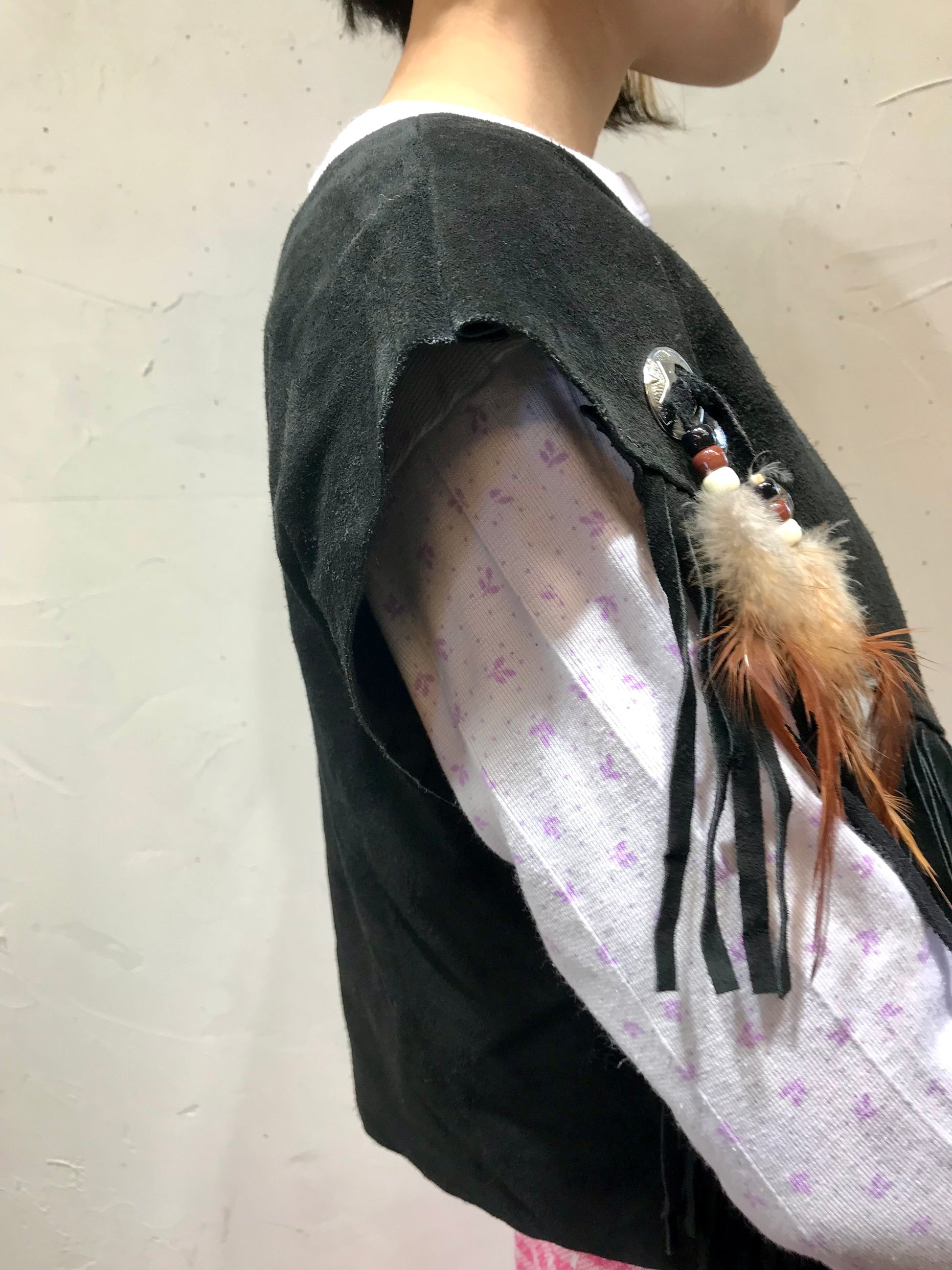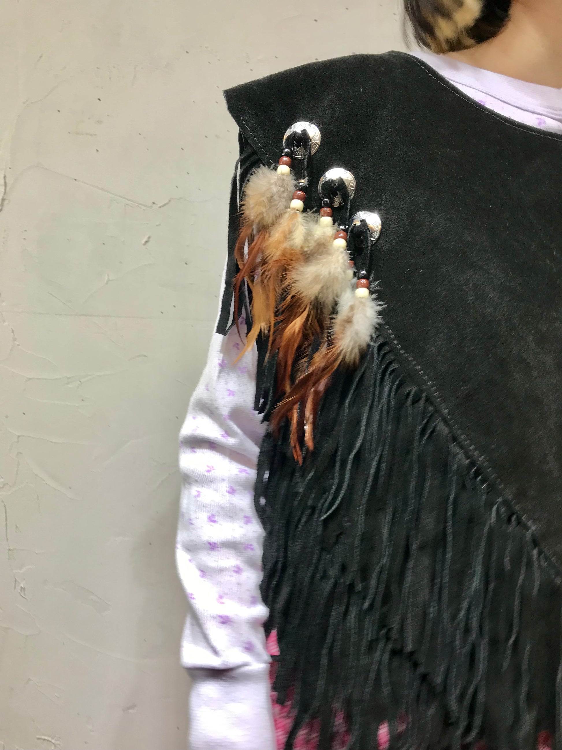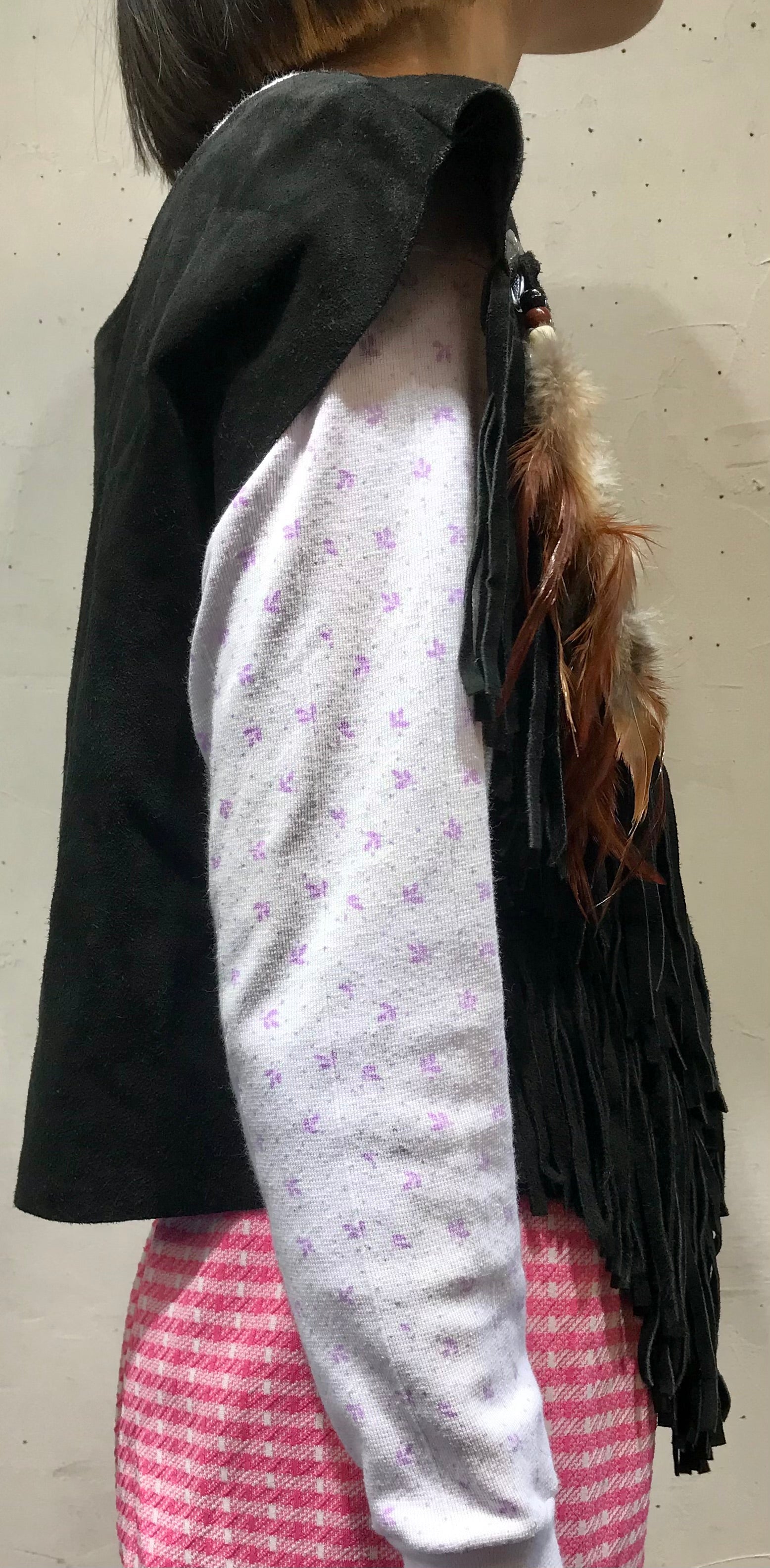 ブラックレザーにフリンジがたっぷり施されたインパクト抜群の1着。
