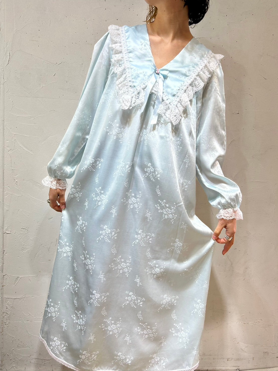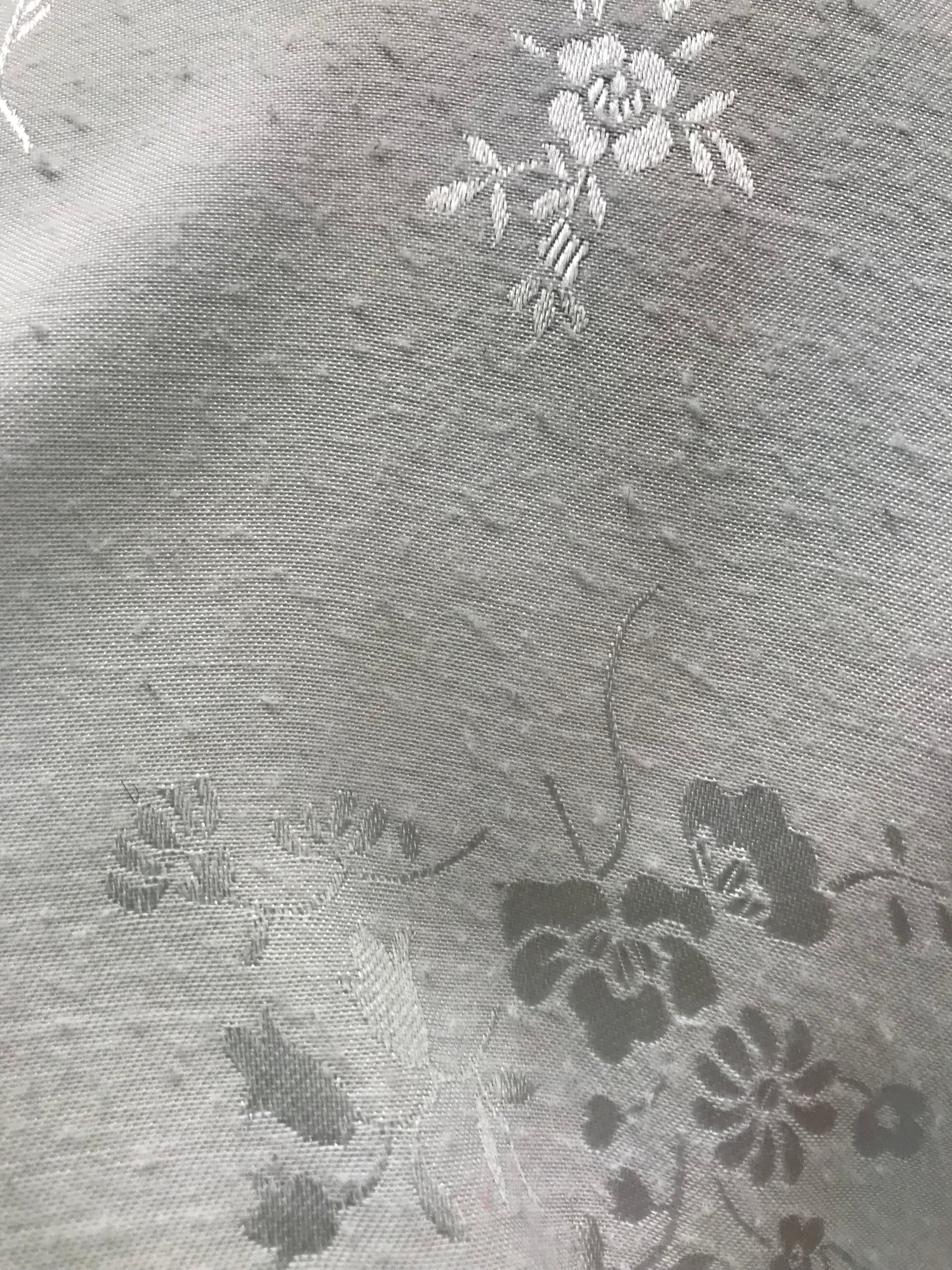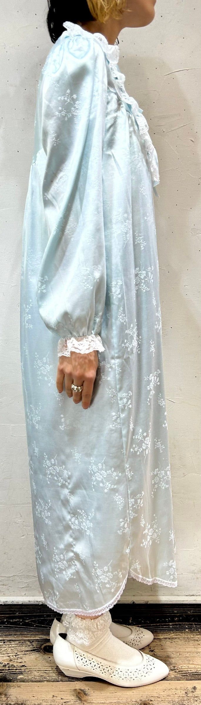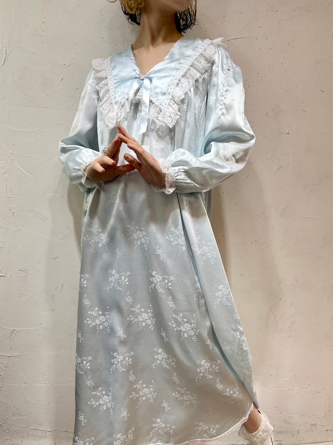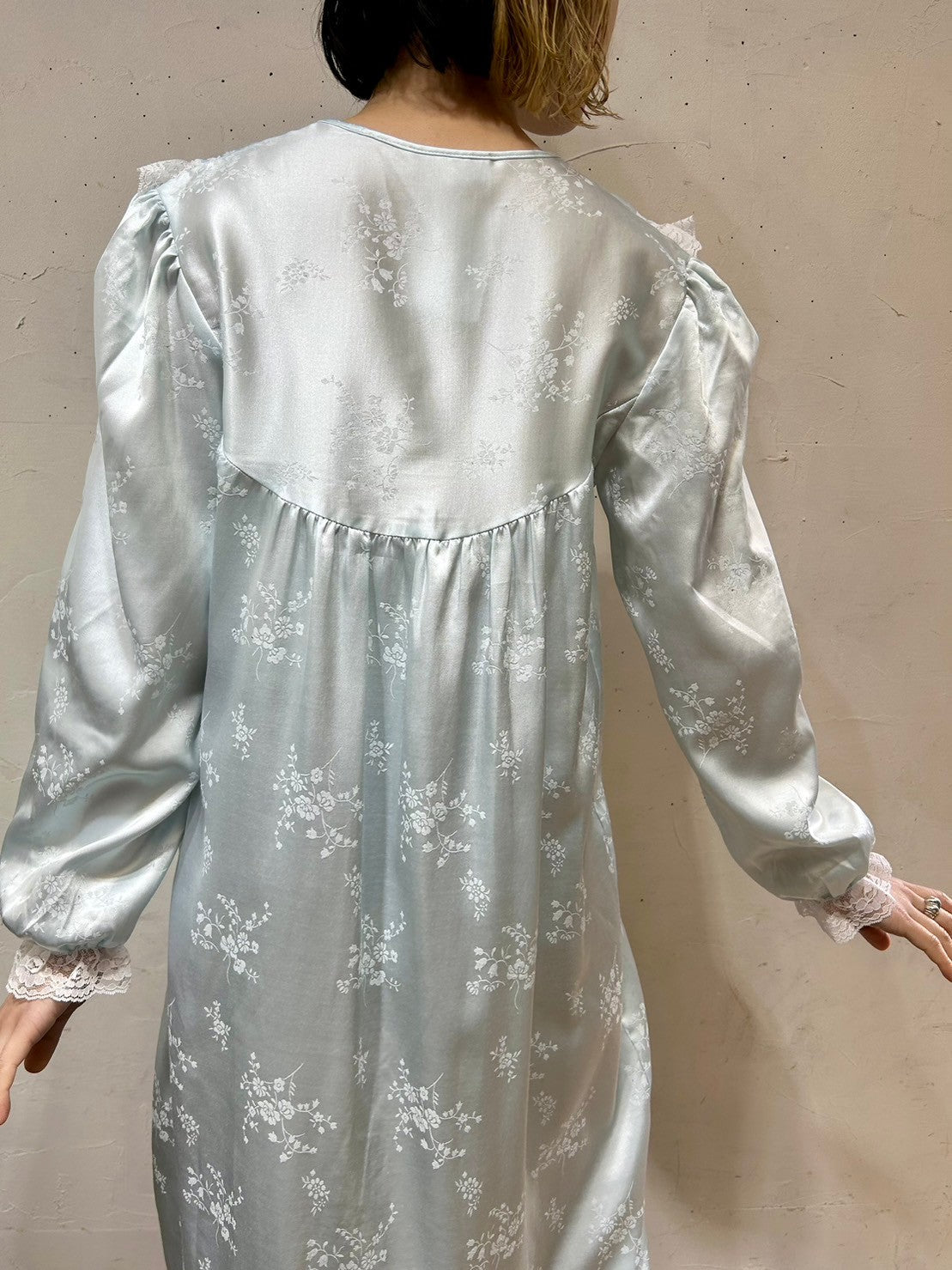 光沢感のあるサテンのボディにフラワーの織りが施されたキュートな1着。