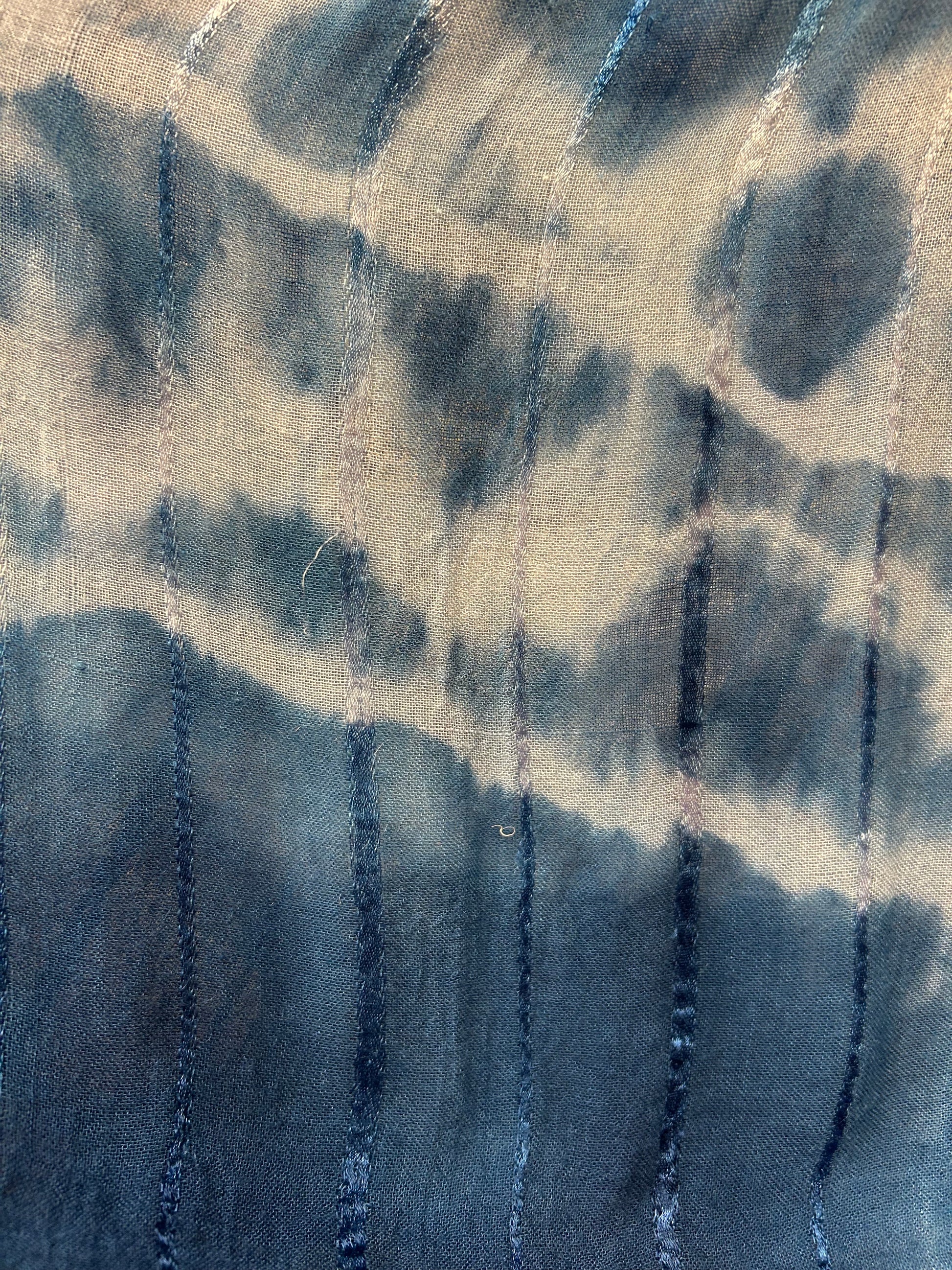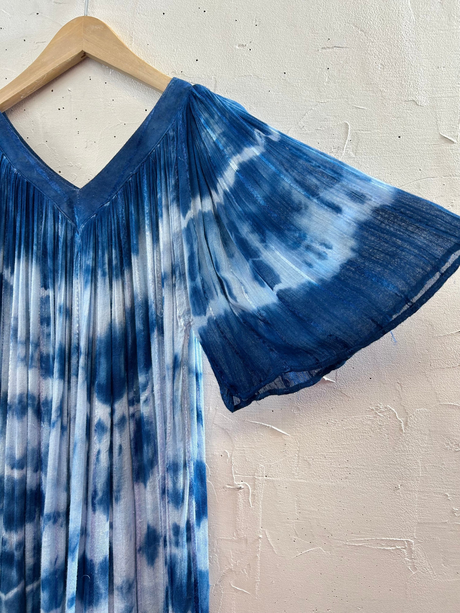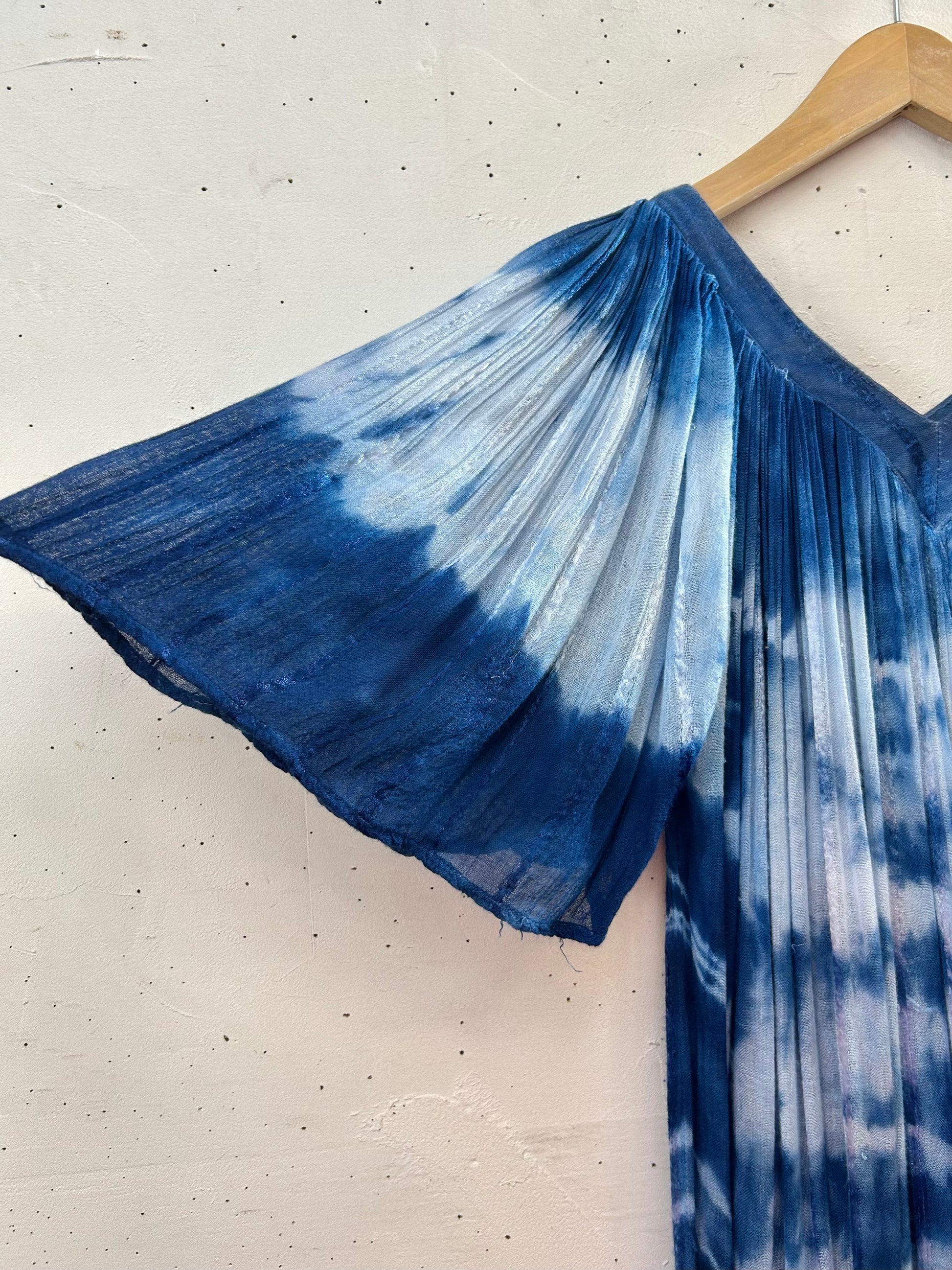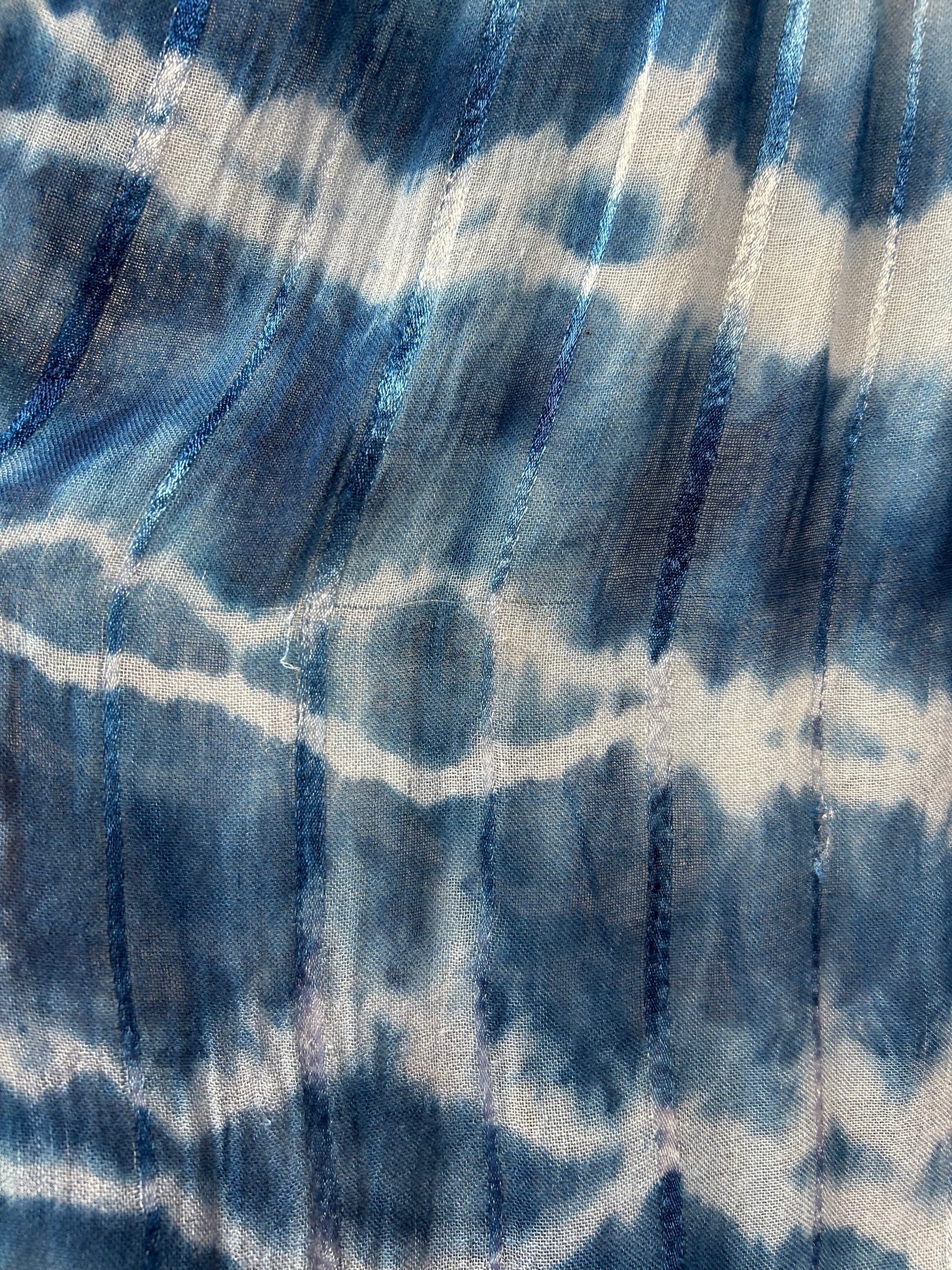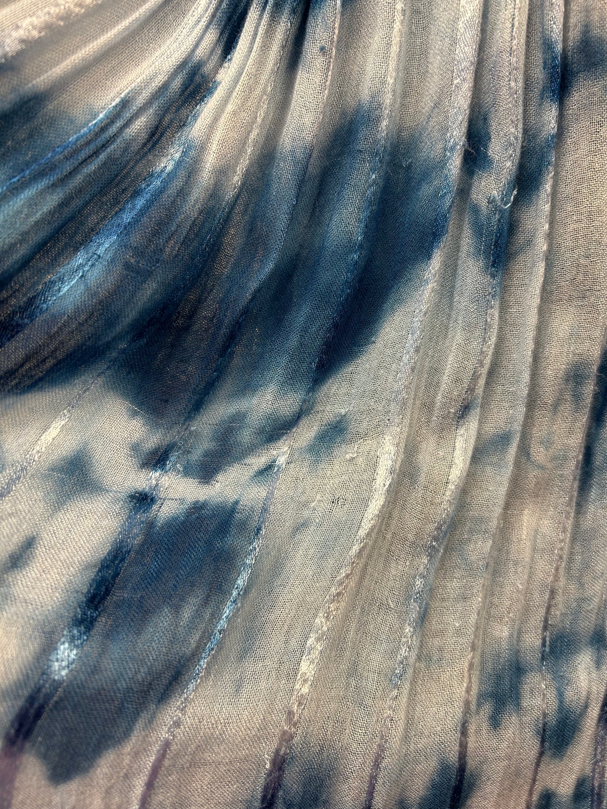 深海のような深みのあるブルーのタイダイ染が珍しく美しい一着。