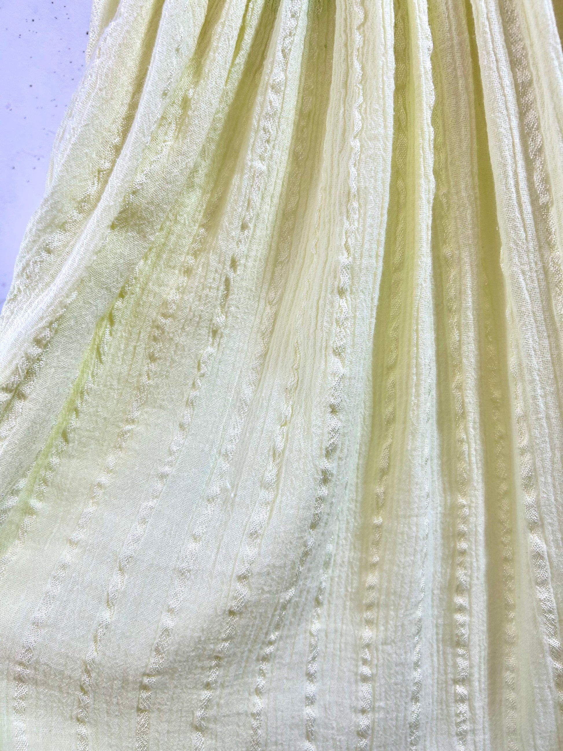 ギリシャドレスらしい柔らかなガーゼボディが肌馴染み良く、爽やかで淡いレモンイエローカラーが一際雰囲気を放ちます。