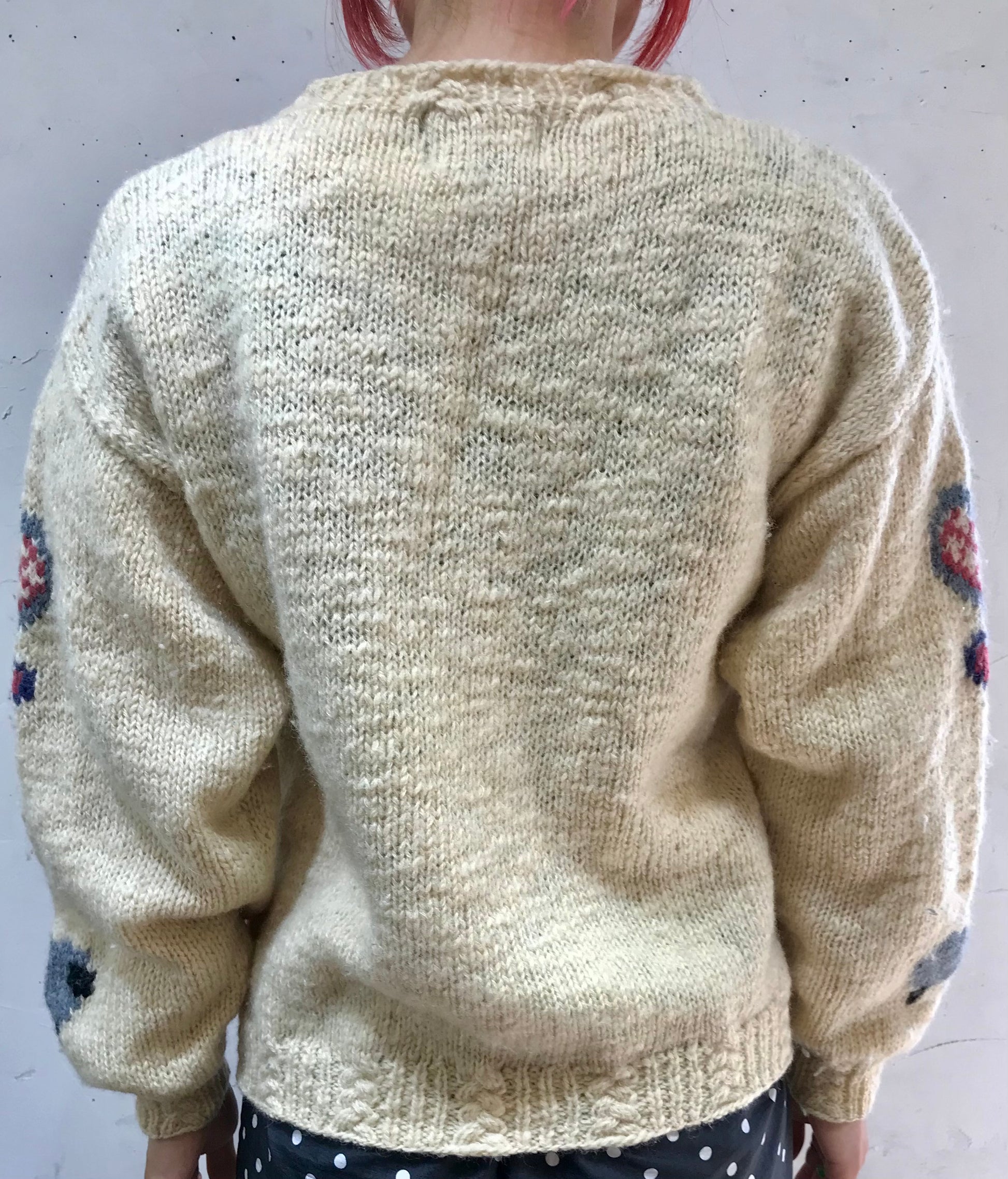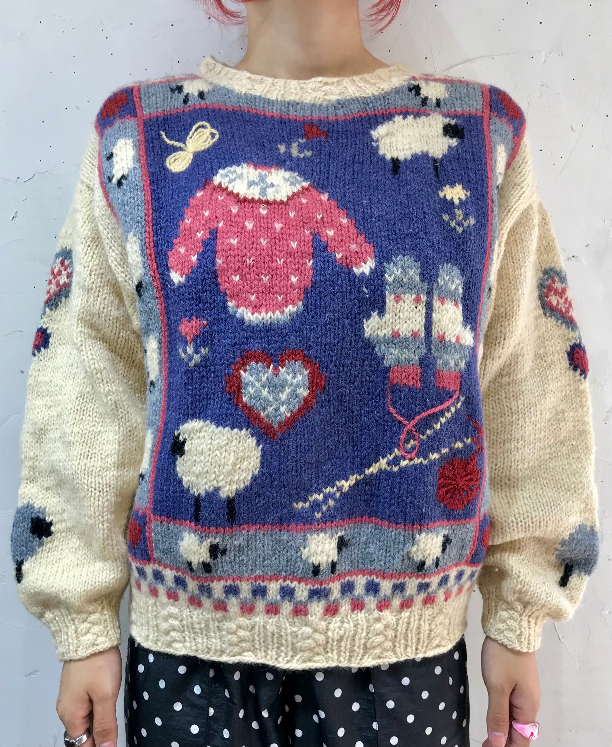 手編みのセーター柄の手編みセーターというなんともビンテージらしいファニーな一着。