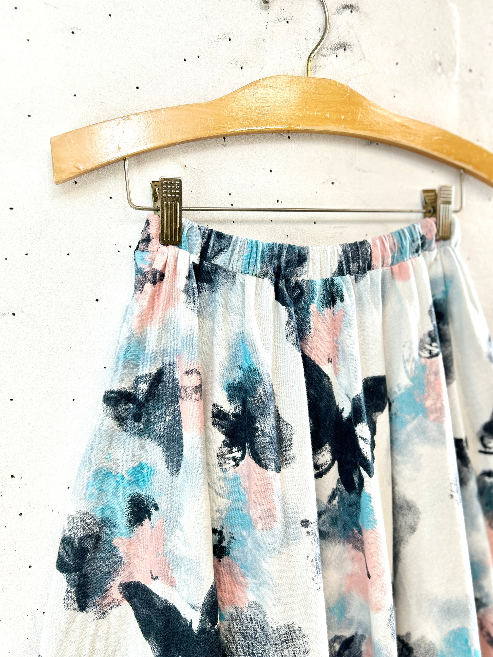 影のような蝶がハンコプリントされたロングスカートがとても雰囲気があり可愛い一着。
