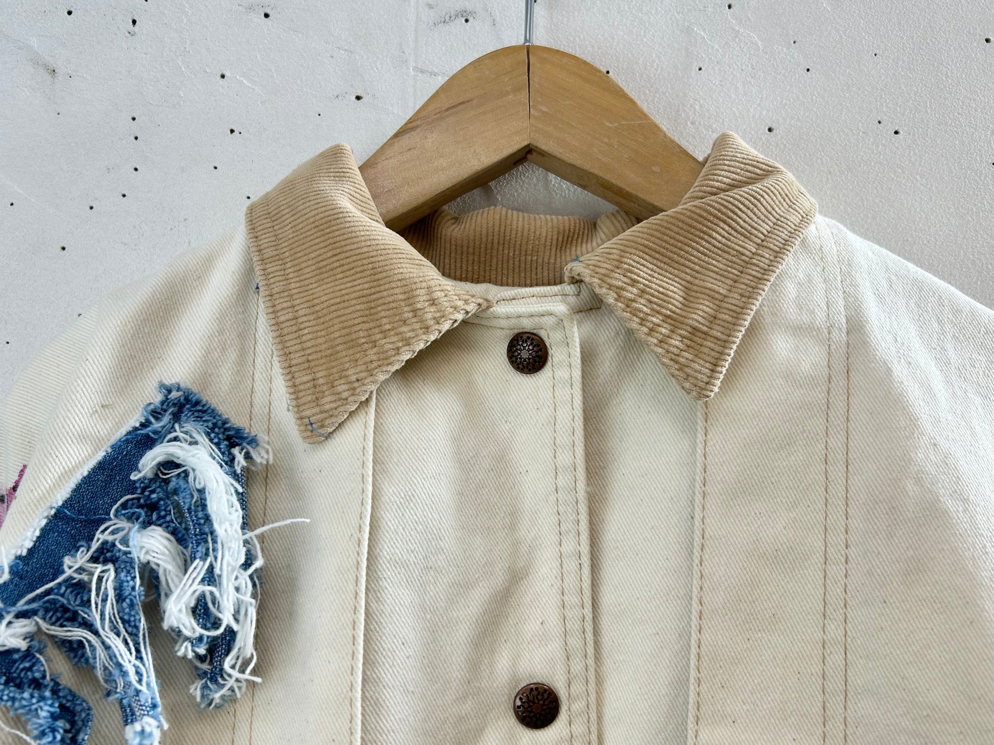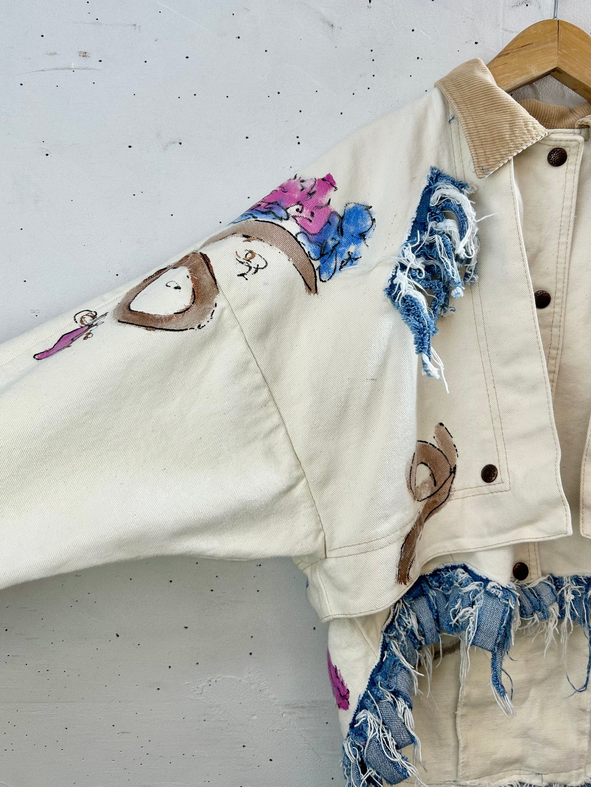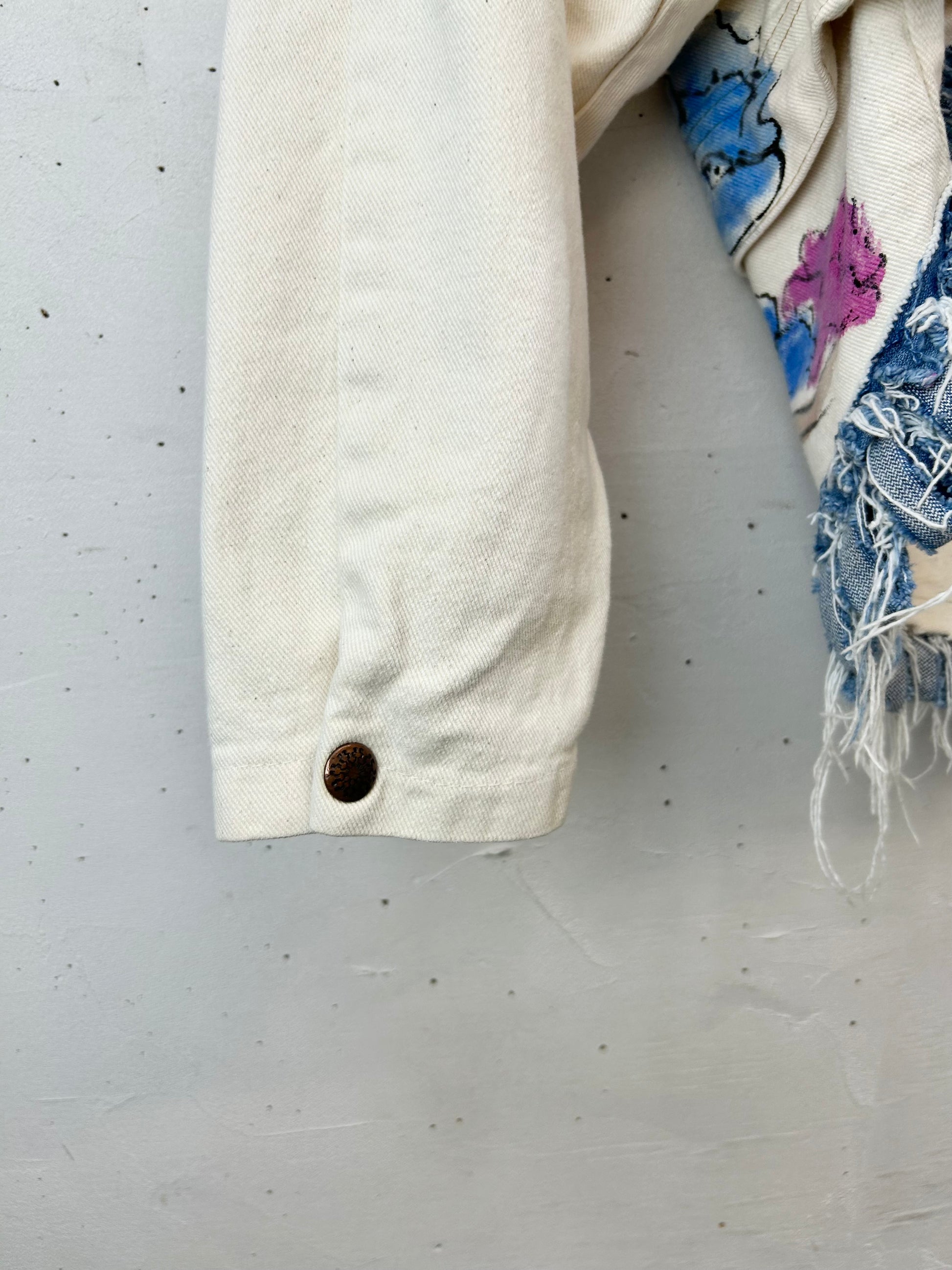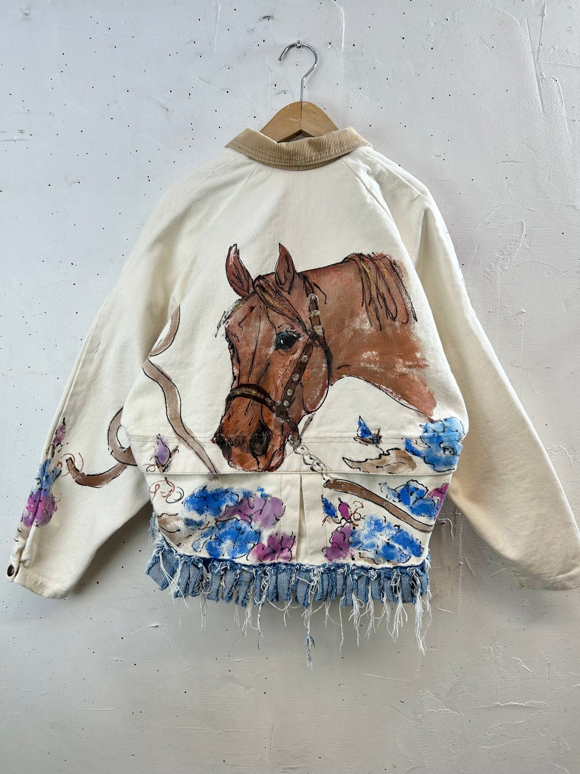 ホワイトデニムのボディに、大胆な馬のハンドペイントやデニムのフリンジがカスタムされたオリジナリティ溢れる唯一無二な一着。
