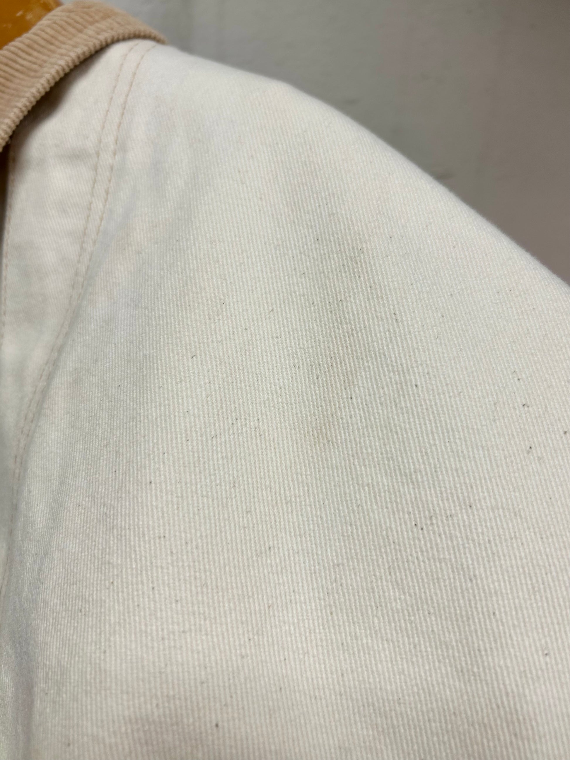 コンディション:フロント左肩付近に薄らとシミがございますが、ビンテージにご理解いただいている方でしたら、気にせずご着用いただける程度かと思われます。
