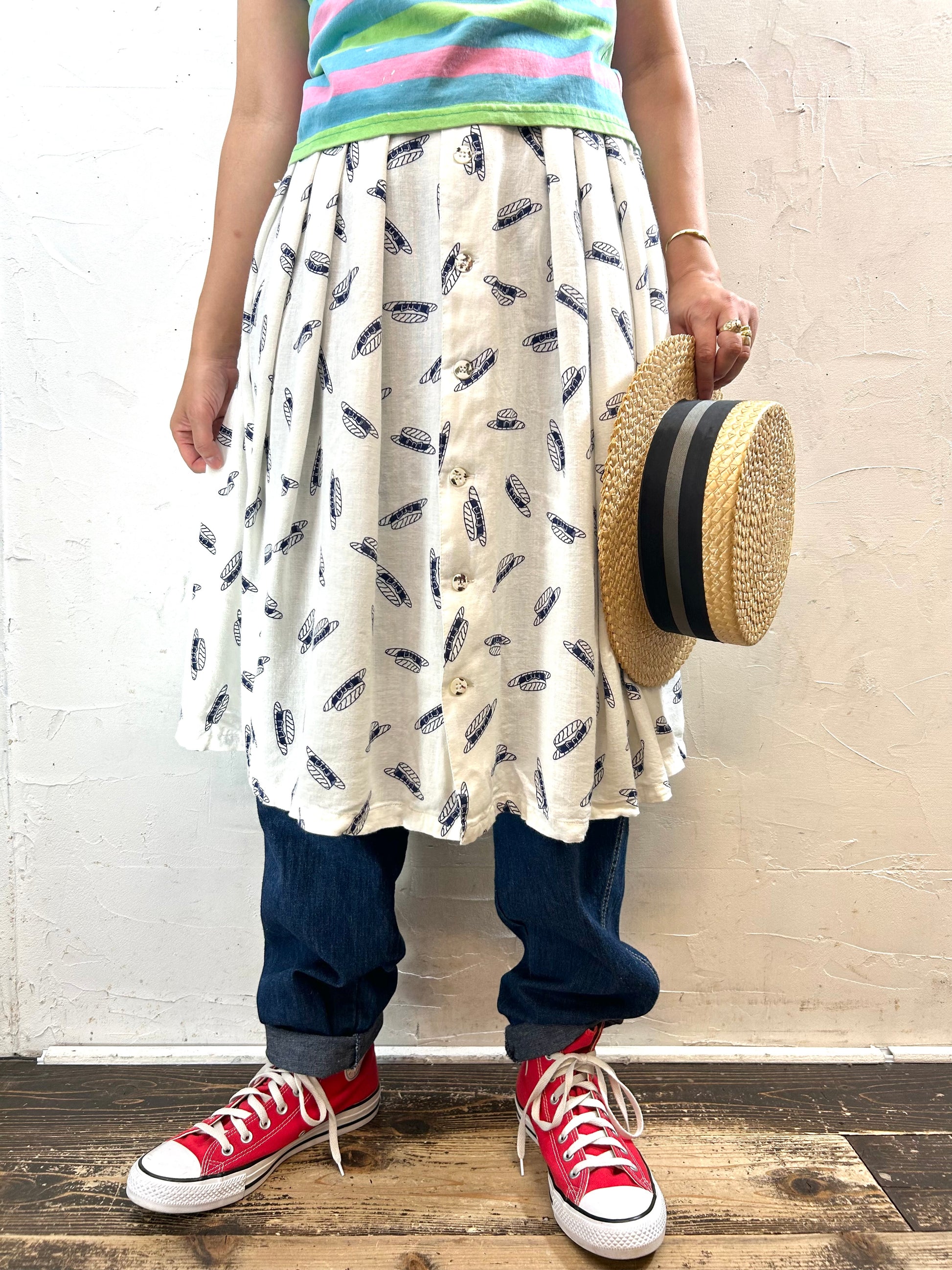 シンプルデザイン、カラー、プリントがとても印象的なスカートです。