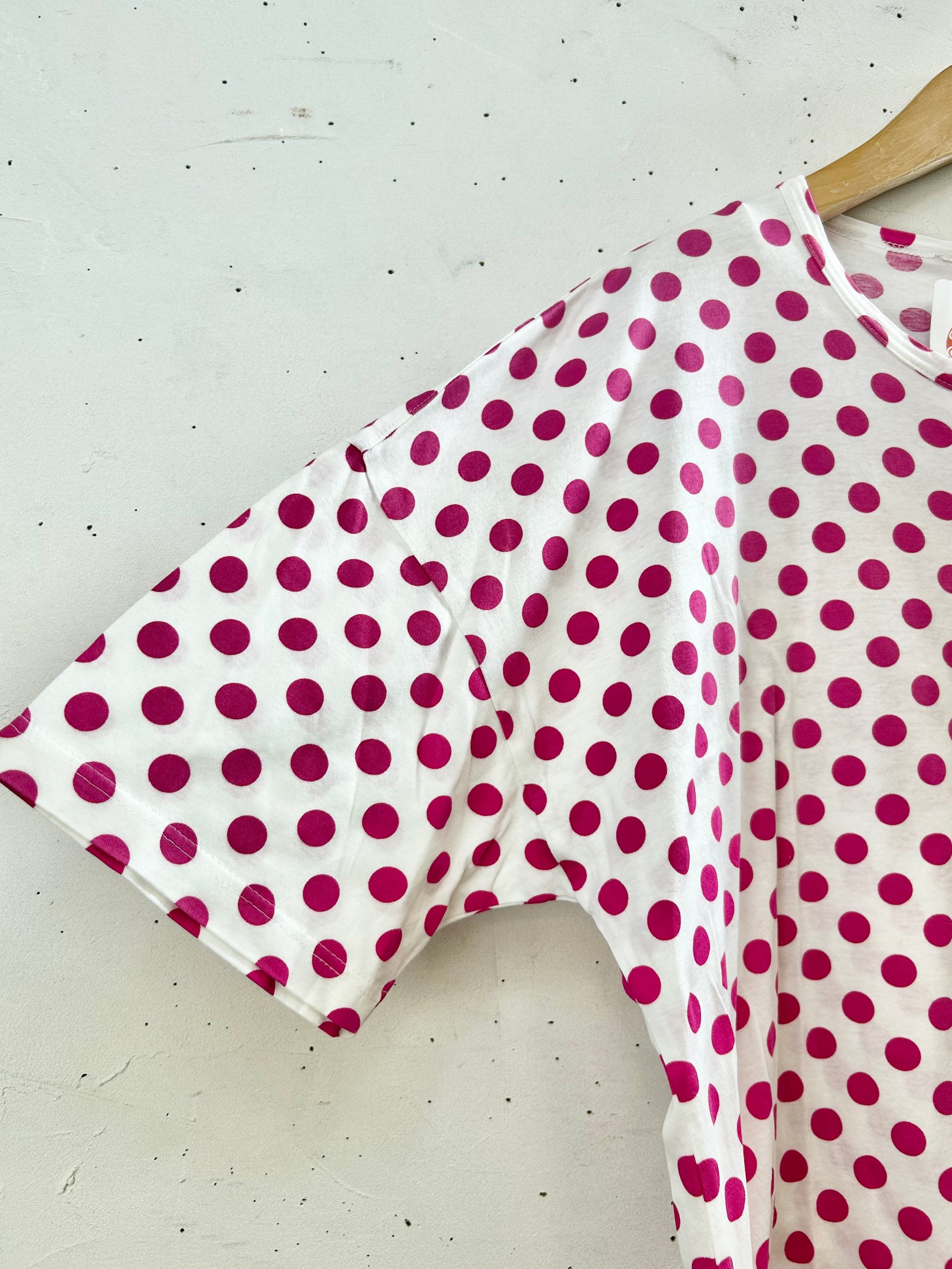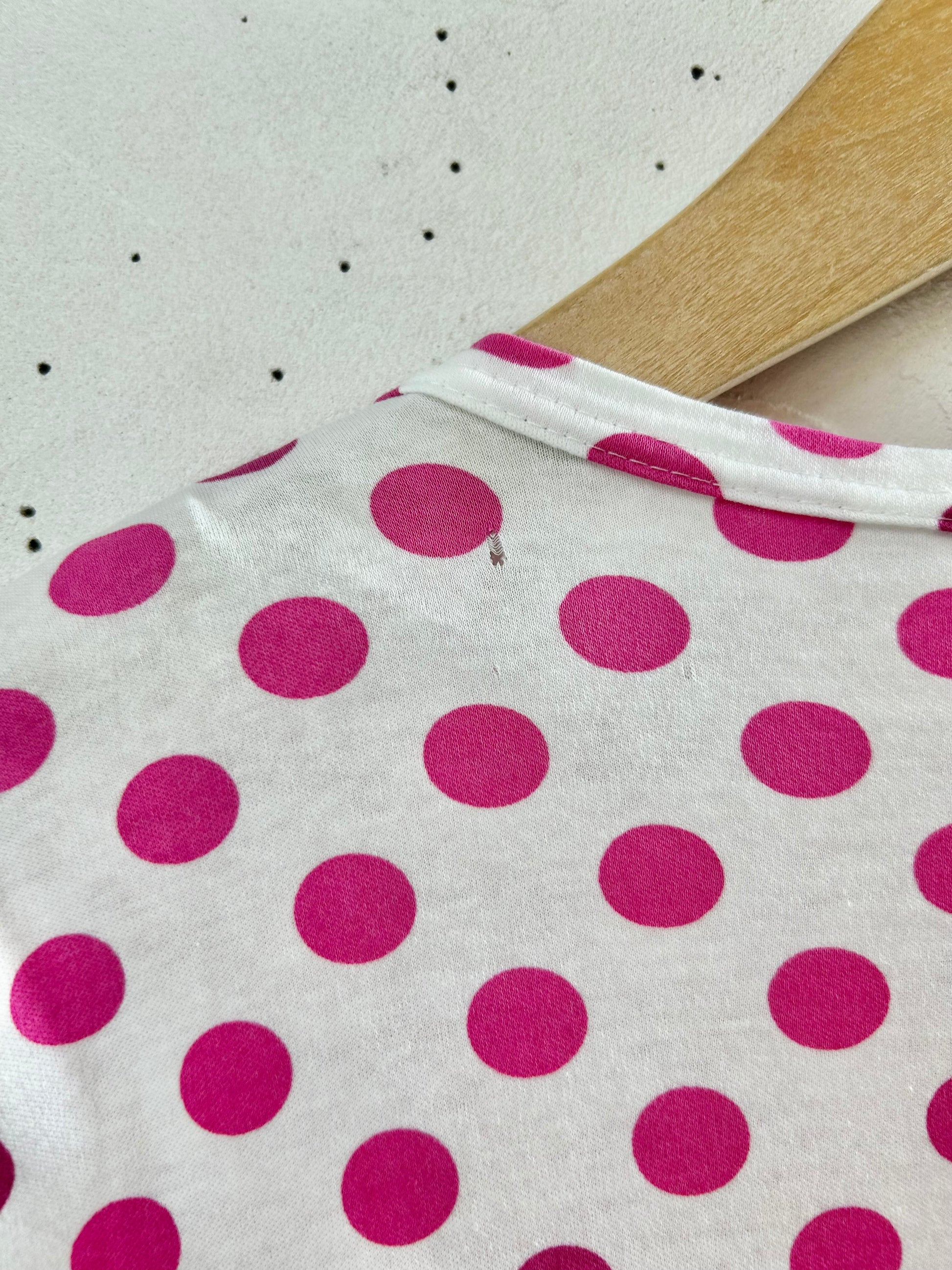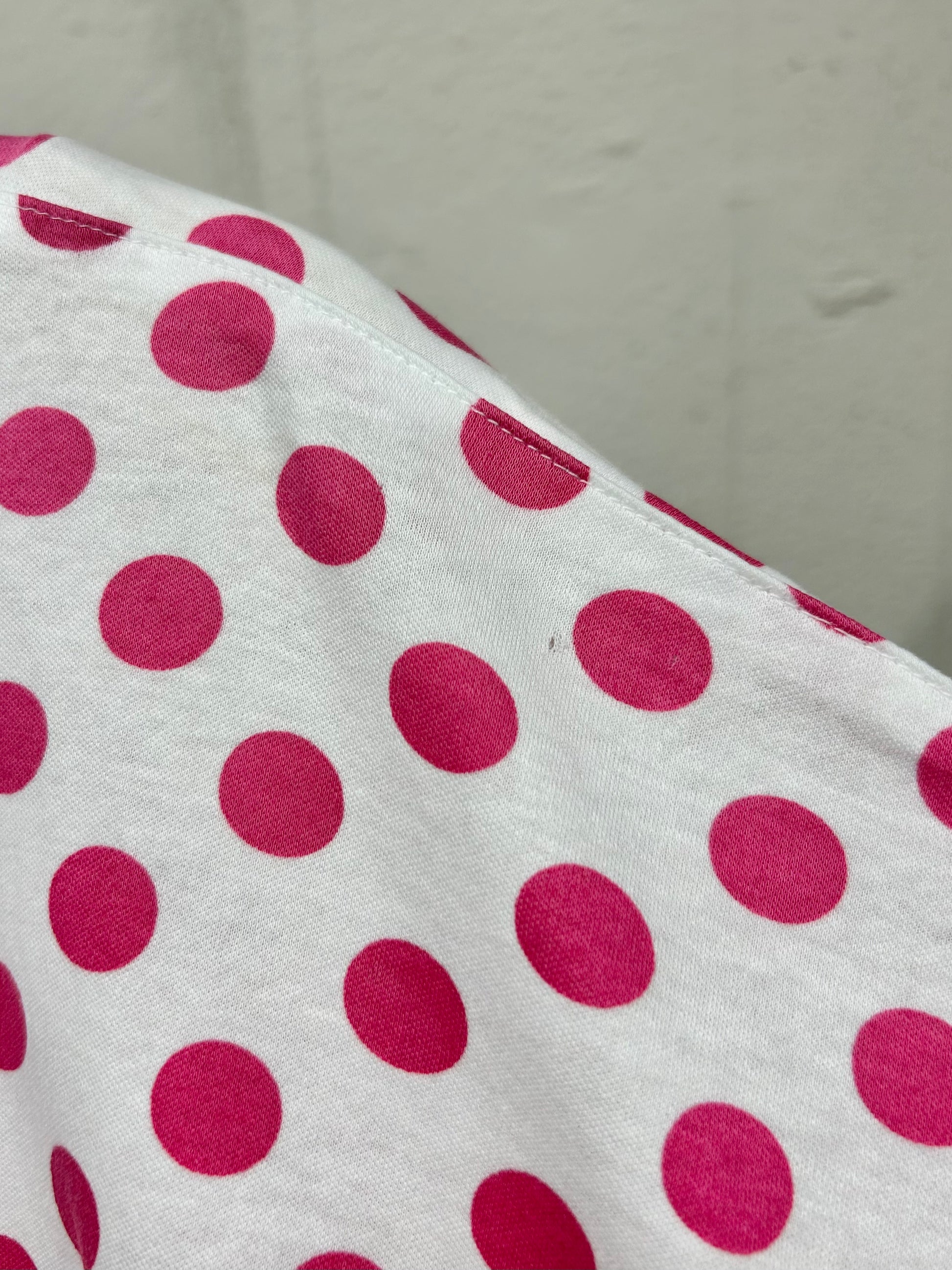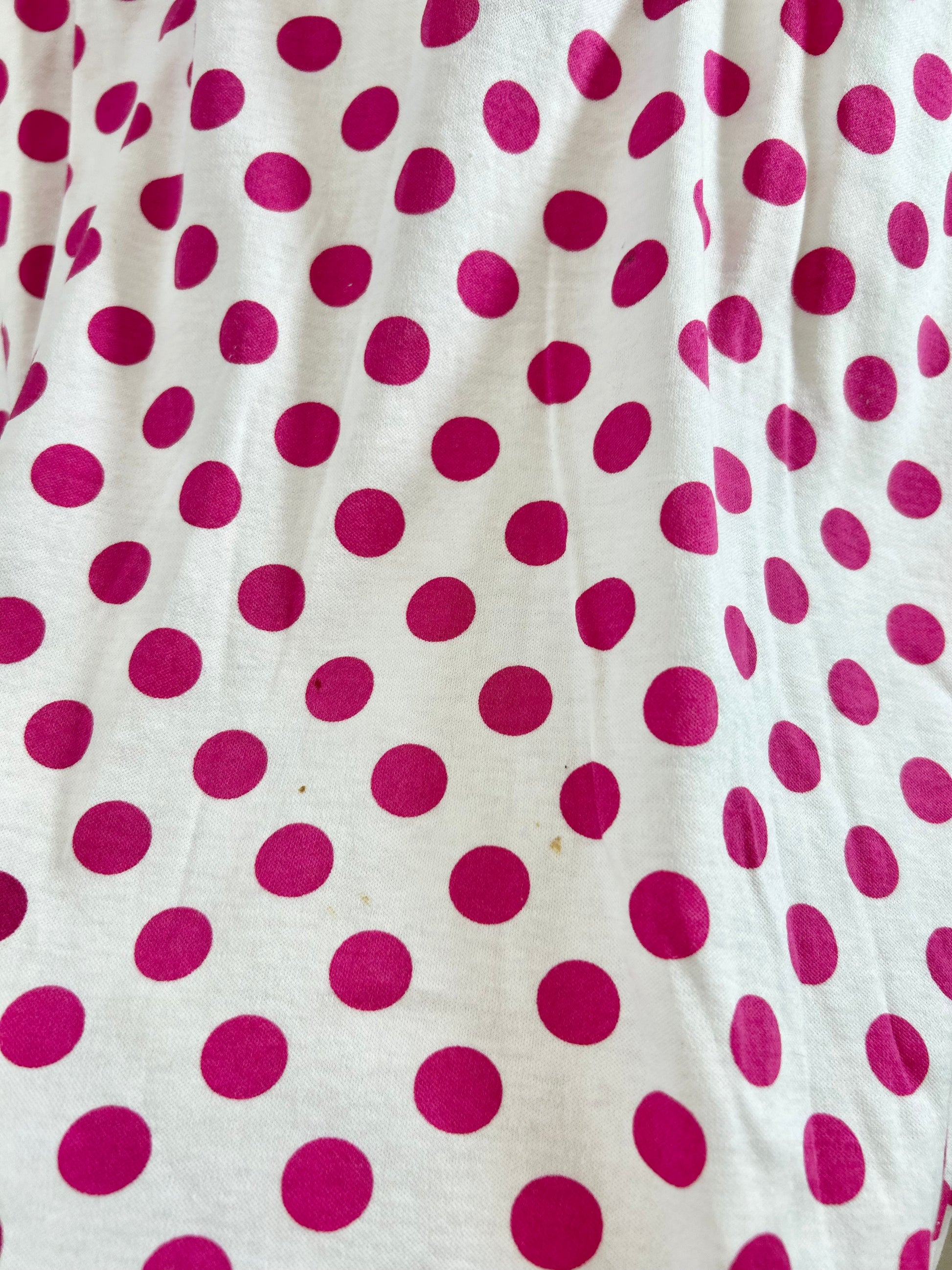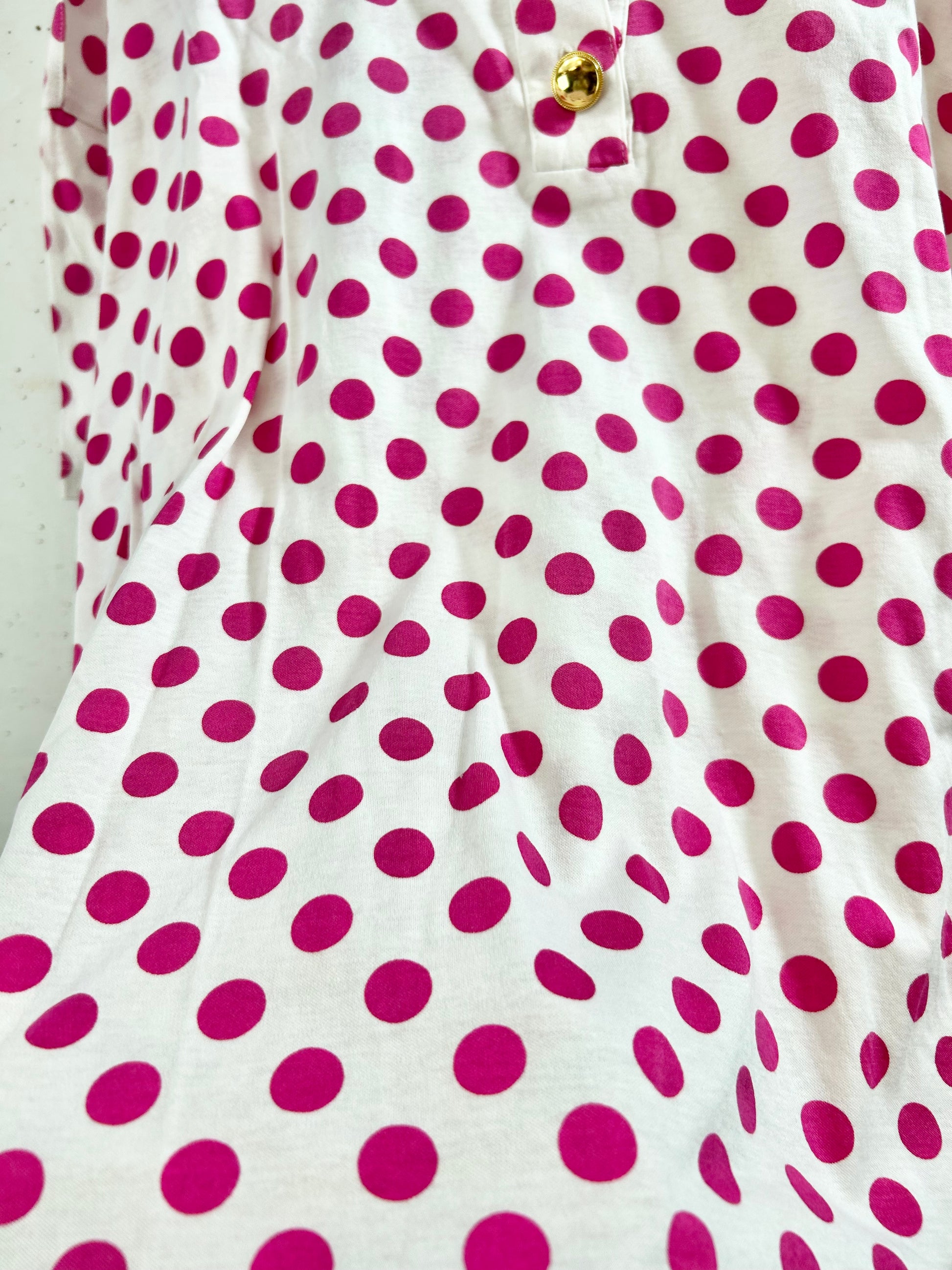 ホワイトボディにマゼンタピンクのドットがキュートな一着。