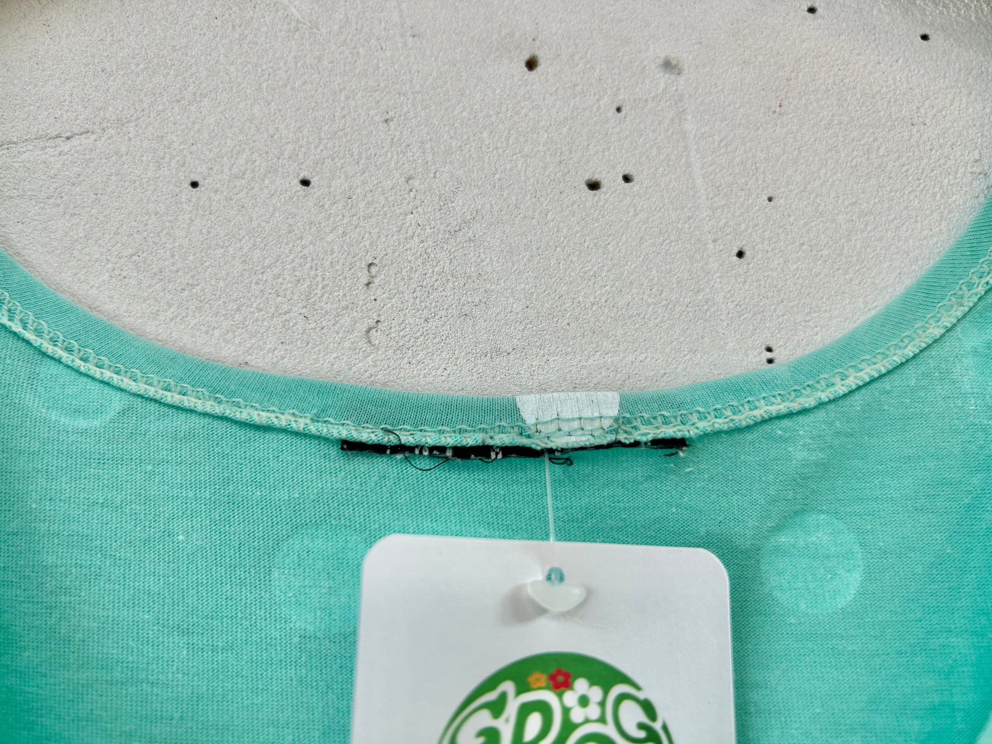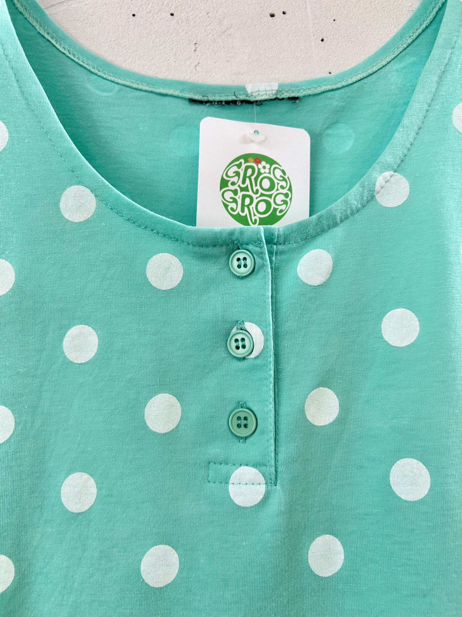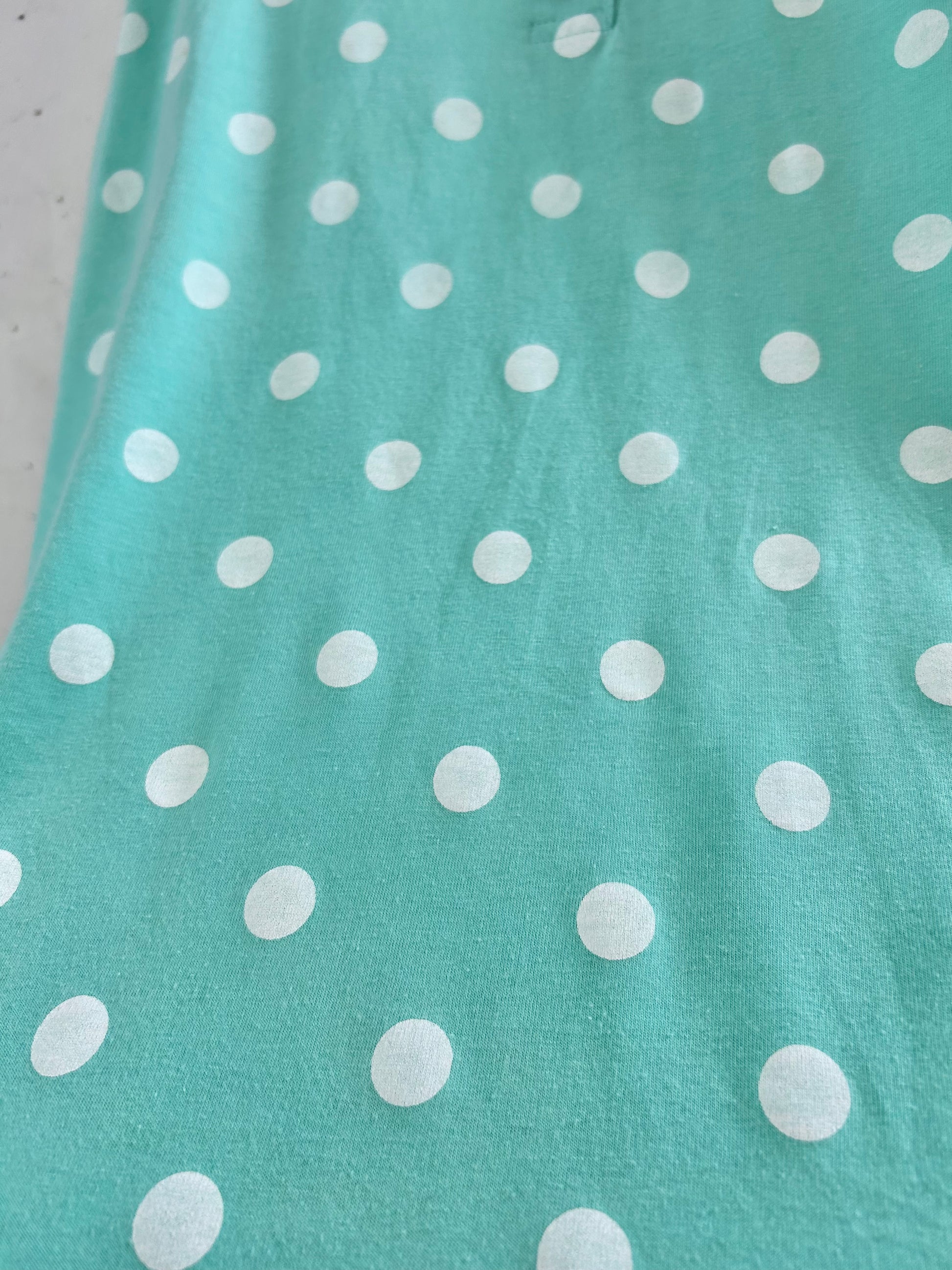 ミントグリーンボディにホワイトのドットが爽やかな一着。