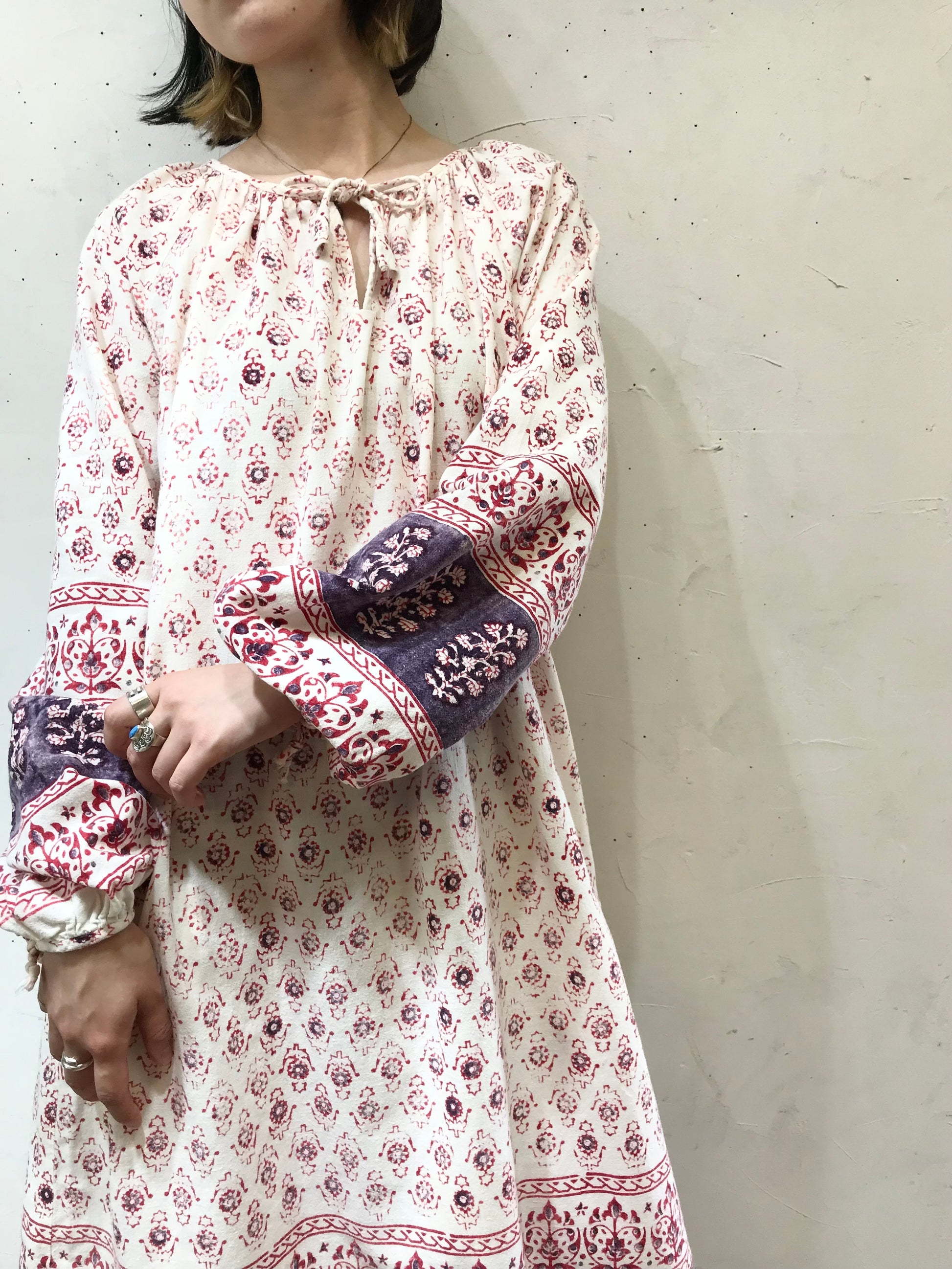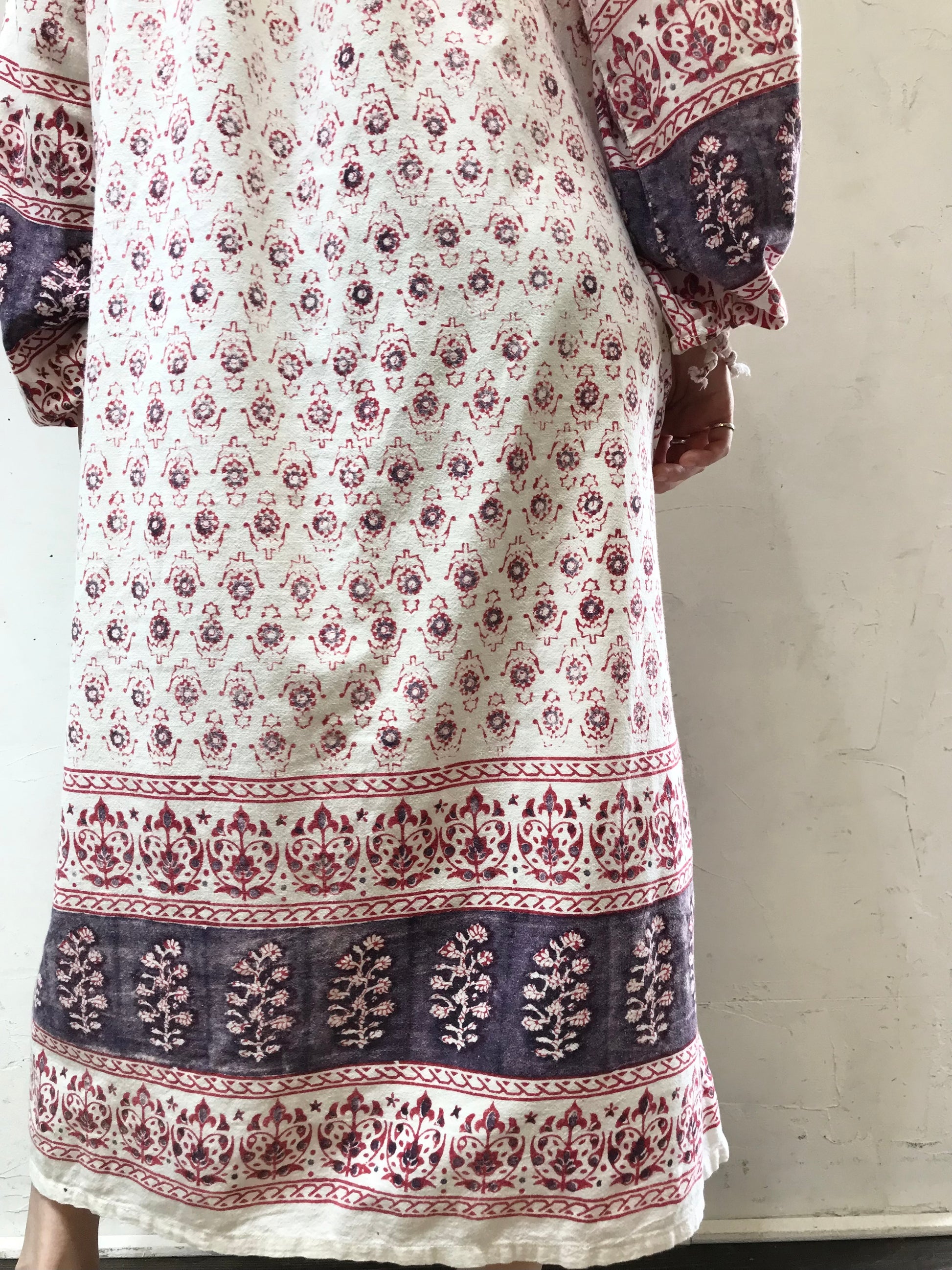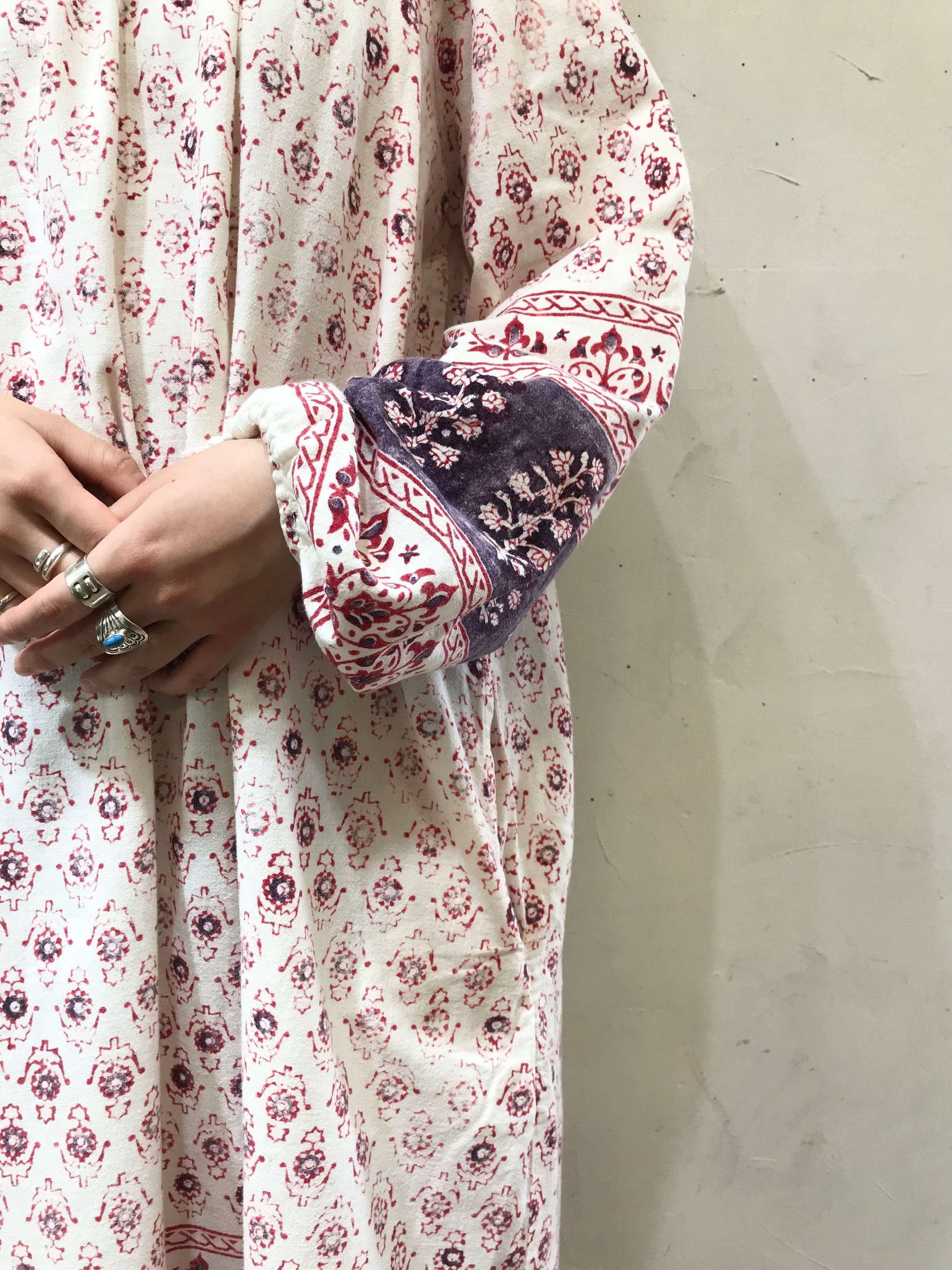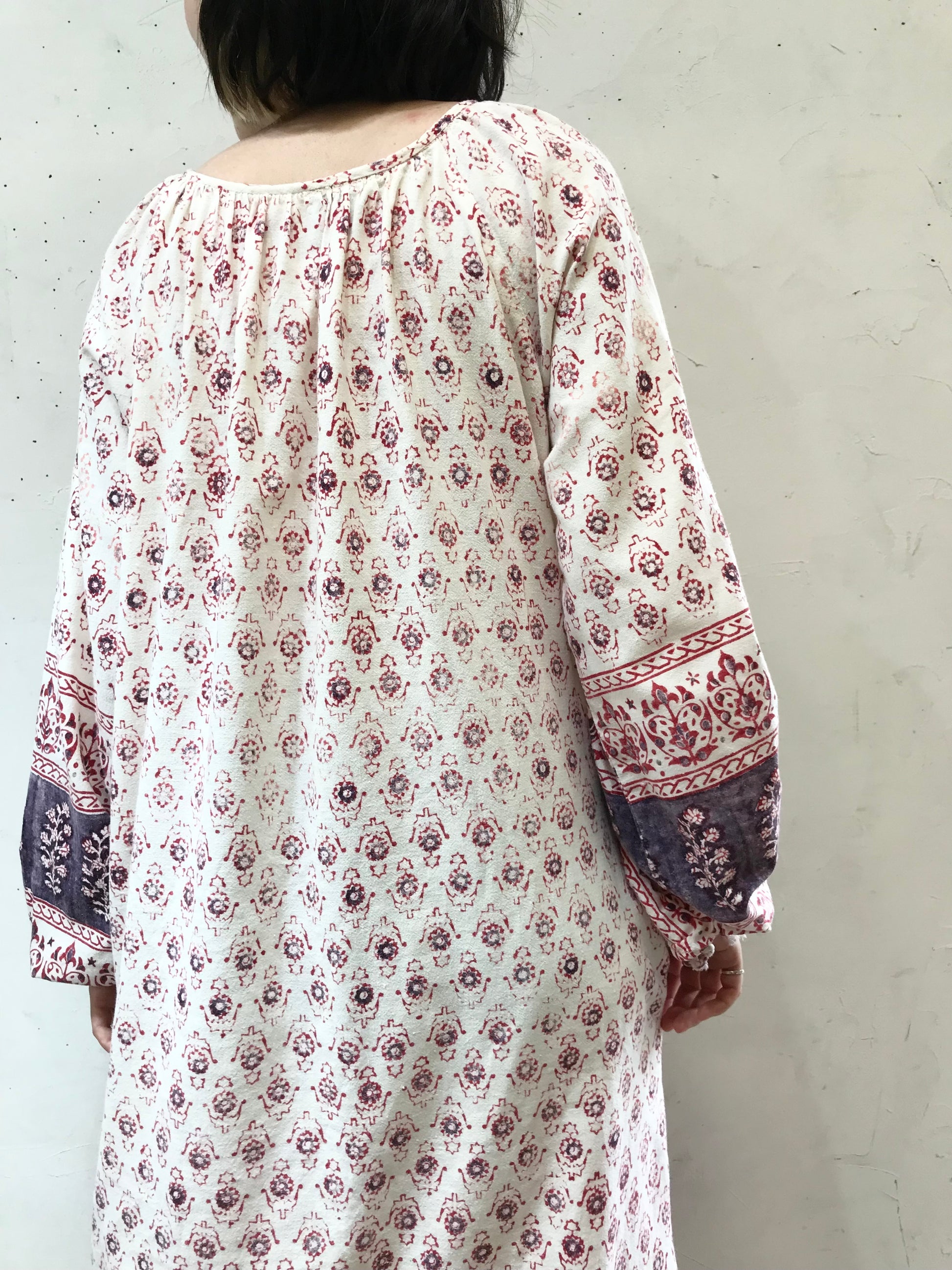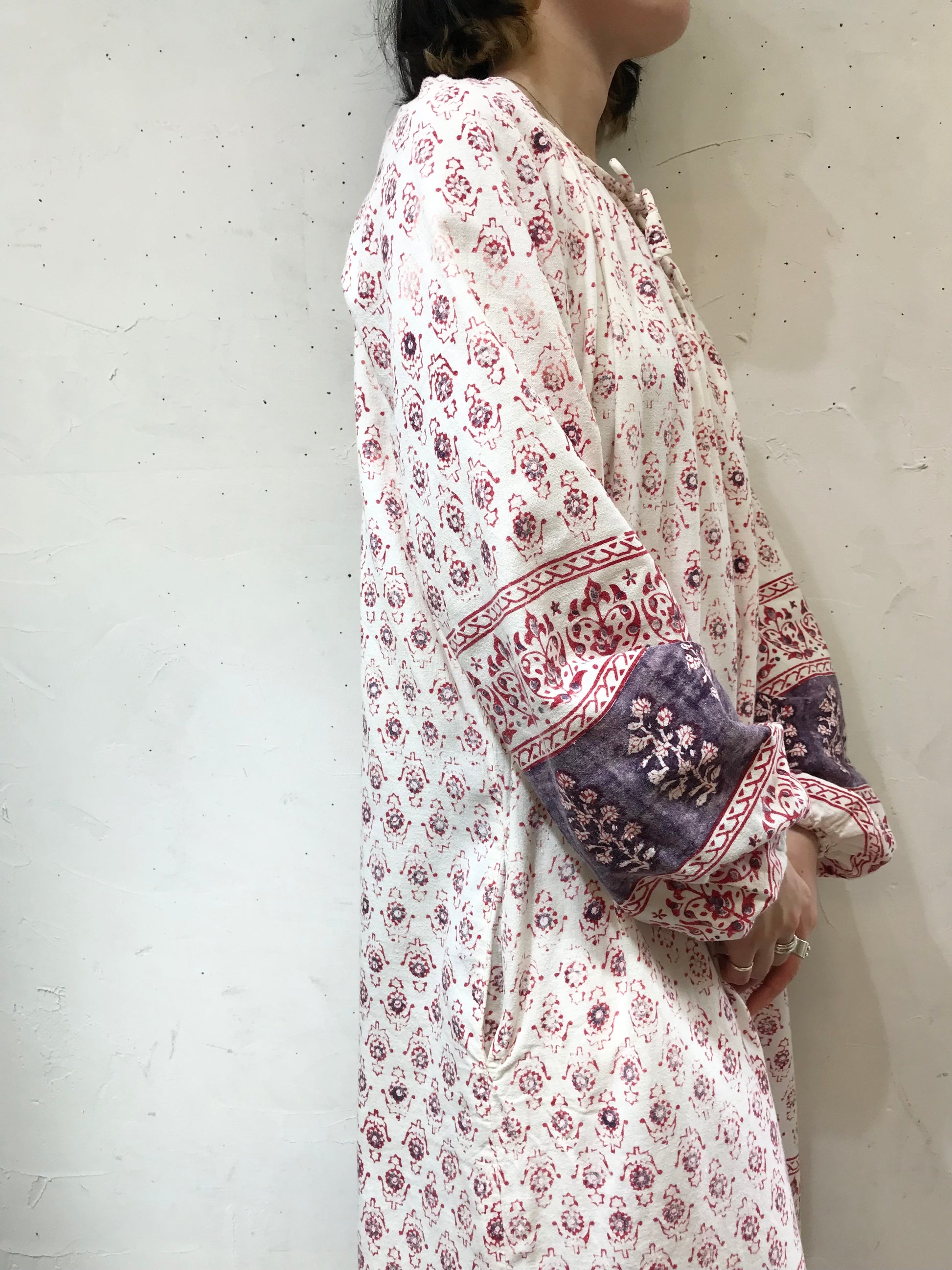 こちらはその中でもしっかりとしたコットンボディに風合があるブロックプリントで表現されたインド綿らしいフラワーデザインが魅力的な1着。