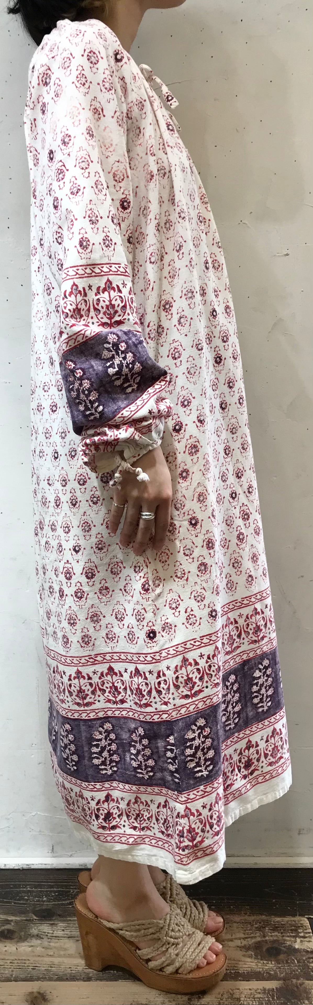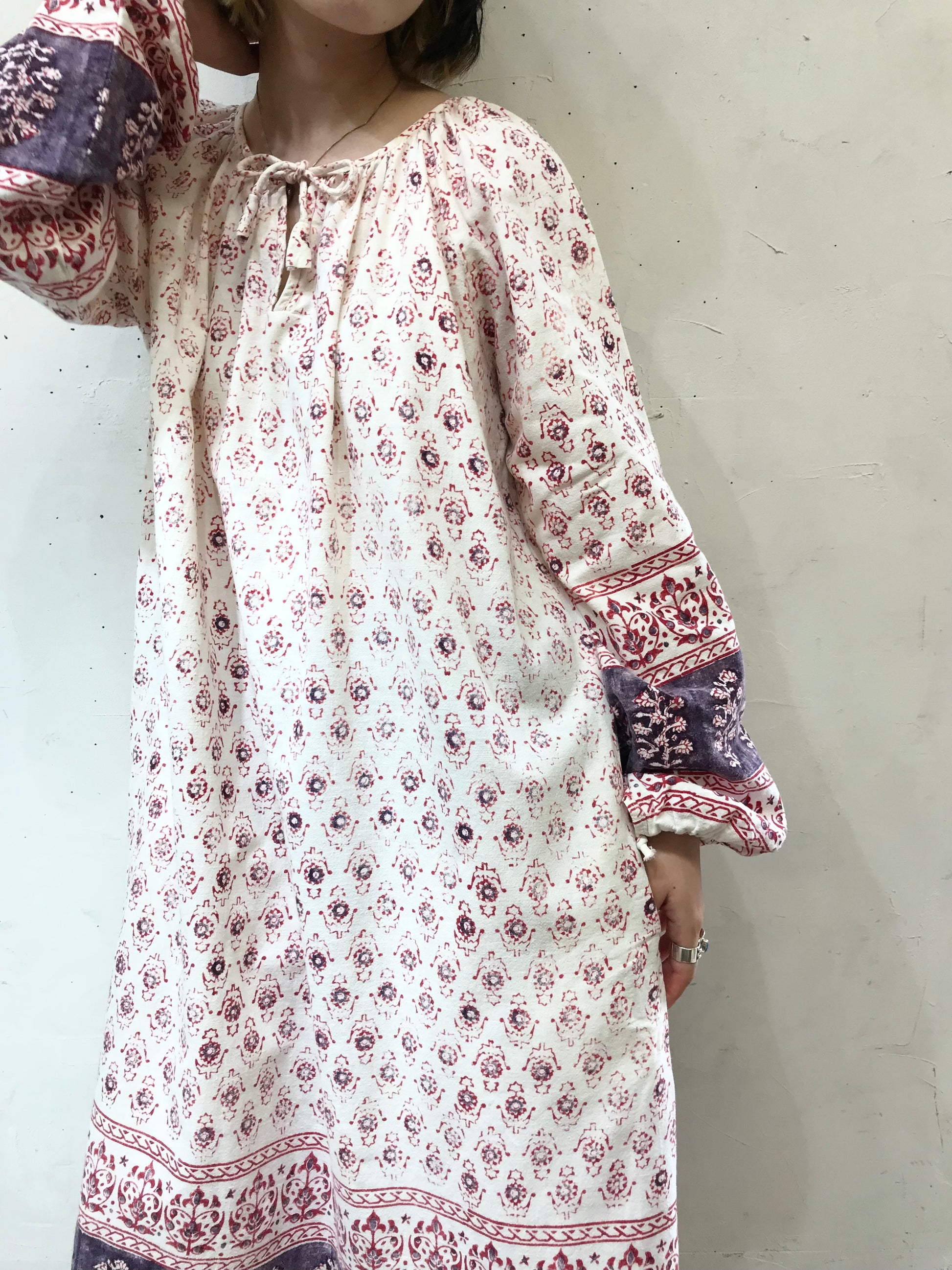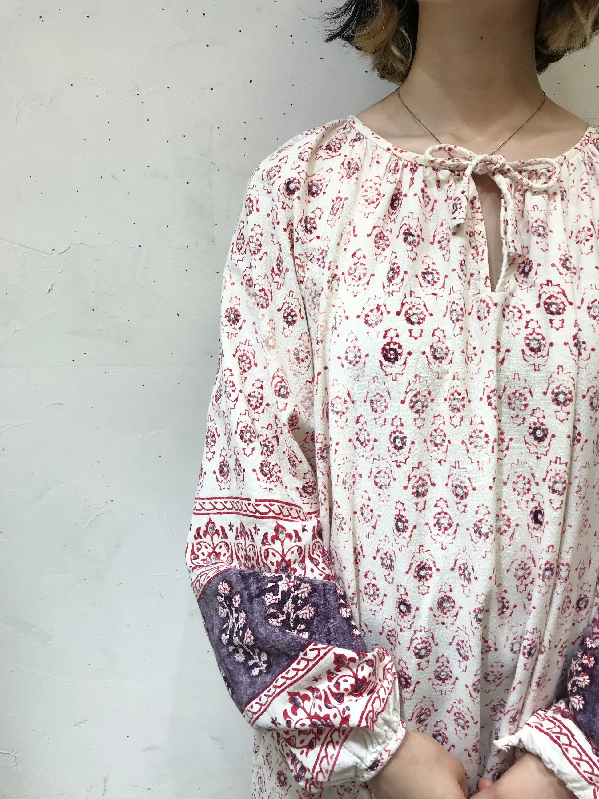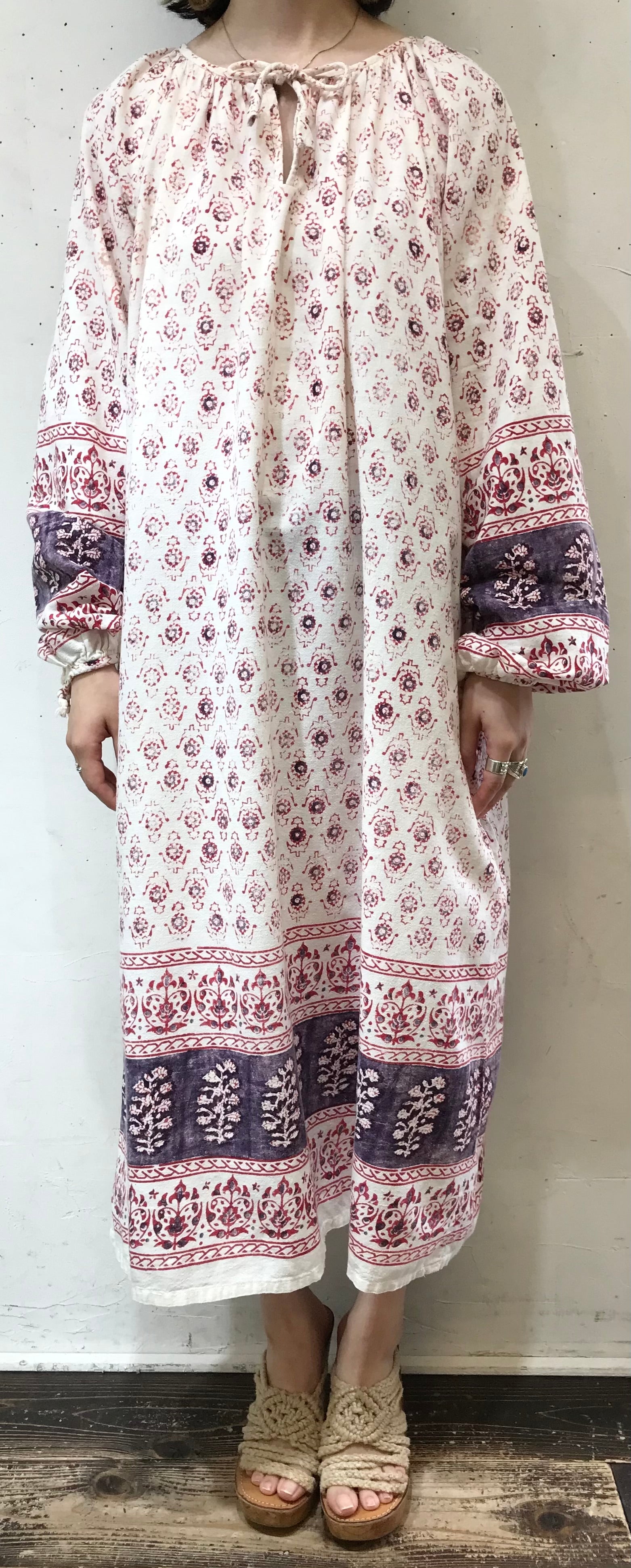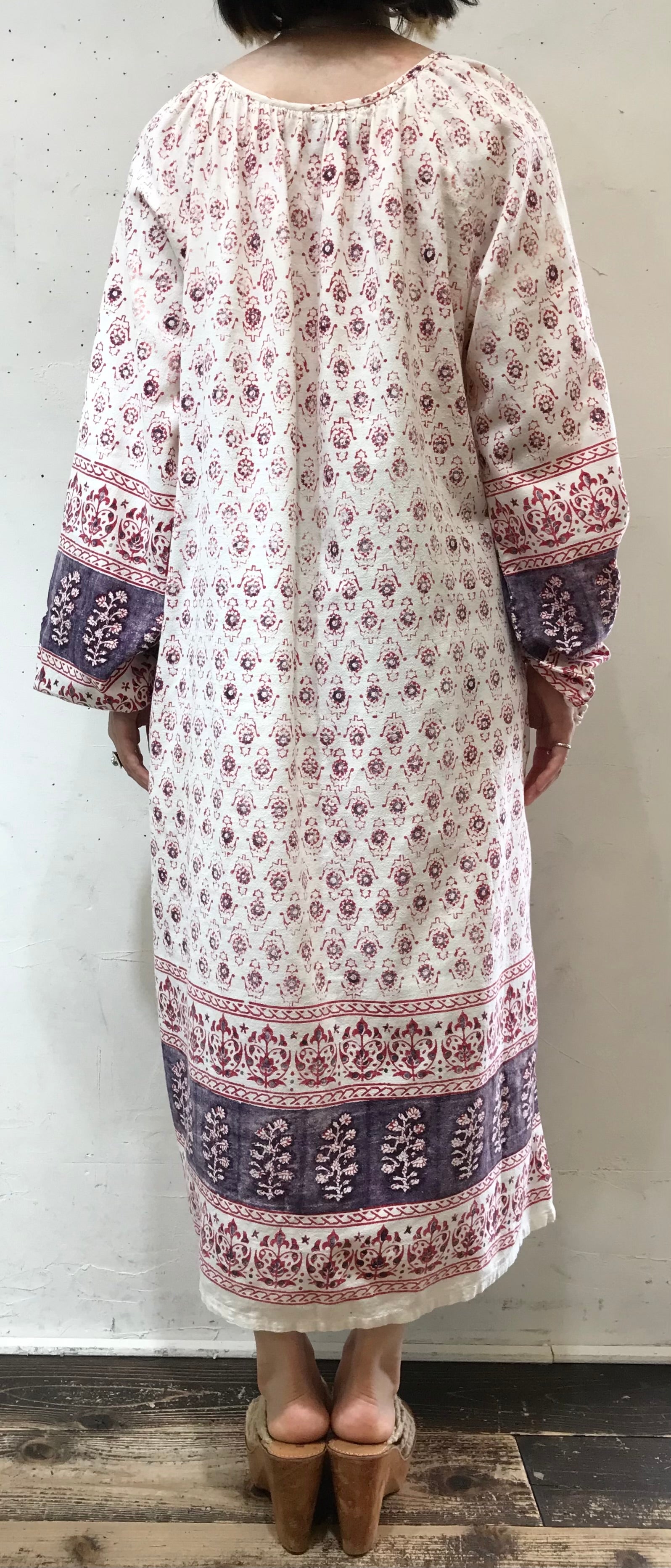 こちらはその中でもしっかりとしたコットンボディに風合があるブロックプリントで表現されたインド綿らしいフラワーデザインが魅力的な1着。