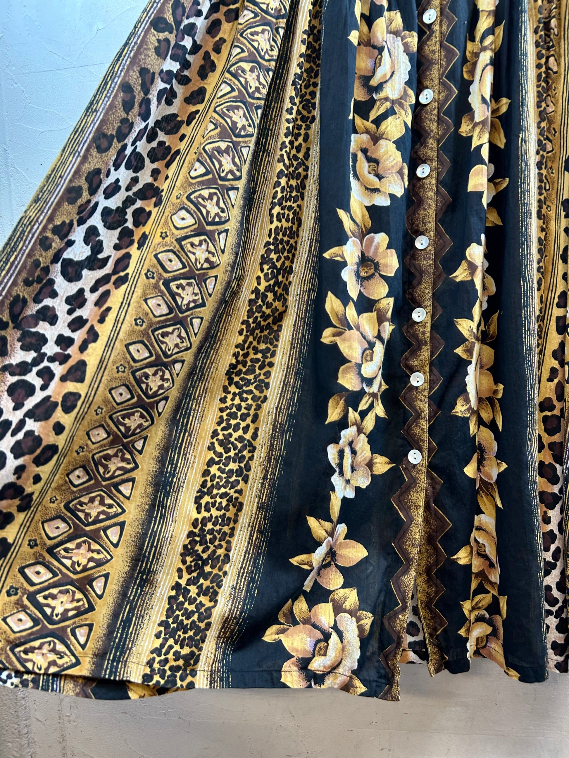 フラワーやレオパードが組み合わさった柄が存在感抜群な1着。