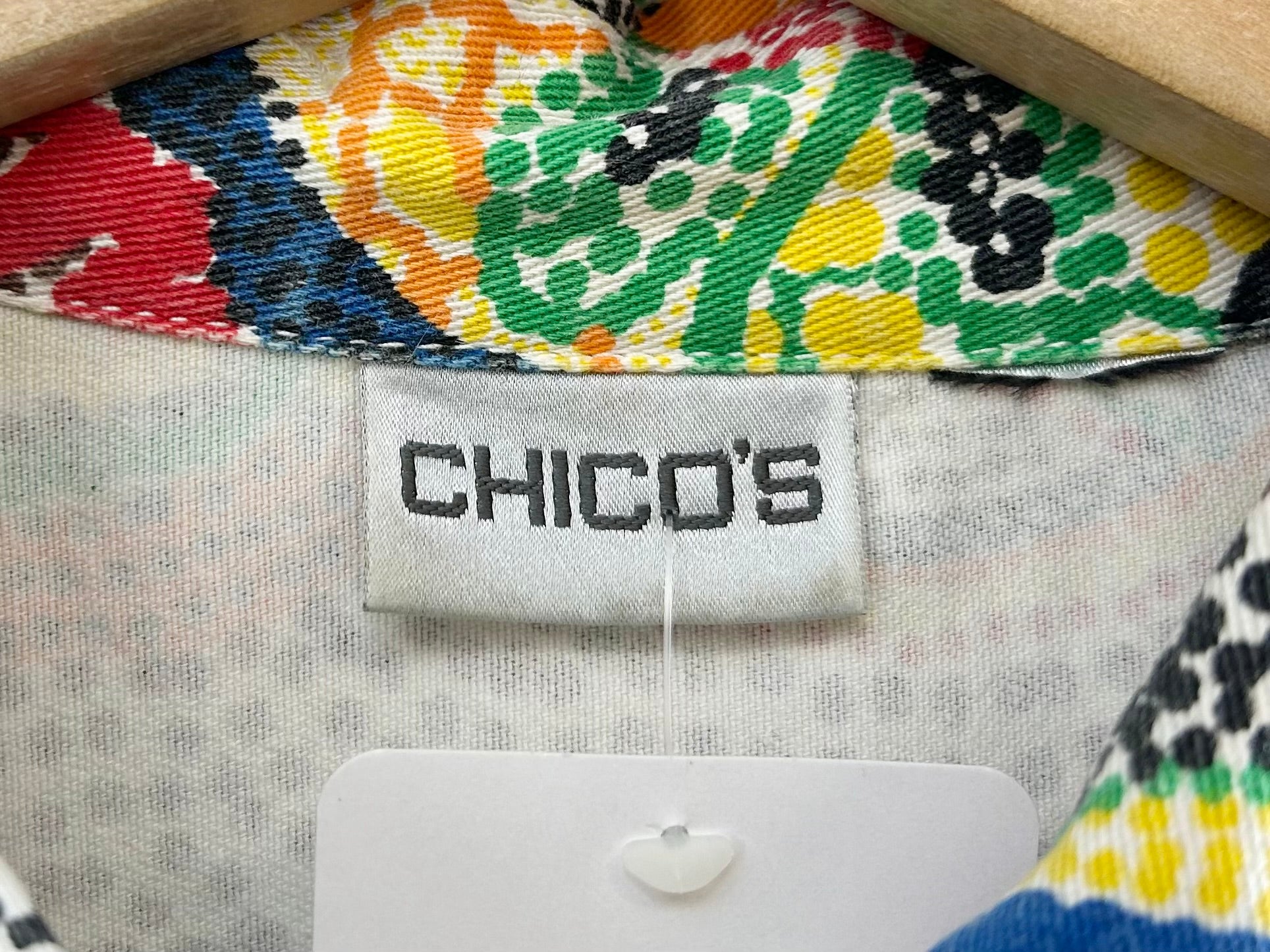 アーティスティックでカラフルなテキスタイルがCHICO'Sらしく目を引く一着。