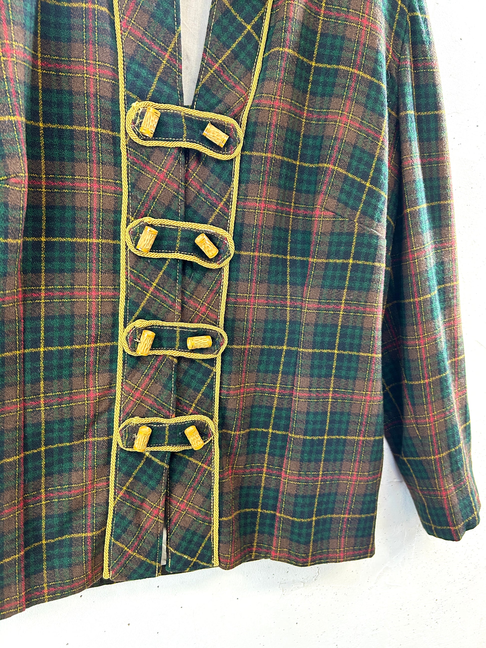 伝統的なチェック柄と遊び心のあるディテールが印象的な1着。