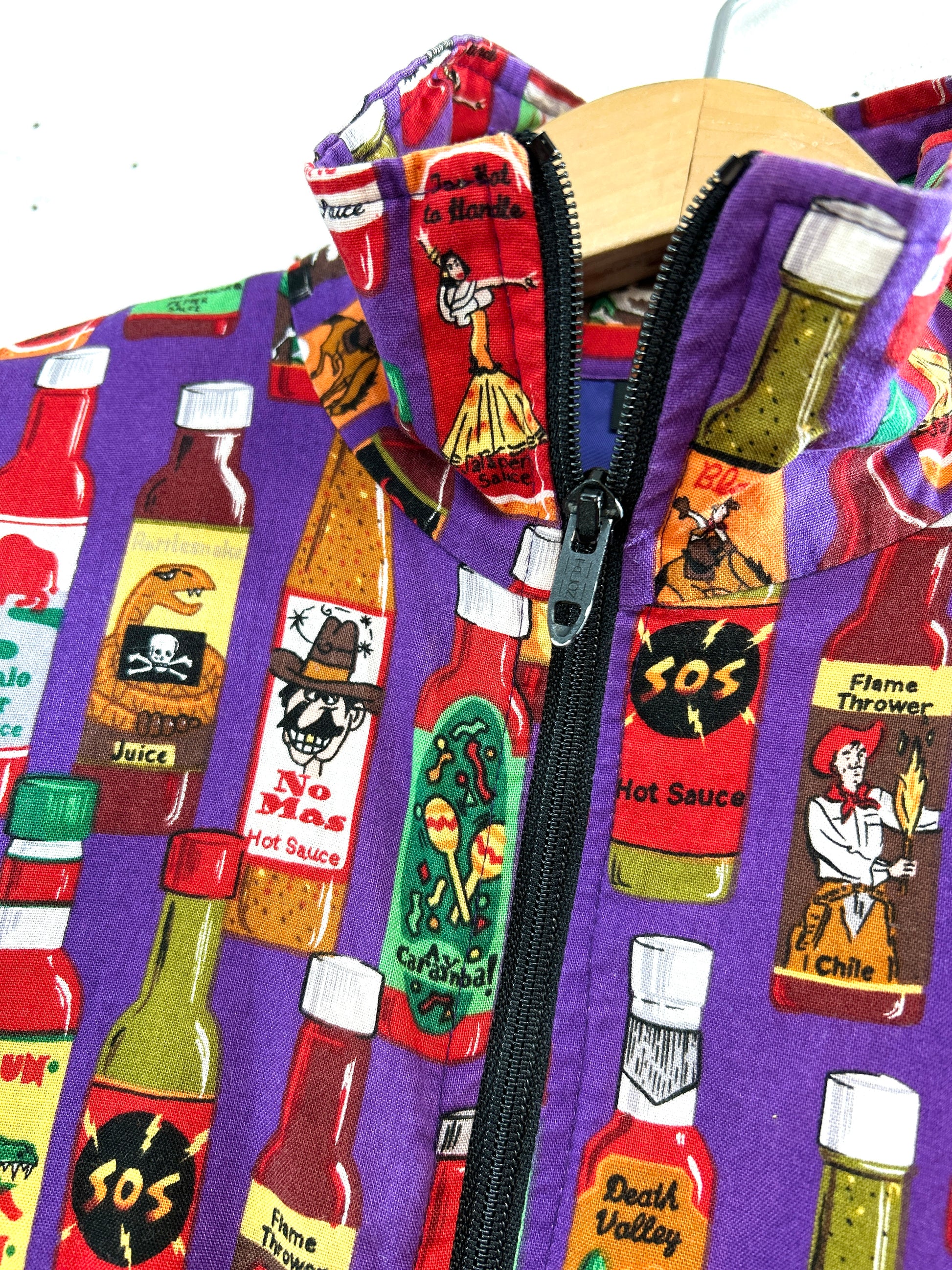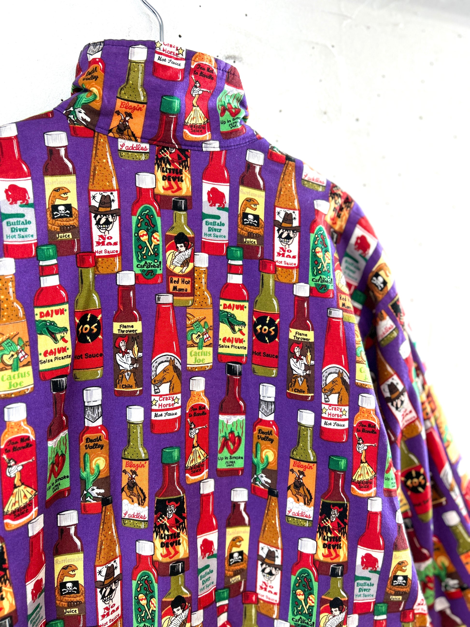 ホットソースがずらりと並んだファニーな柄が個性的なアイテム。