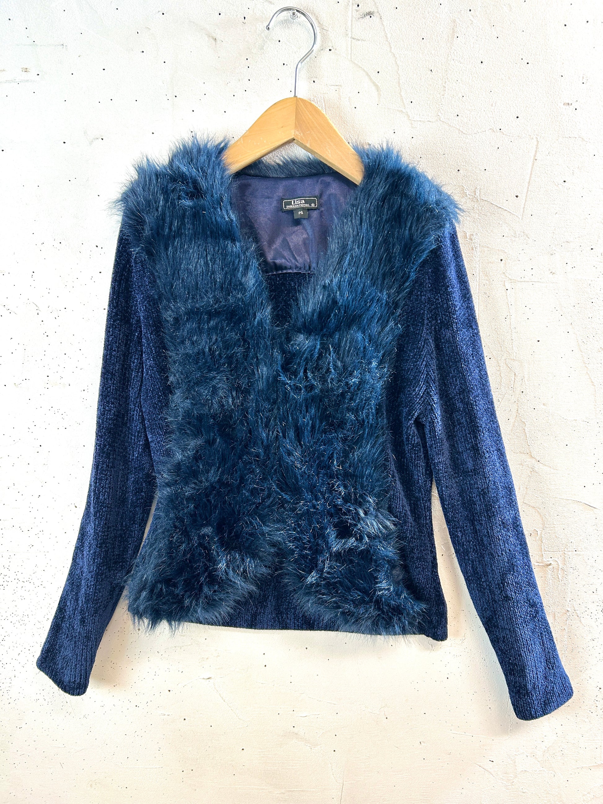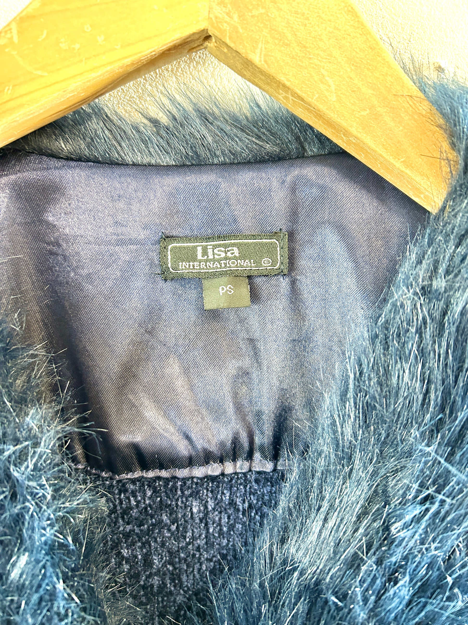 胸元から襟元までファーで覆われており、ボディはモール素材でしっかりと編まれている質の良い質感で、深いネイビーカラーが可愛い一着。