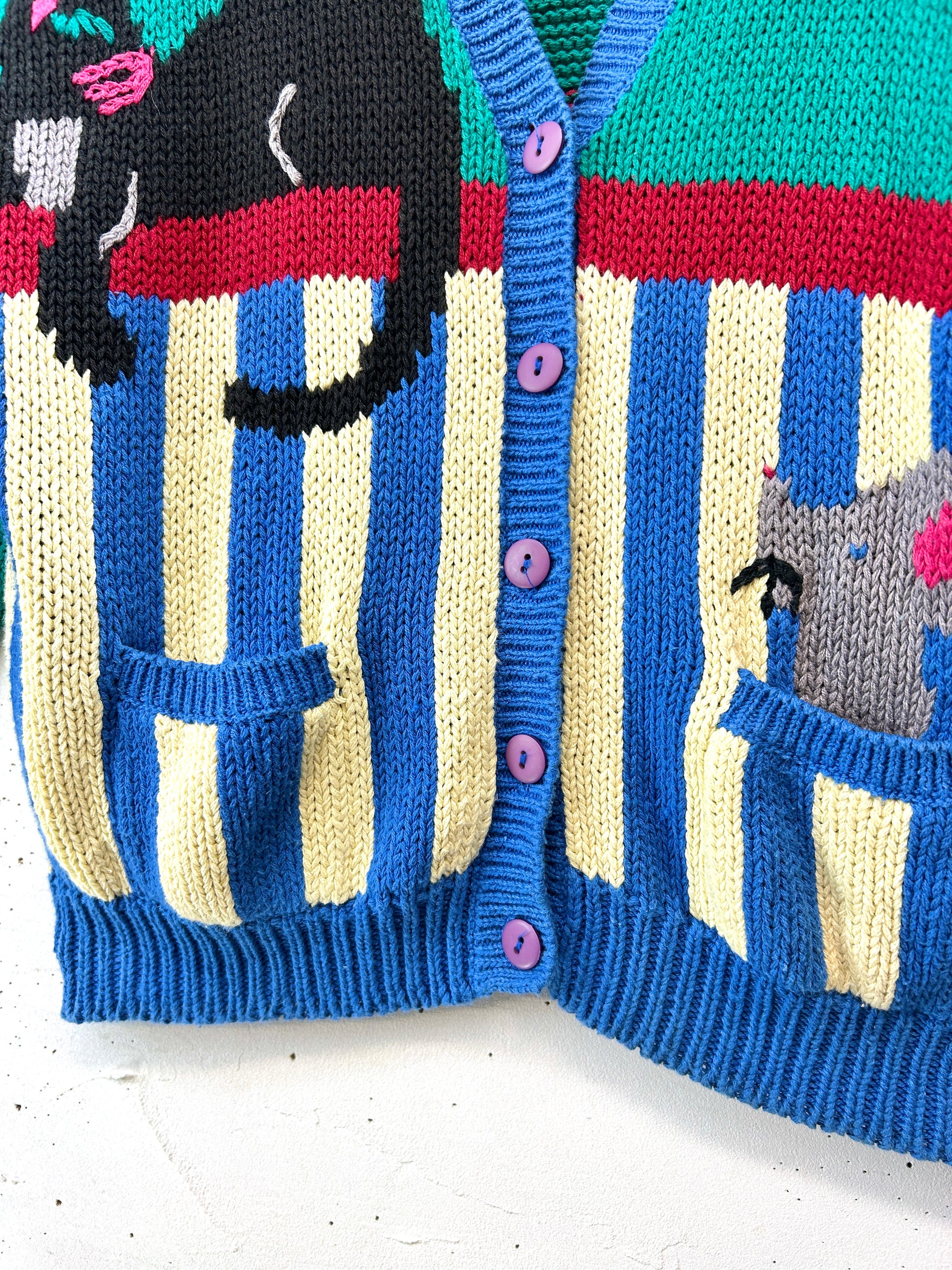 人気のニットカーディガンの中でも特に人気の高い動物柄に、レースなどのデザインもファニーでビンテージらしさのあるアイテムです。