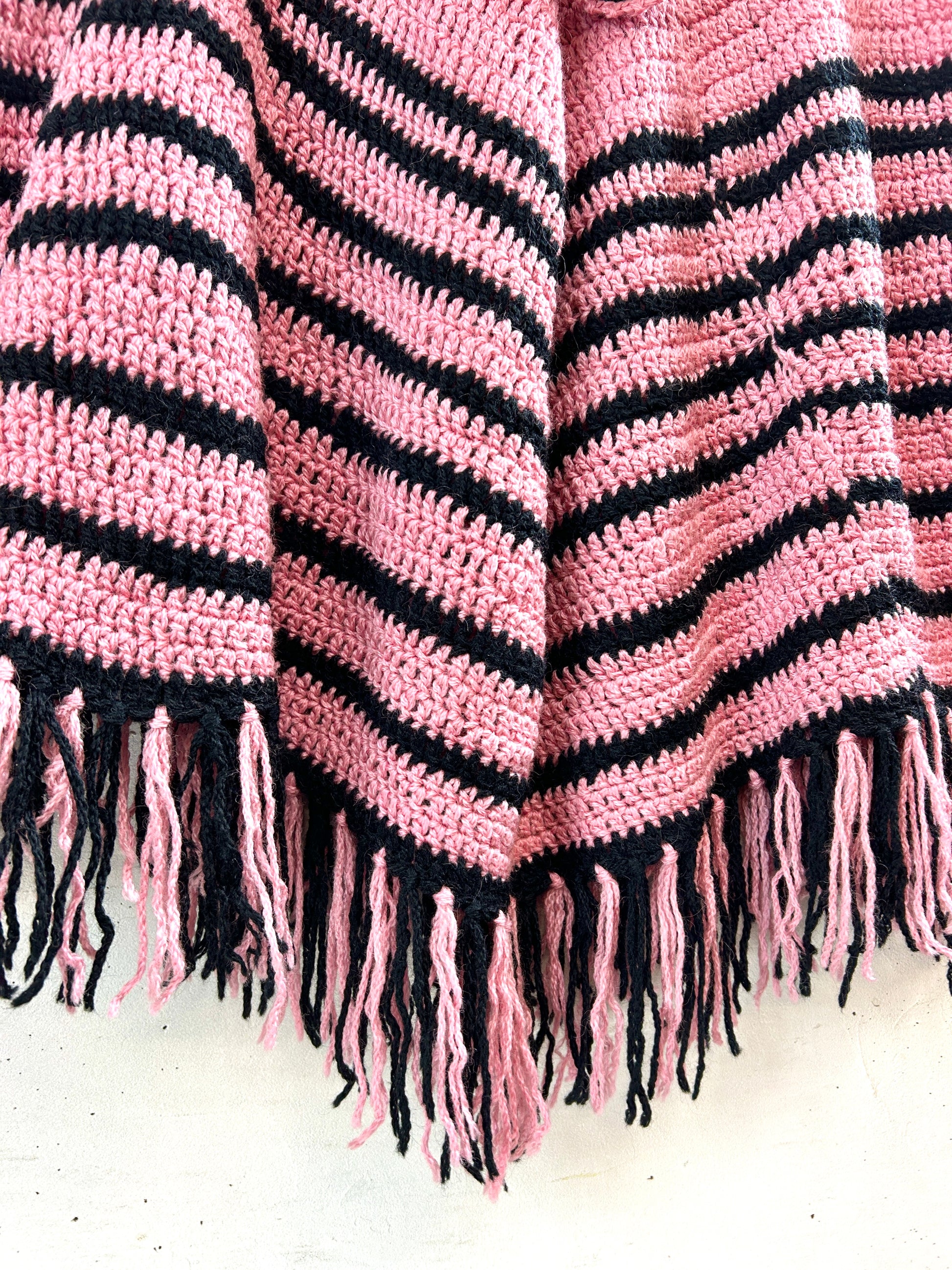 ピンクに黒のラインの入ったビンテージらしいカラーリングのニットポンチョ。
