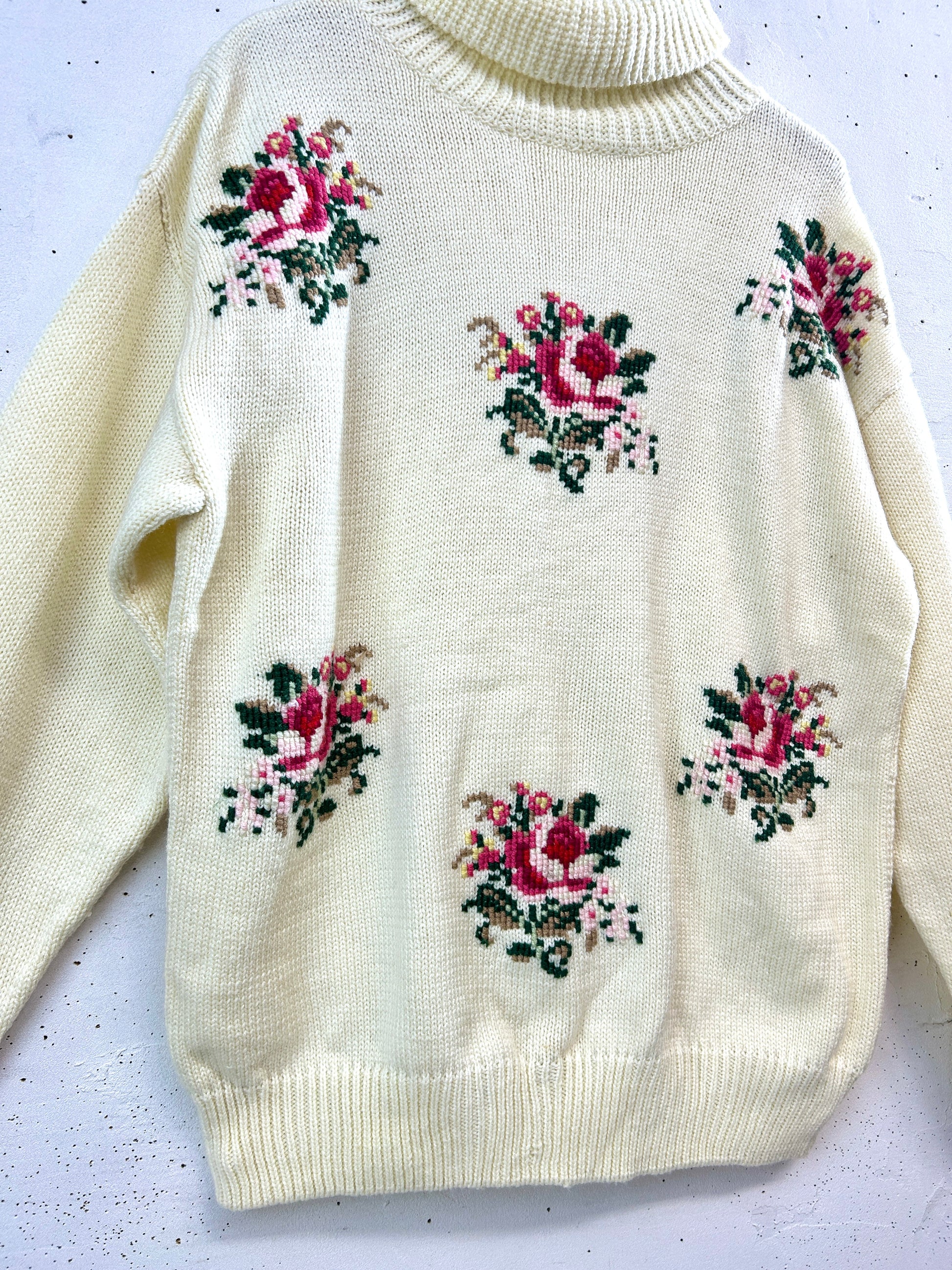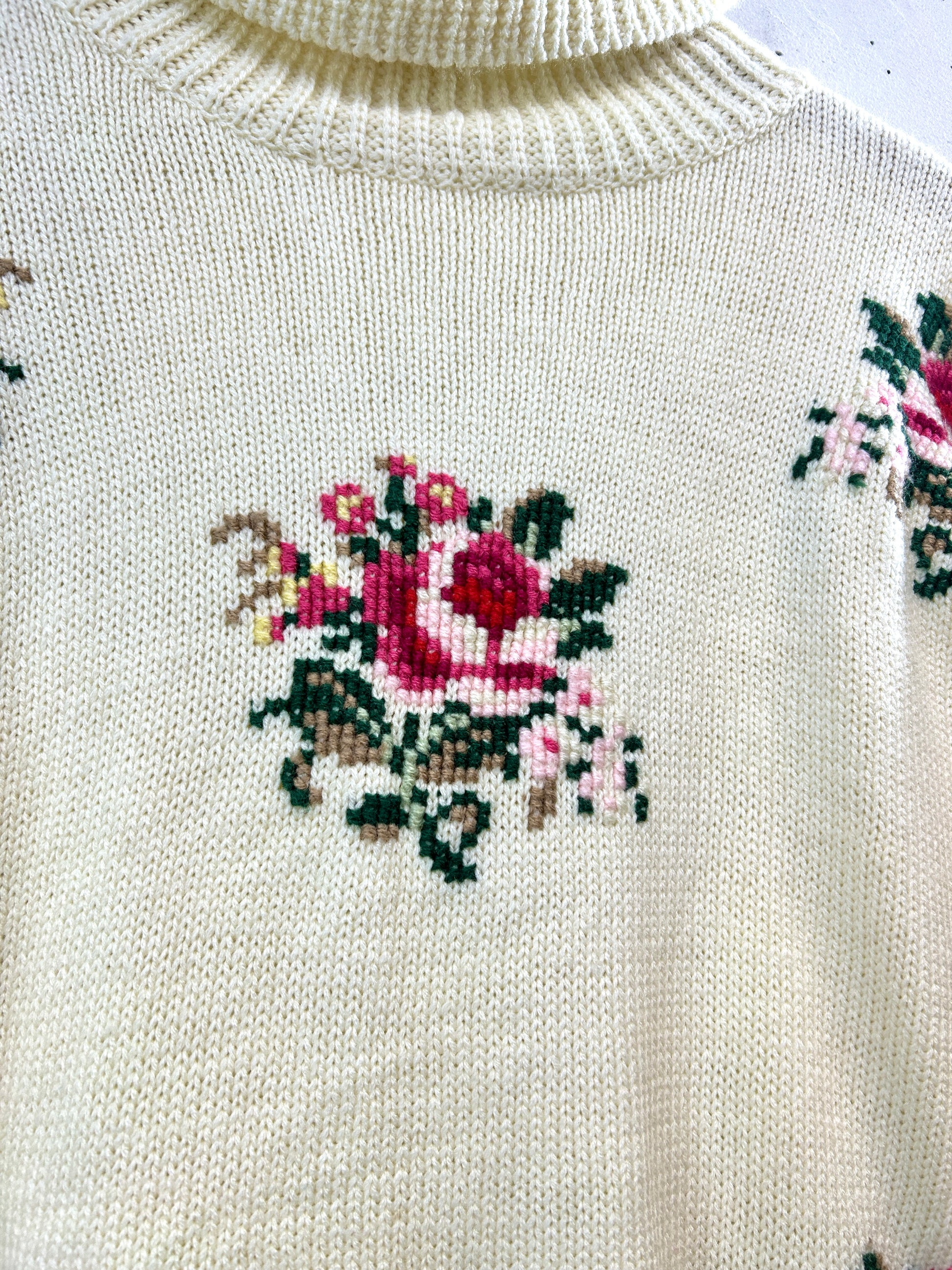 ナチュラルホワイトのボディにクロスステッチのお花刺繍が非常に可愛いアイテム。