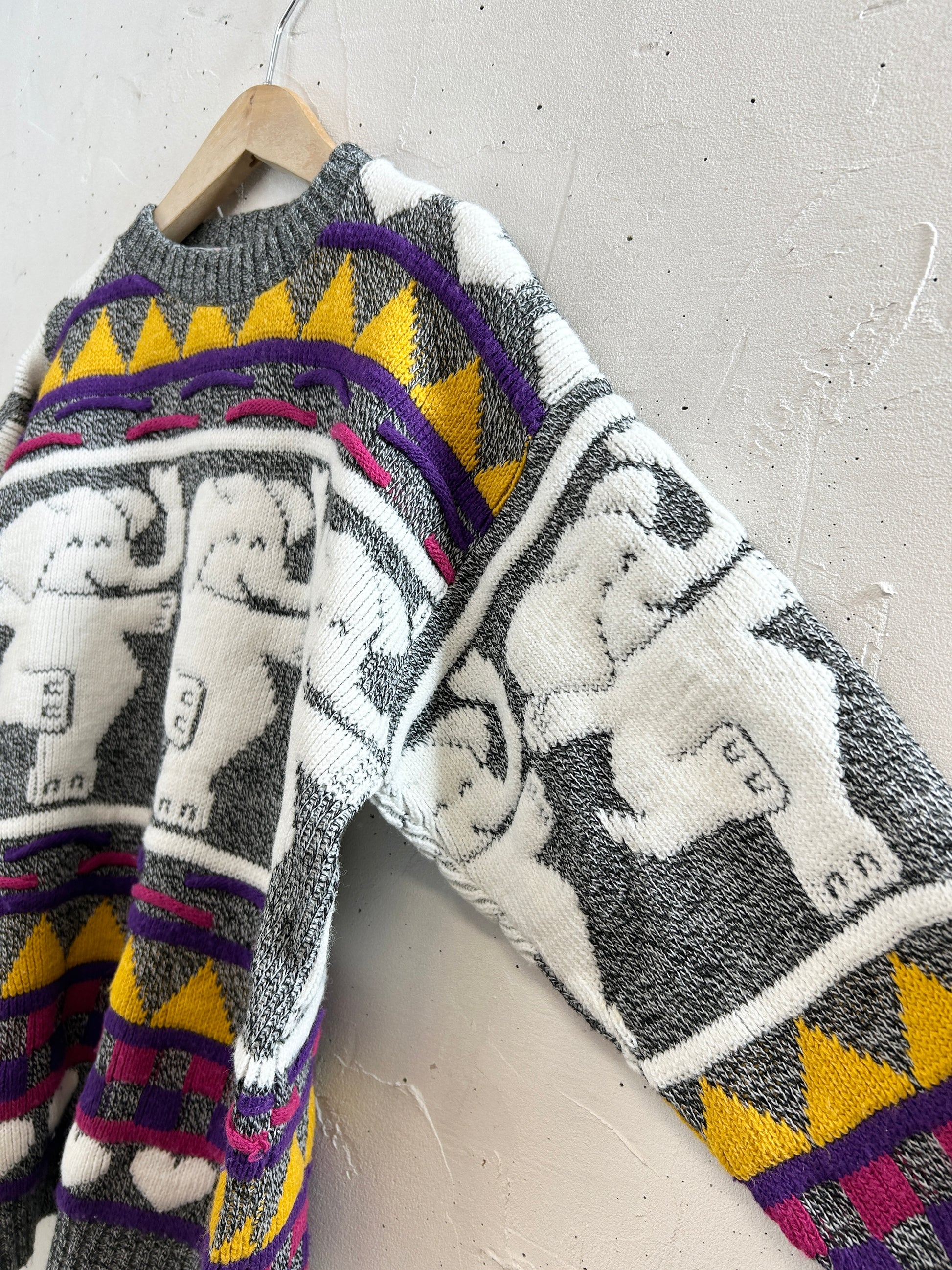 グレーボディに笑顔のゾウがデザインされた非常に可愛らしい1着。