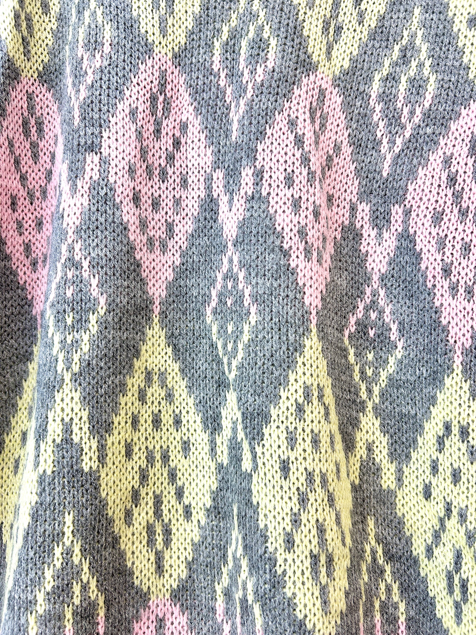 キュートなカラーリングとアーガイルデザインが可愛い1着。
