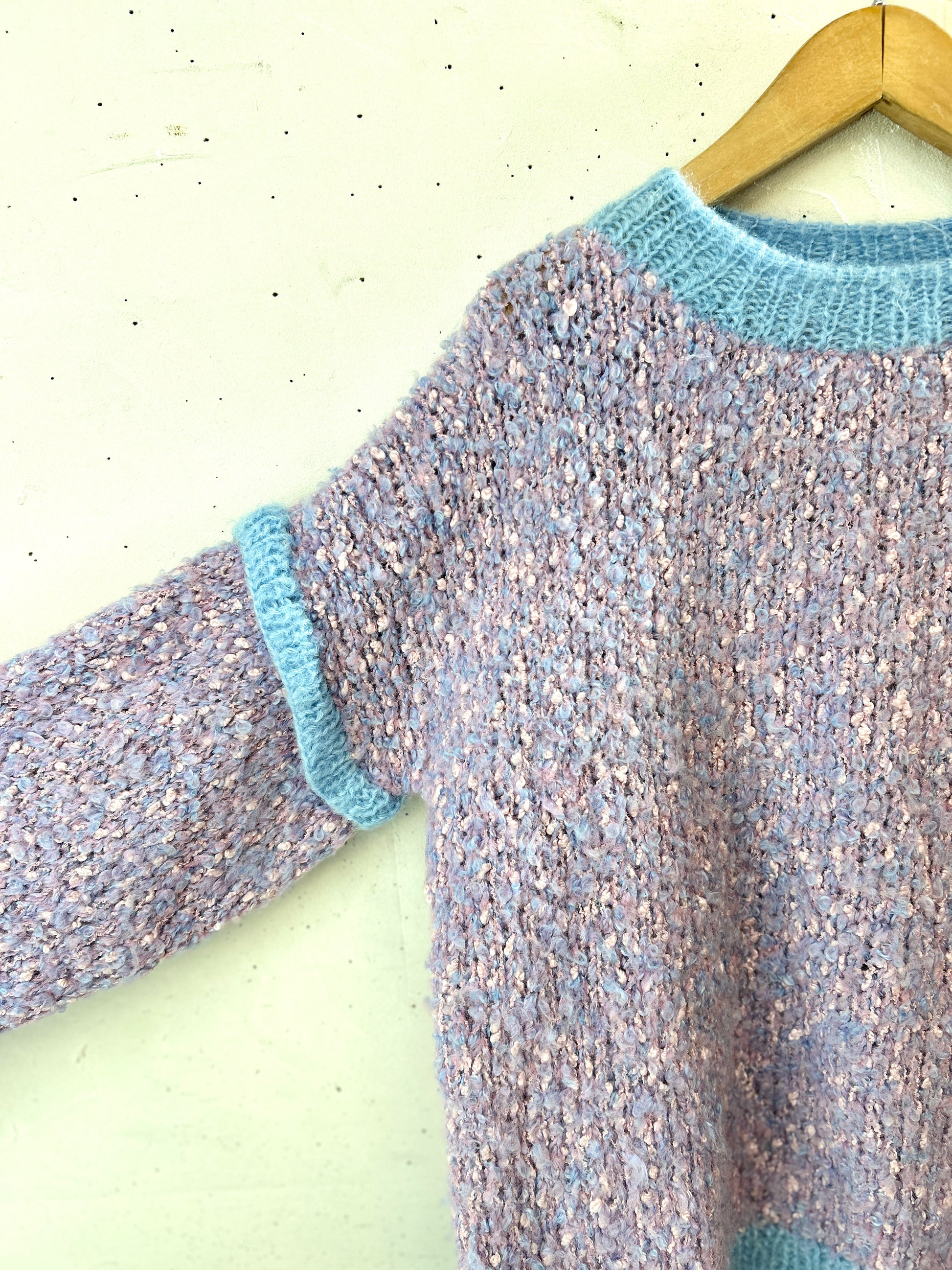 ざっくり編みのふわふわとしたボディに、ファンシーヤーンが可愛らしい一着。