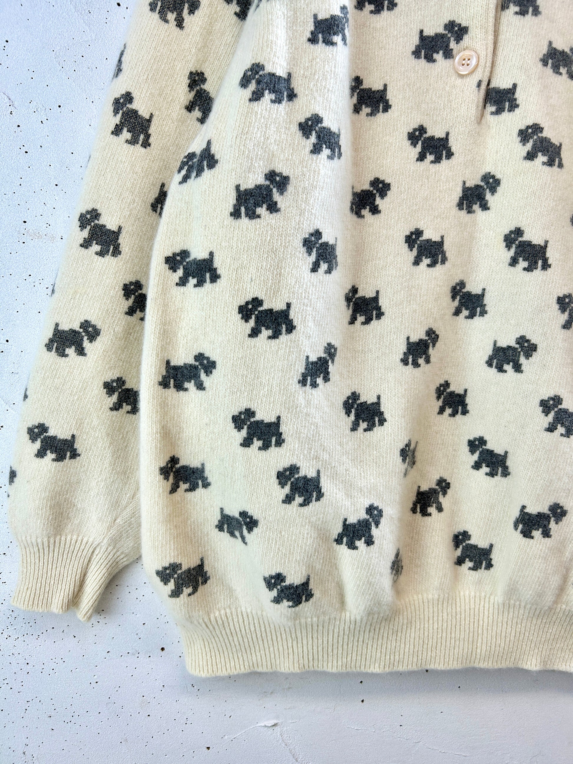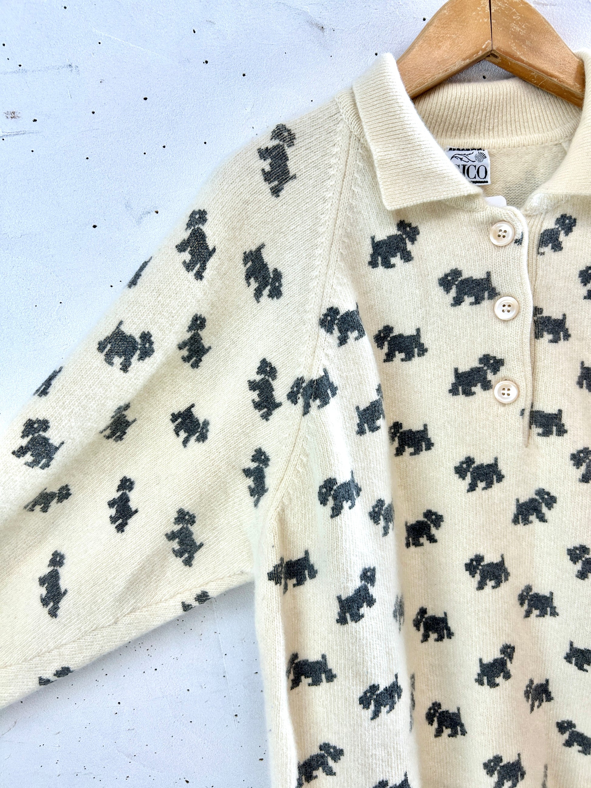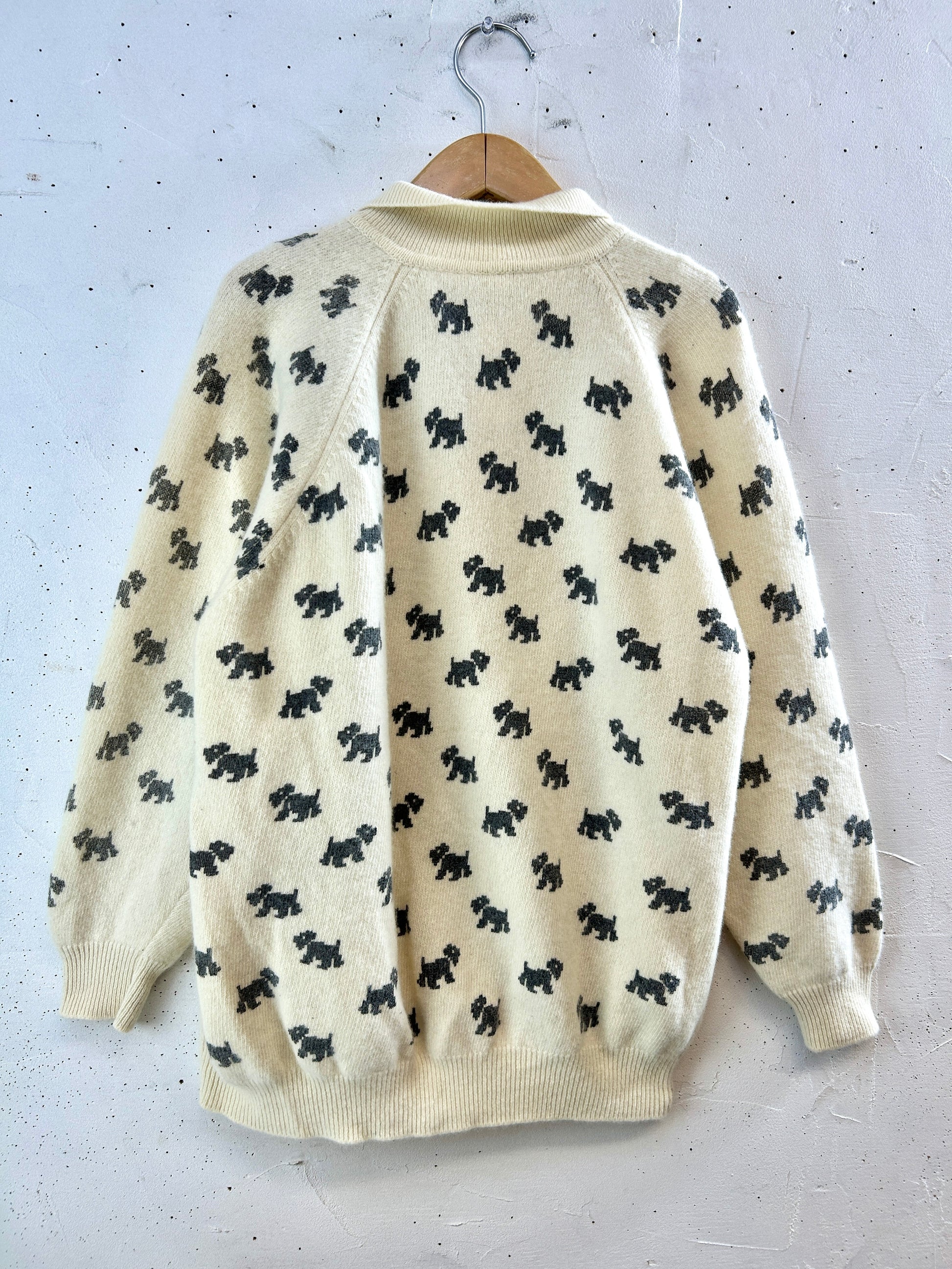 ホワイトボディに犬の編み柄が可愛いアイテム。