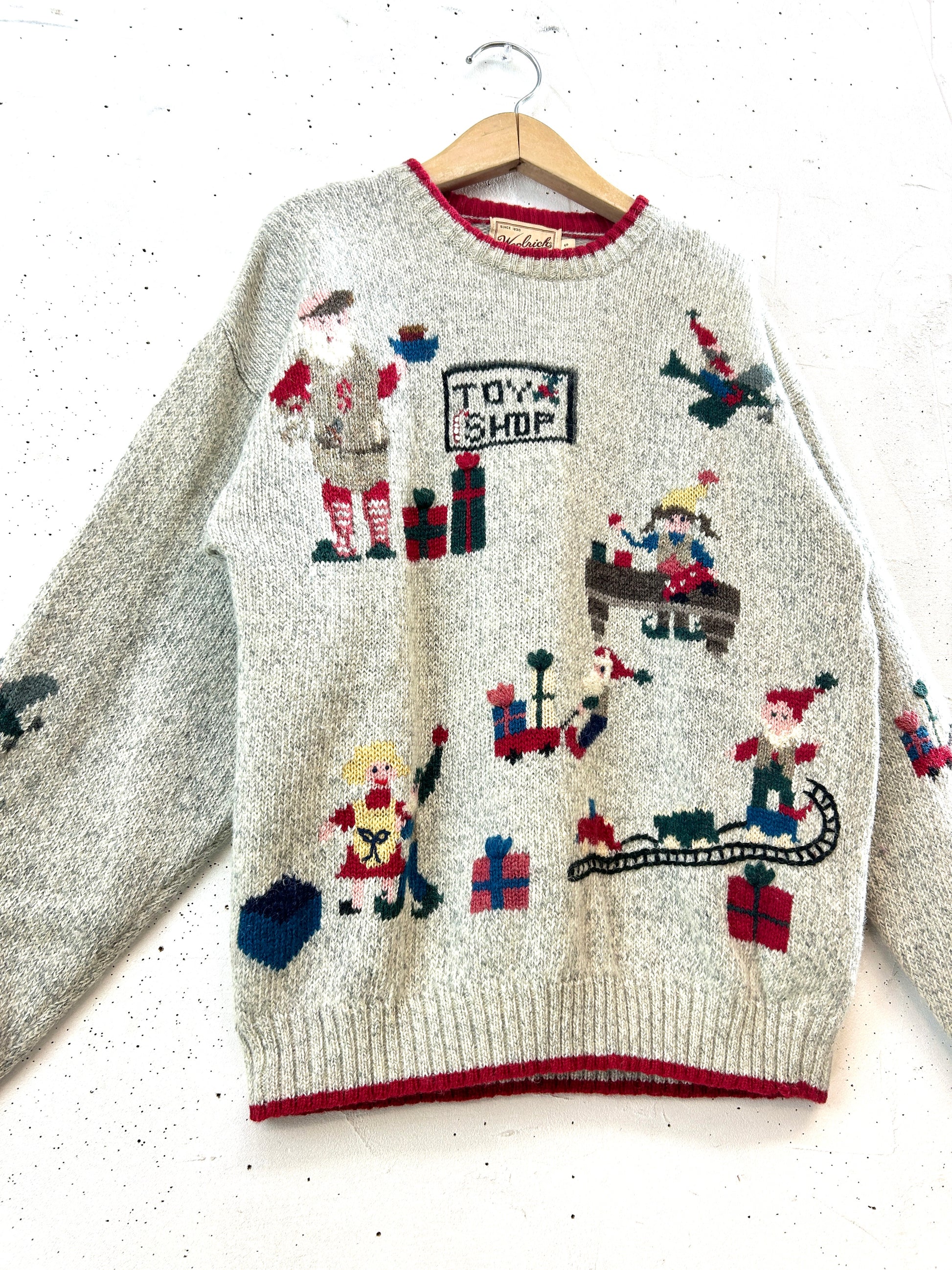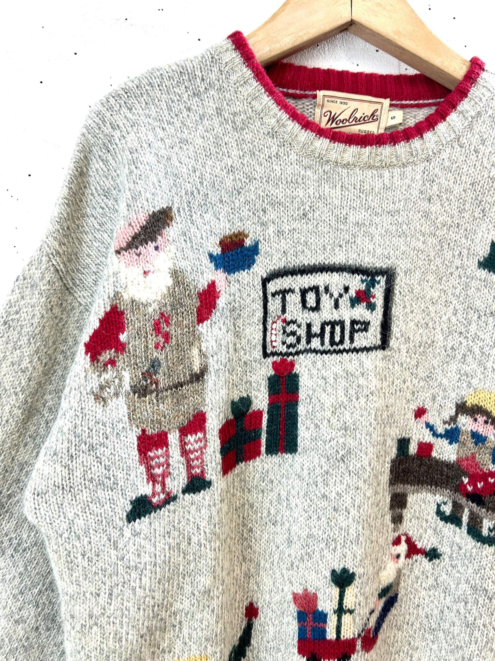 クリスマスに向けてのオモチャの準備をしているストーリー性のあるデザインがポップで目を惹く1着。