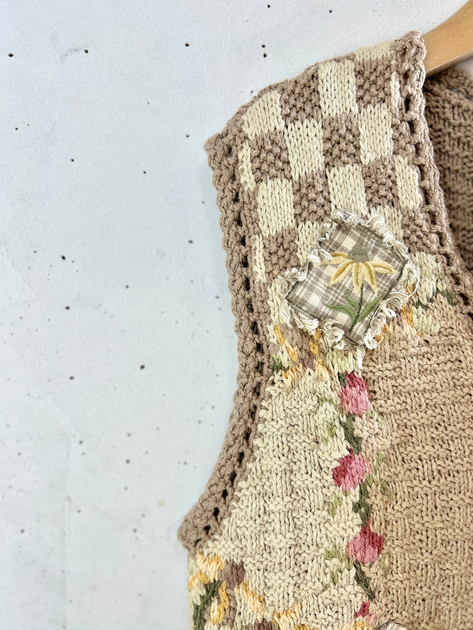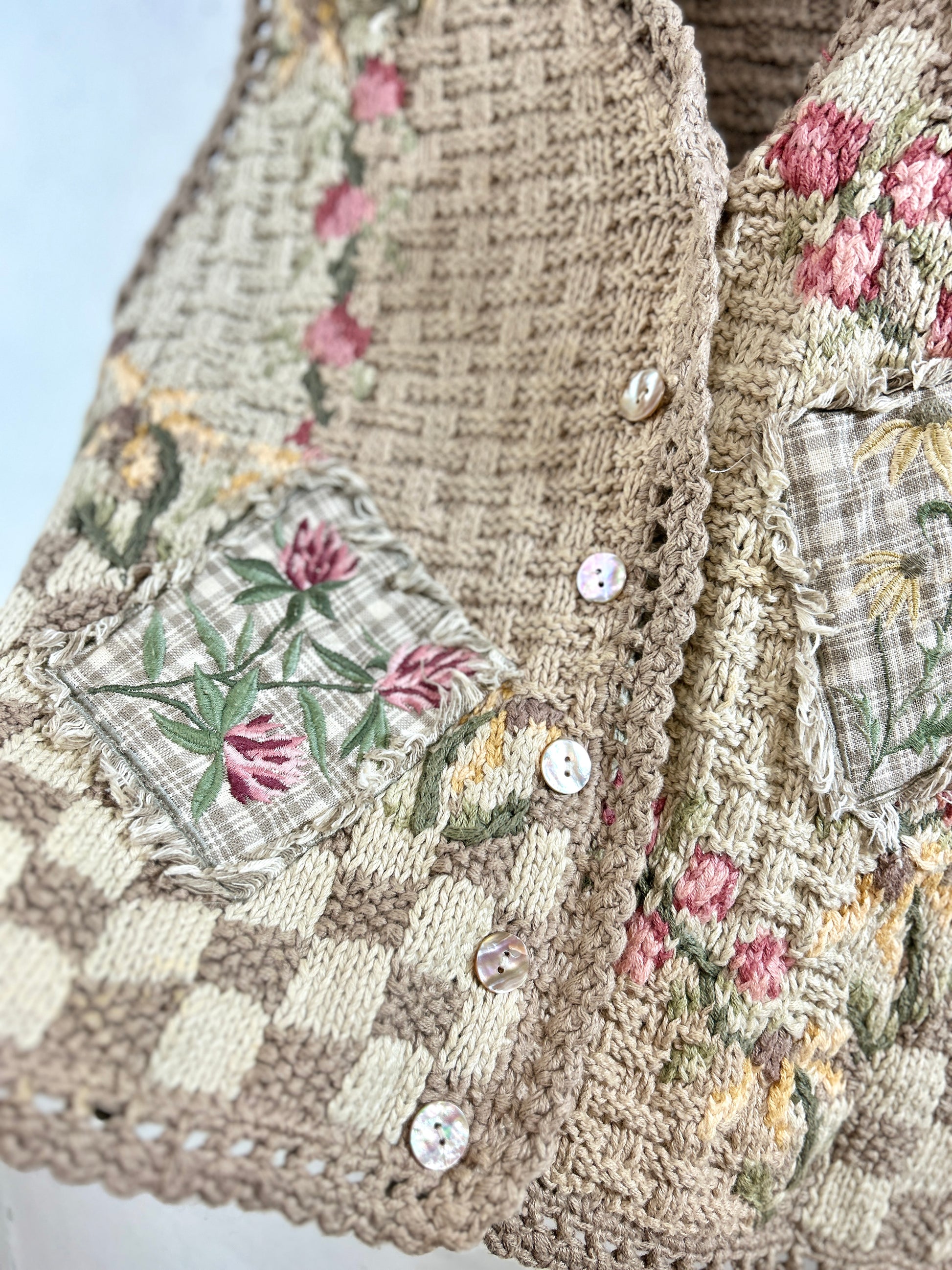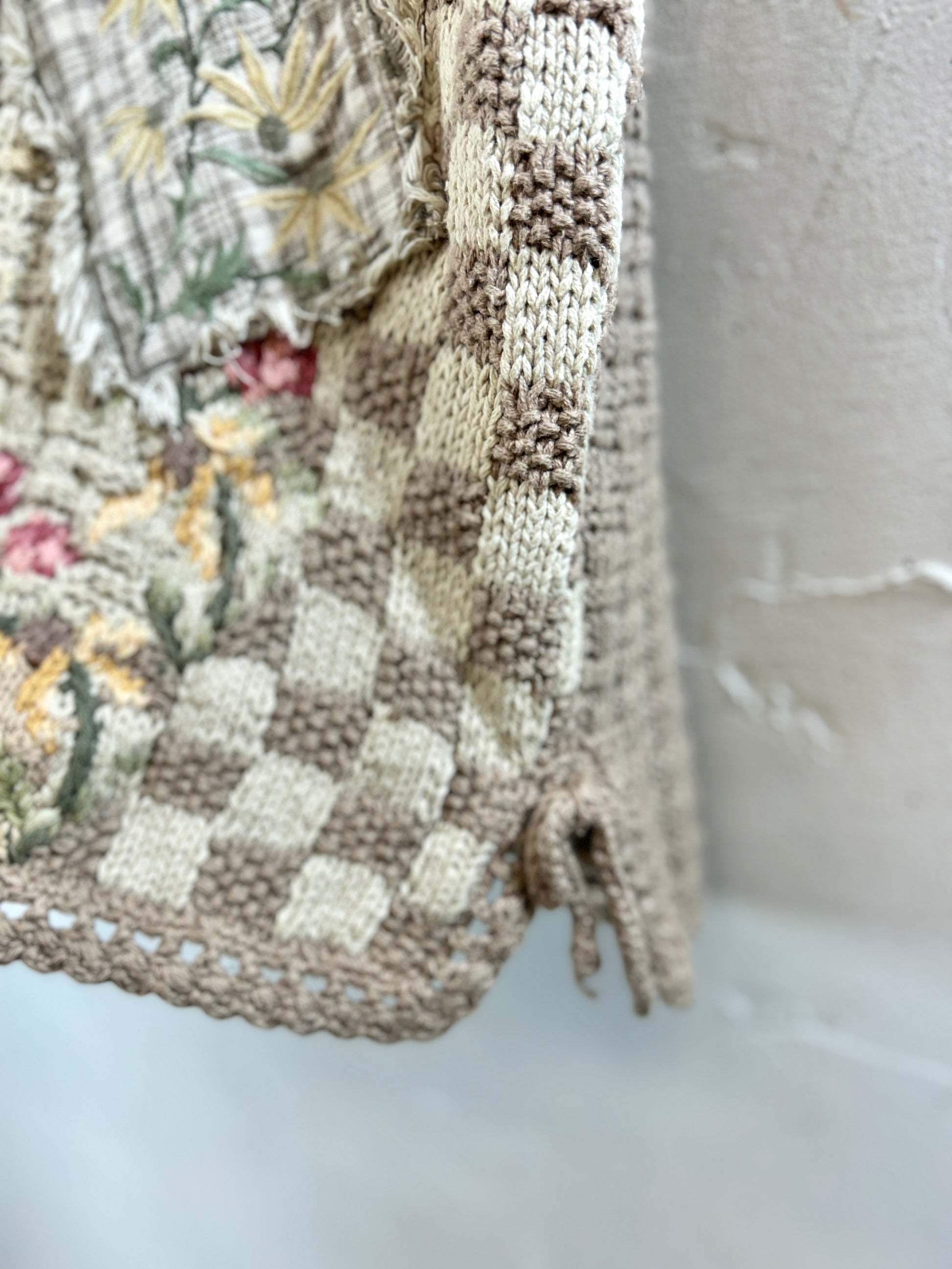 ハンドメイドニットにパッチワークが施されたナチュラルな雰囲気のラブリーな1着。