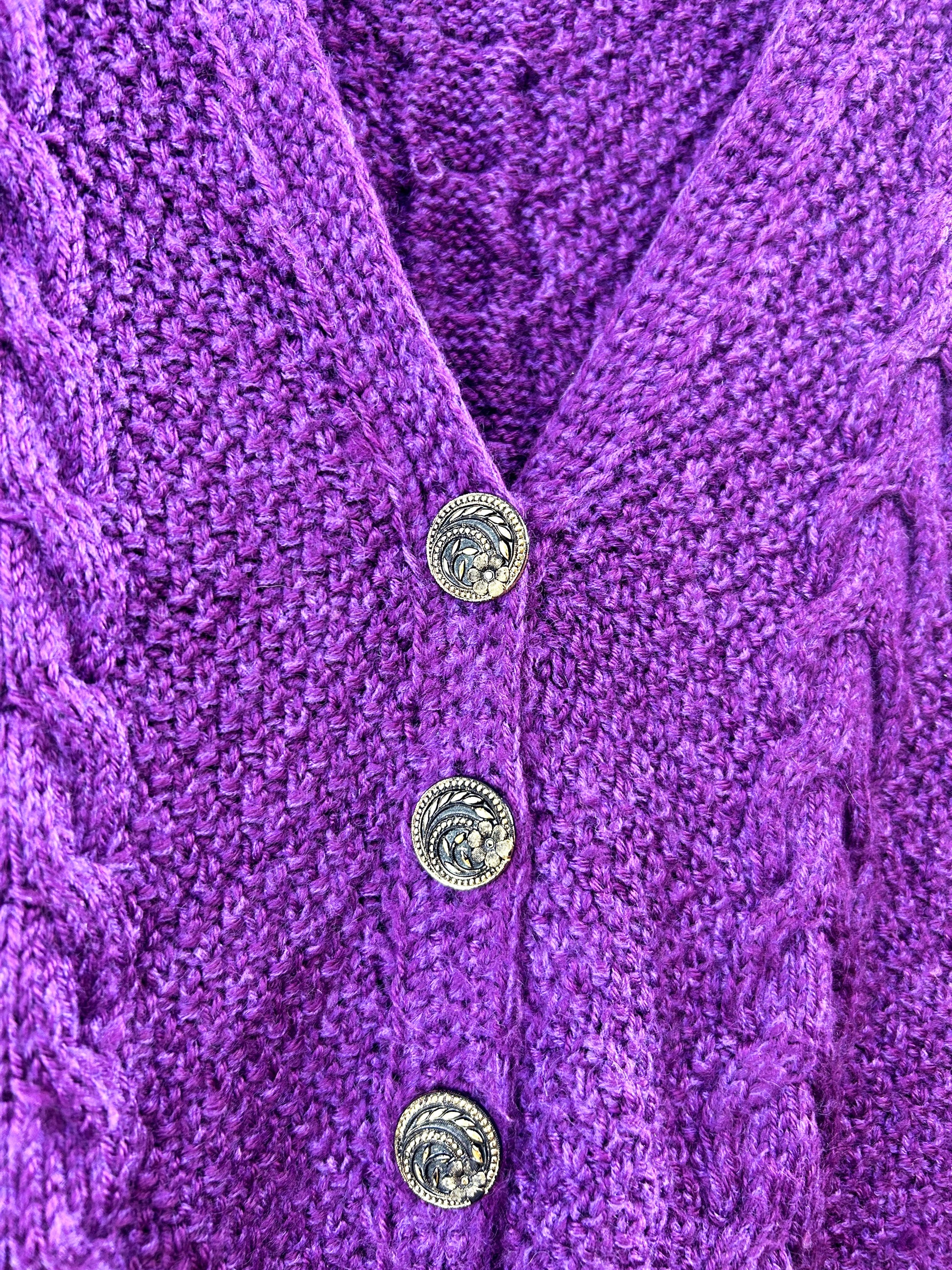 シンプルなケーブル編みですが、花柄のボタンがアクセントになってとても可愛らしいです。