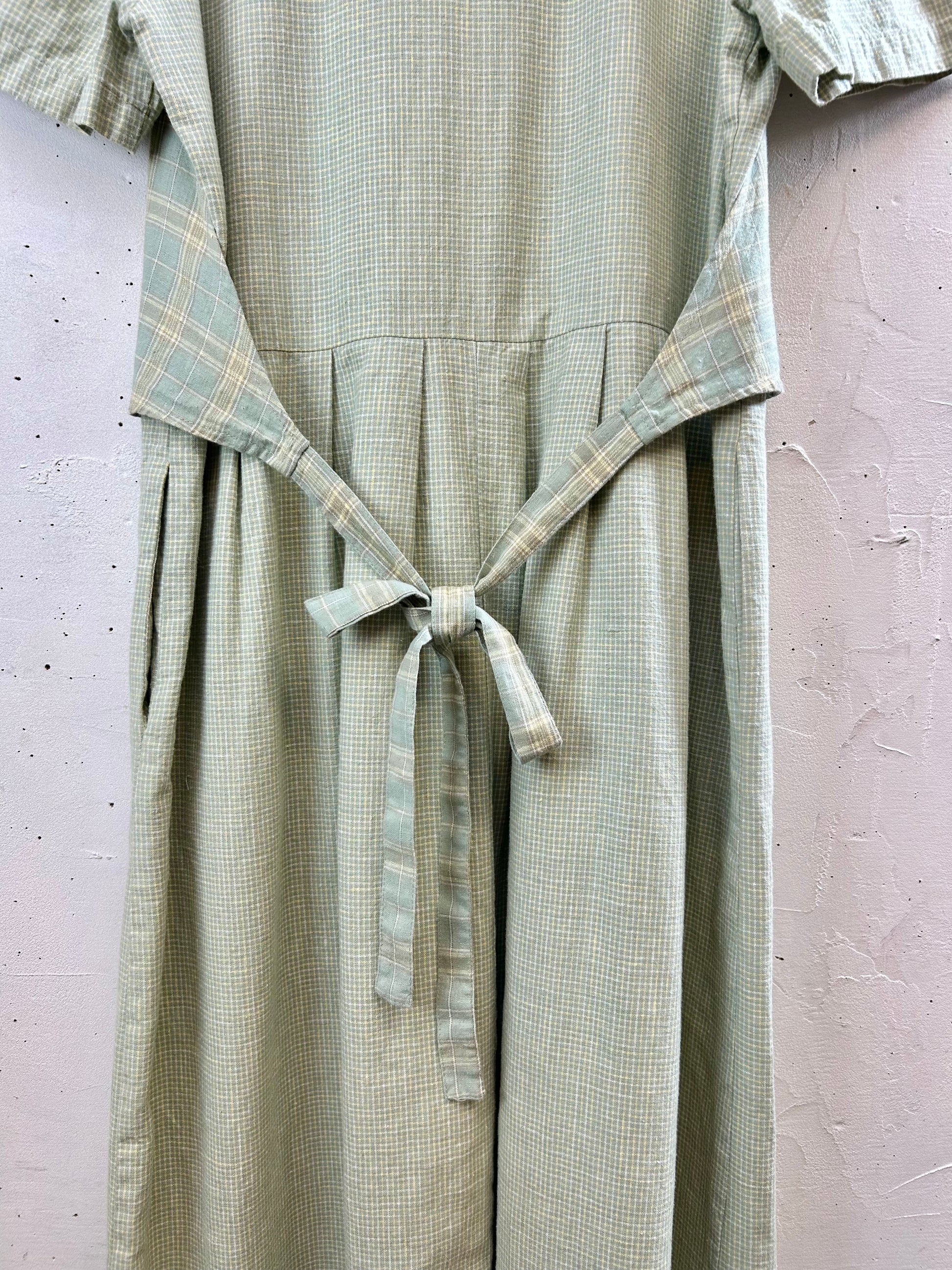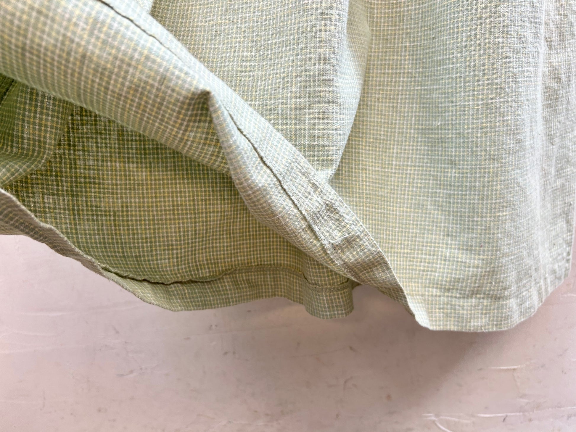 爽やかなグリーンチェックとリネンコットンの風合いの良い生地で暑い季節にぴったりです。