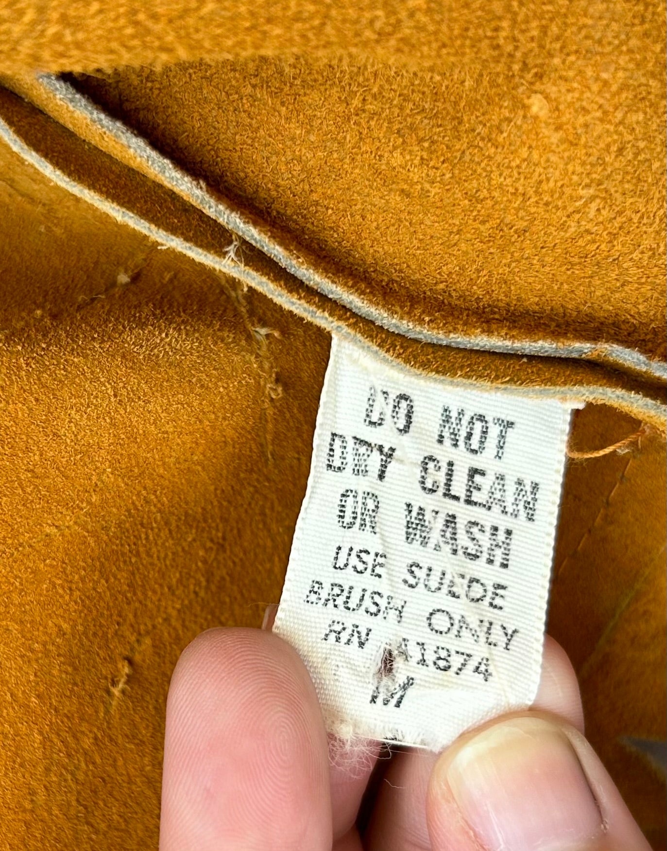 オレンジ味のあるライトブラウンのスエードが可愛い一着。