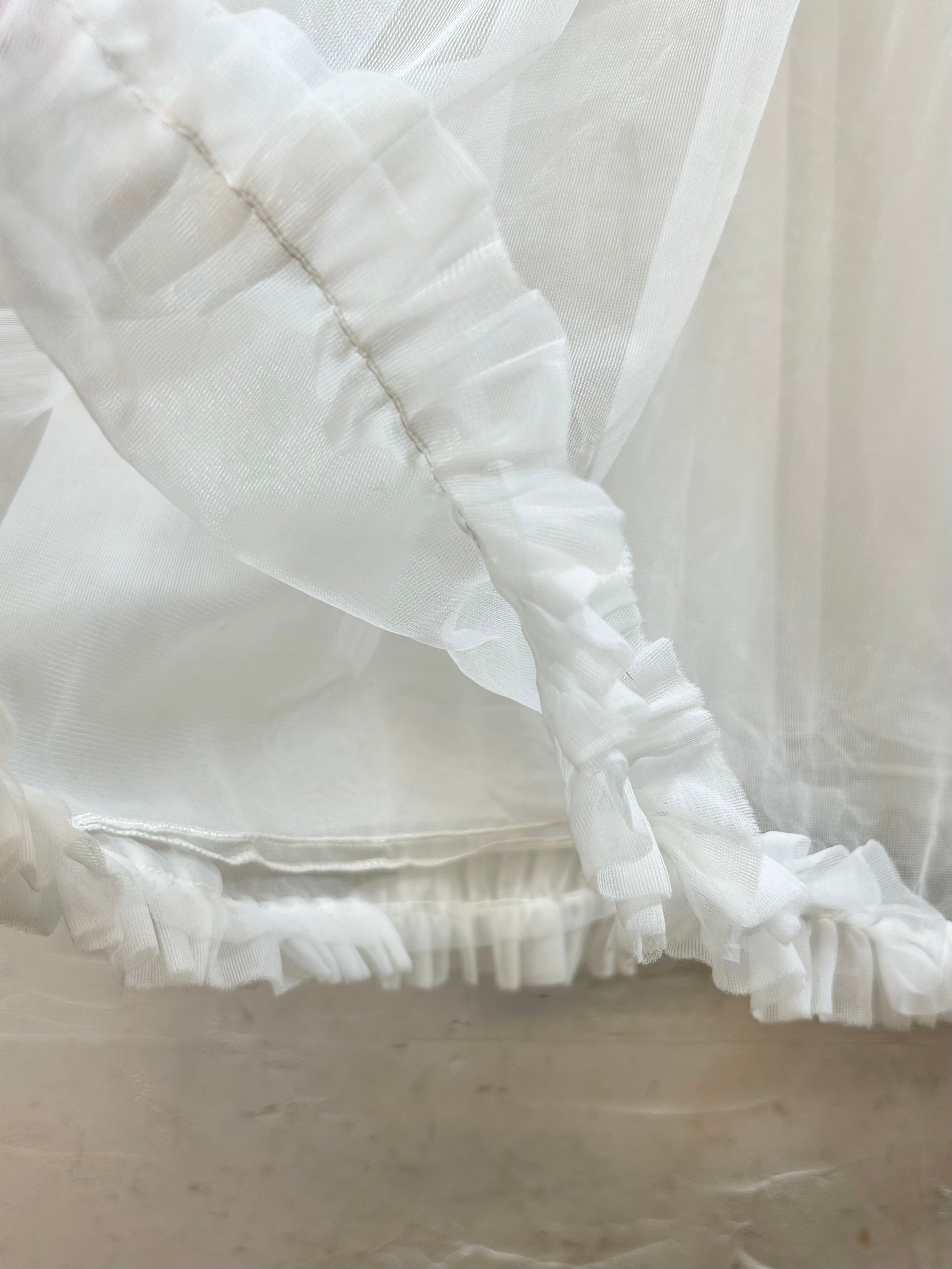 ホワイトのシアー生地とレース生地を使用した非常に可愛らしい一着。