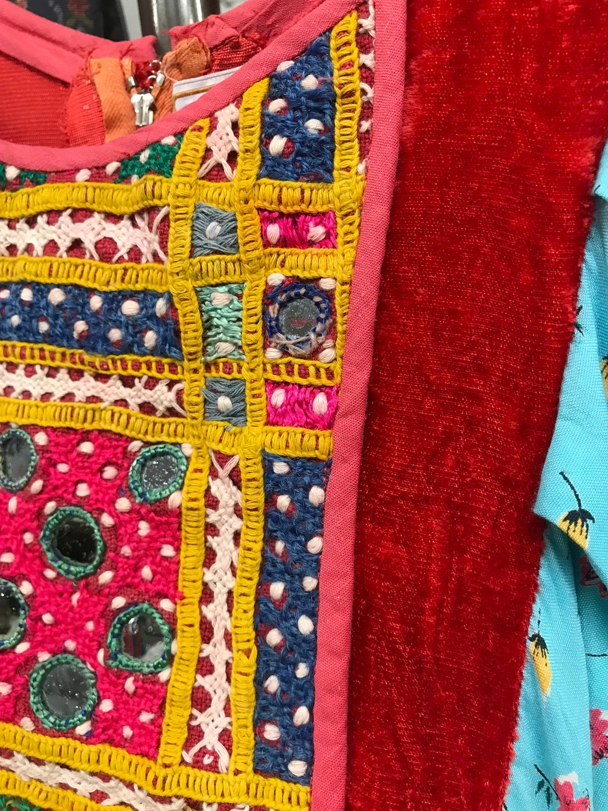 色鮮やかで繊細な刺繍とミラーワークが美しく目を引く1着。