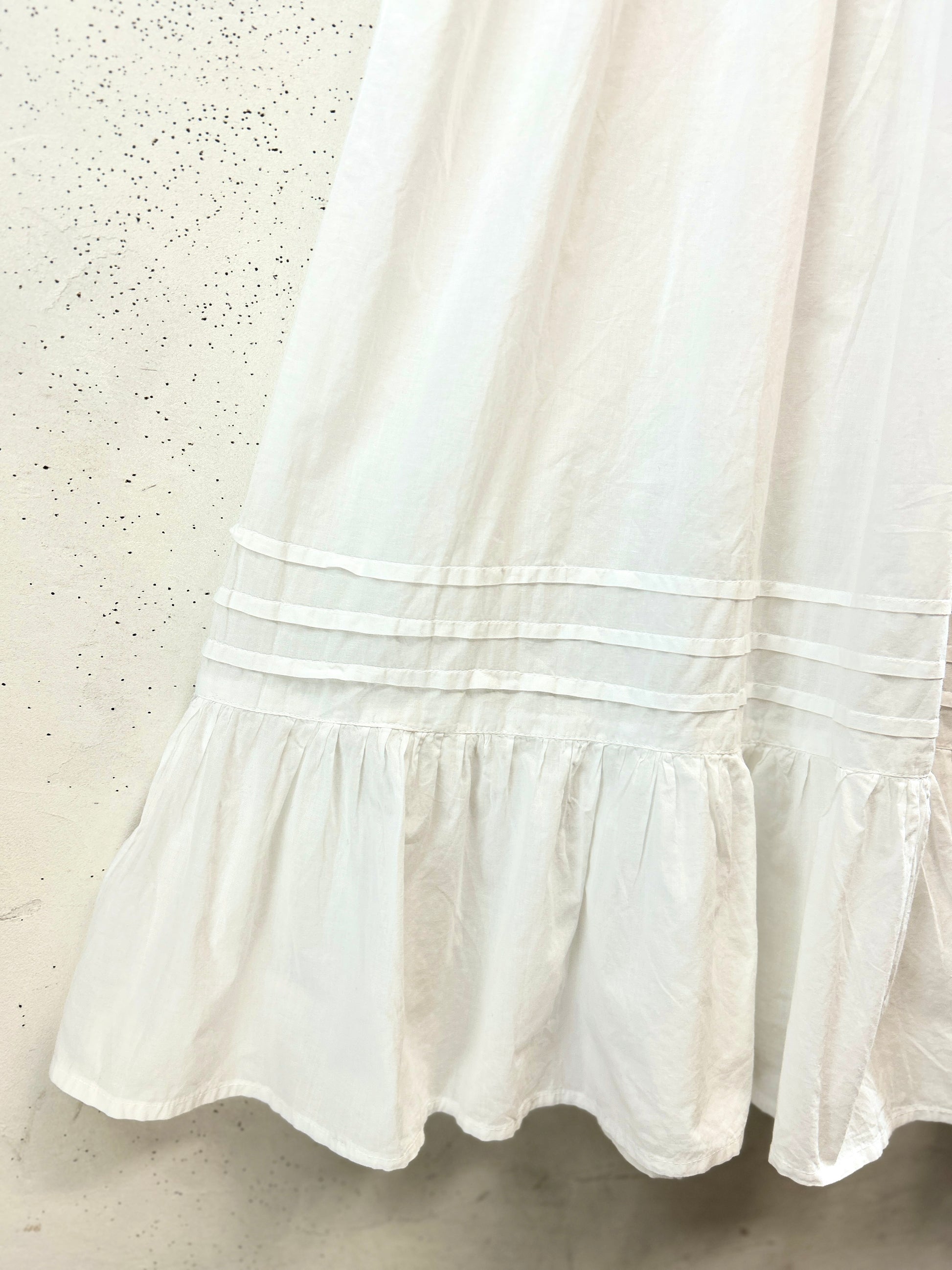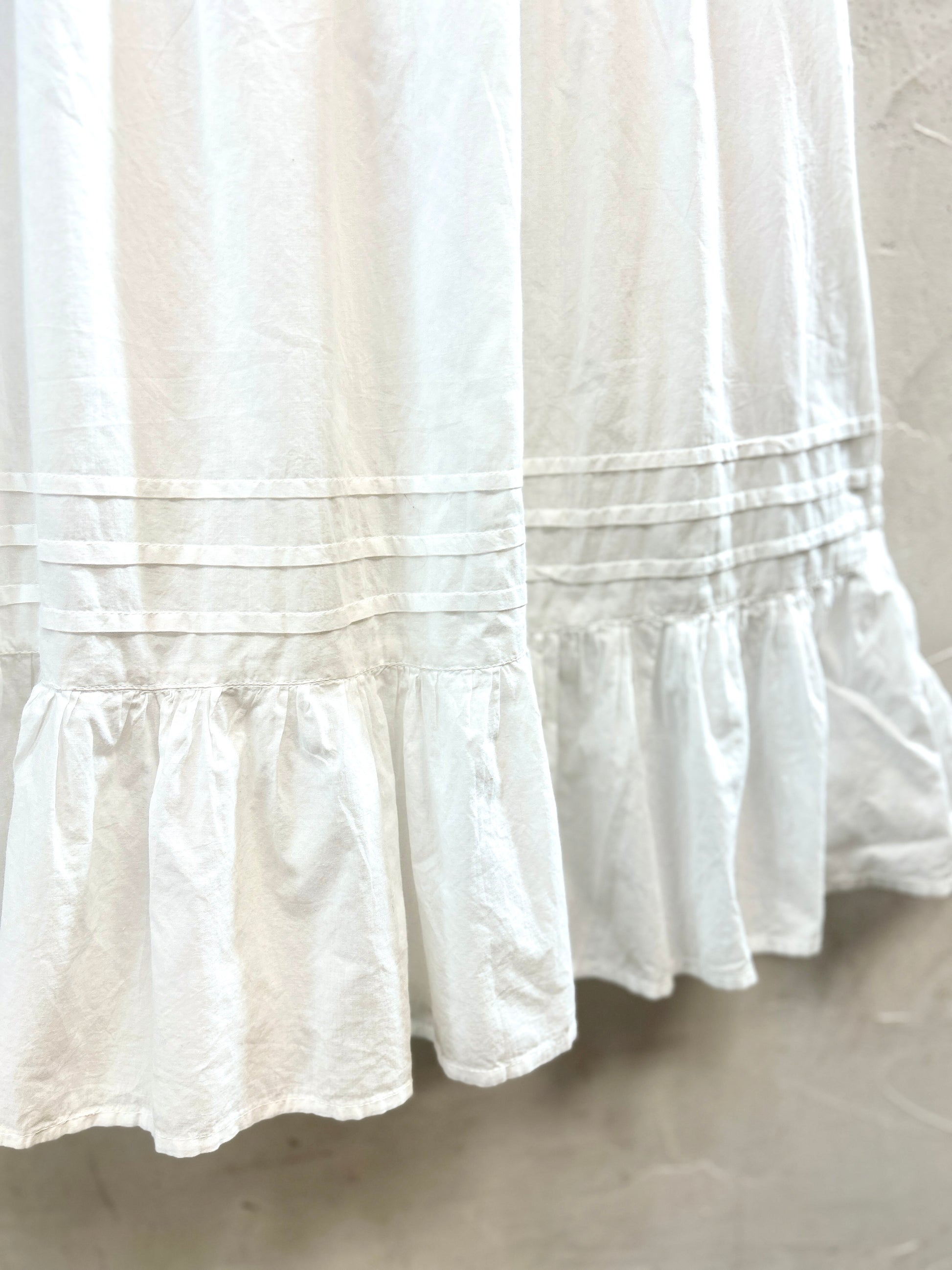 フロントとバックのタックや、フロント刺繍、編みレースなど、しっかりと丁寧に作り込まれております。