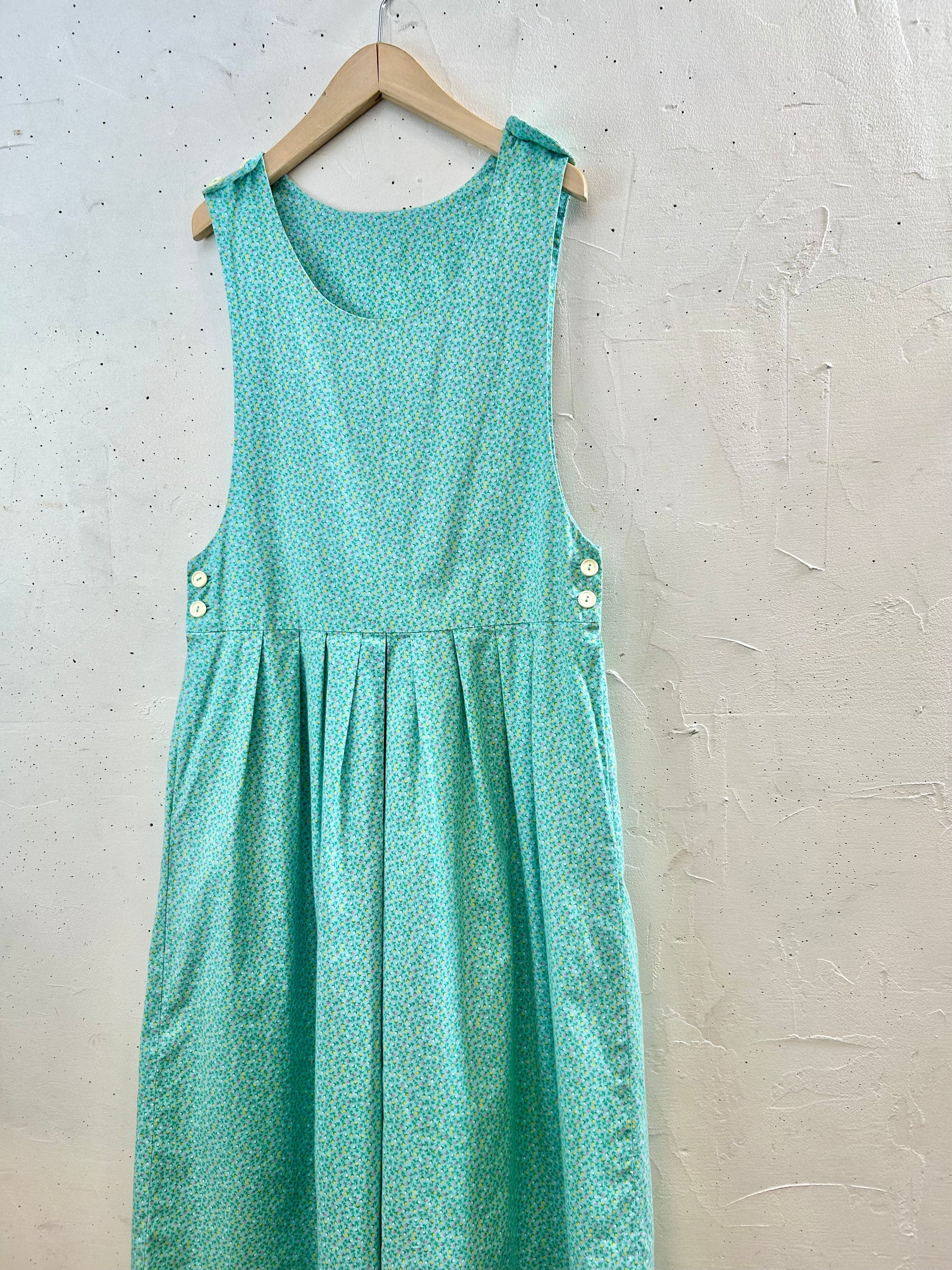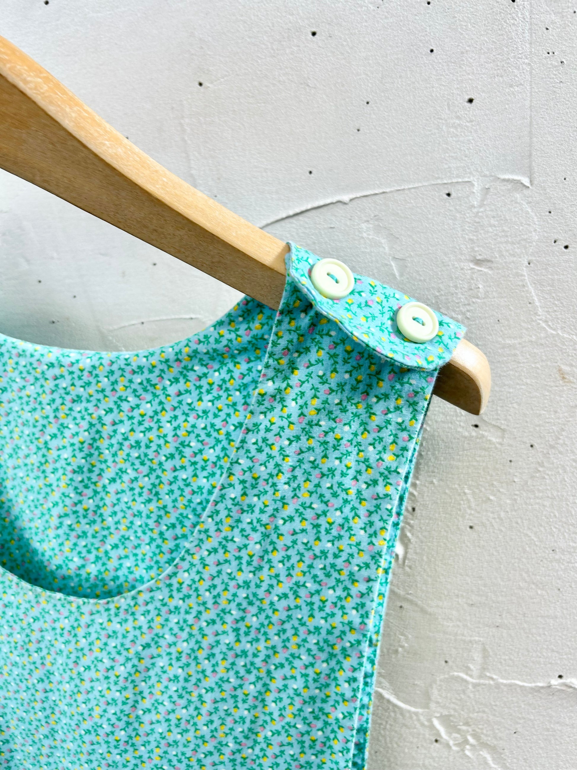 ビンテージならではのハンドメイドアイテムで、ミントブルーボディにキュートなカラーの小花柄がとても可愛らしい一着。