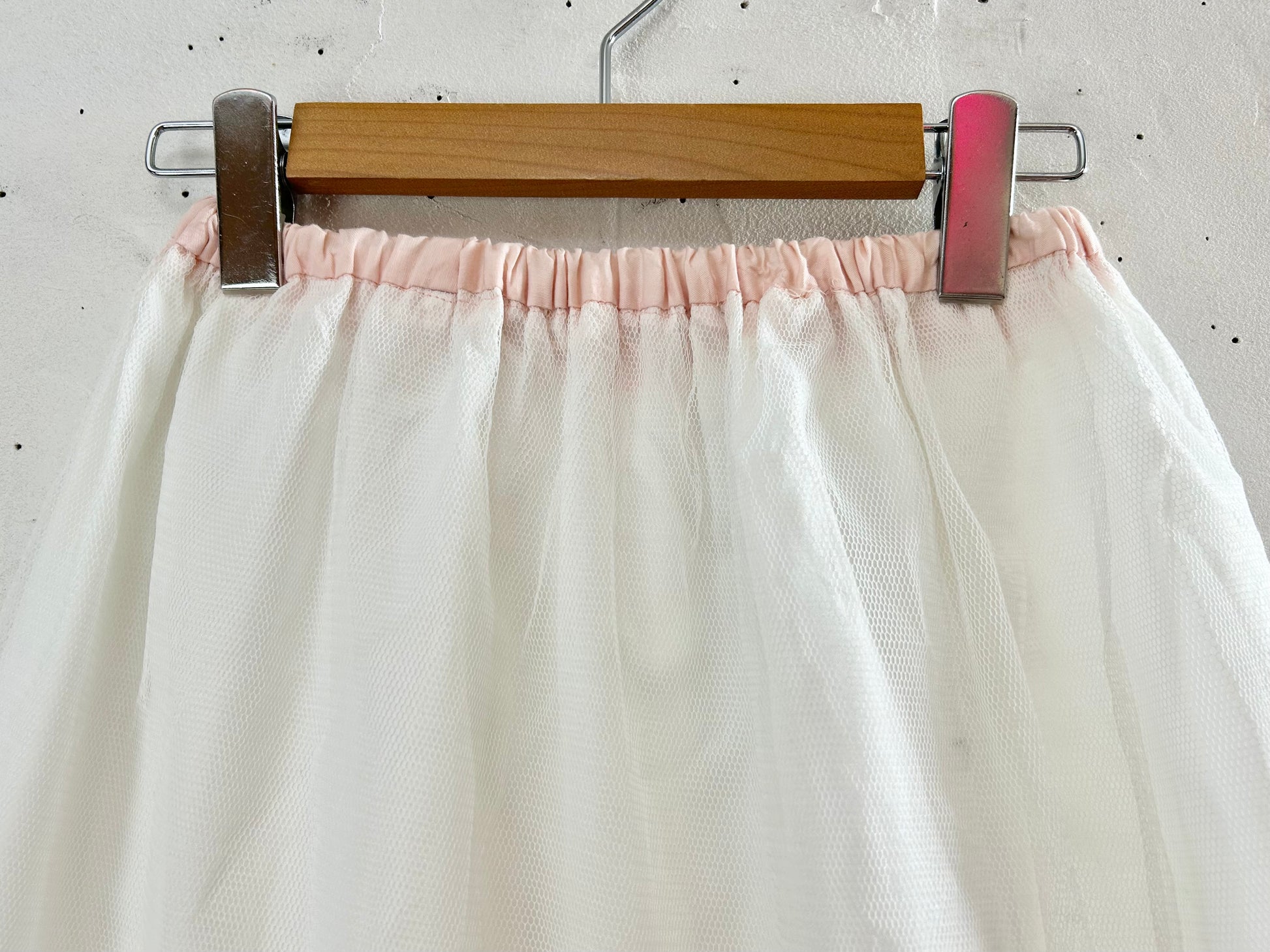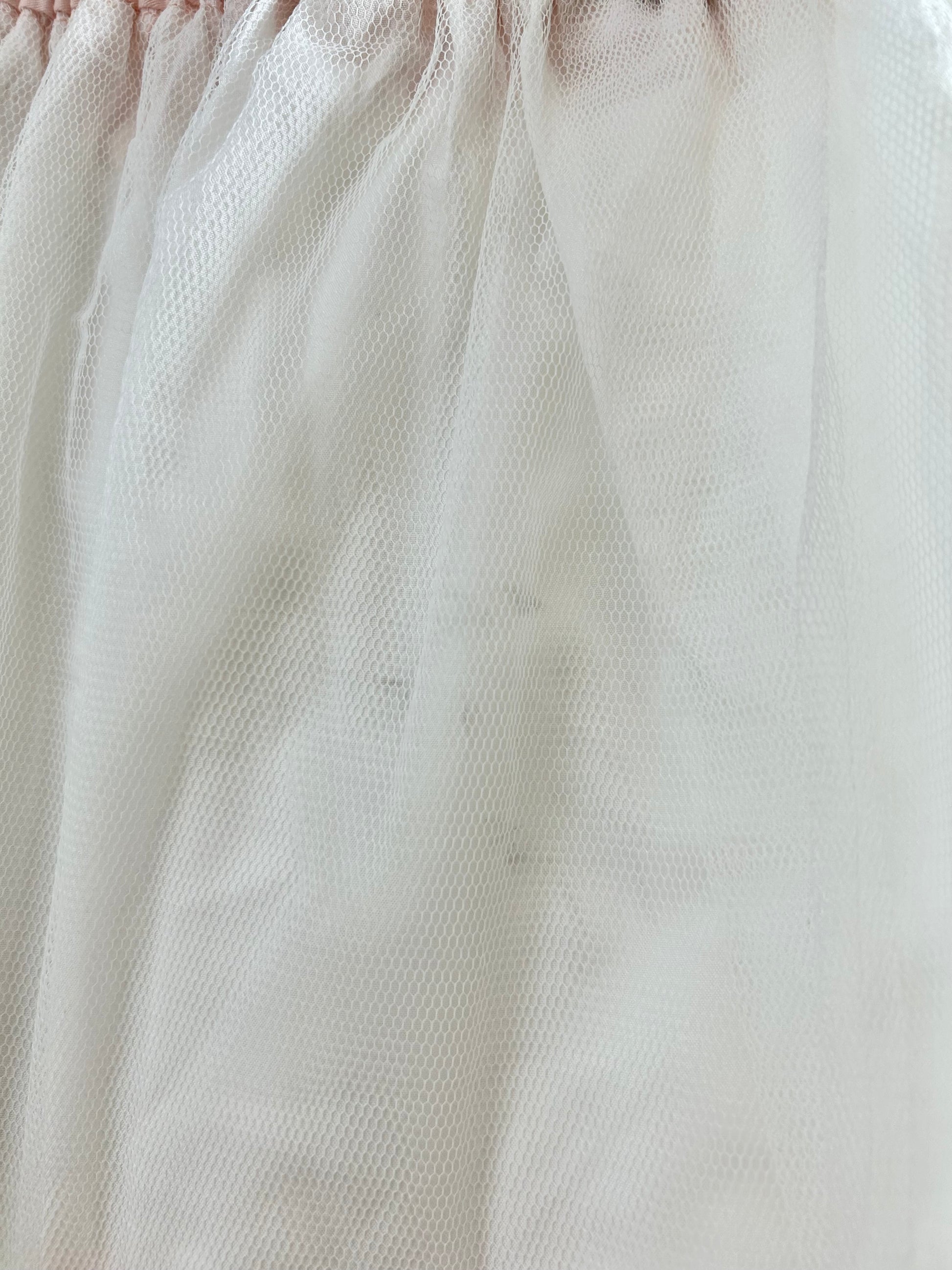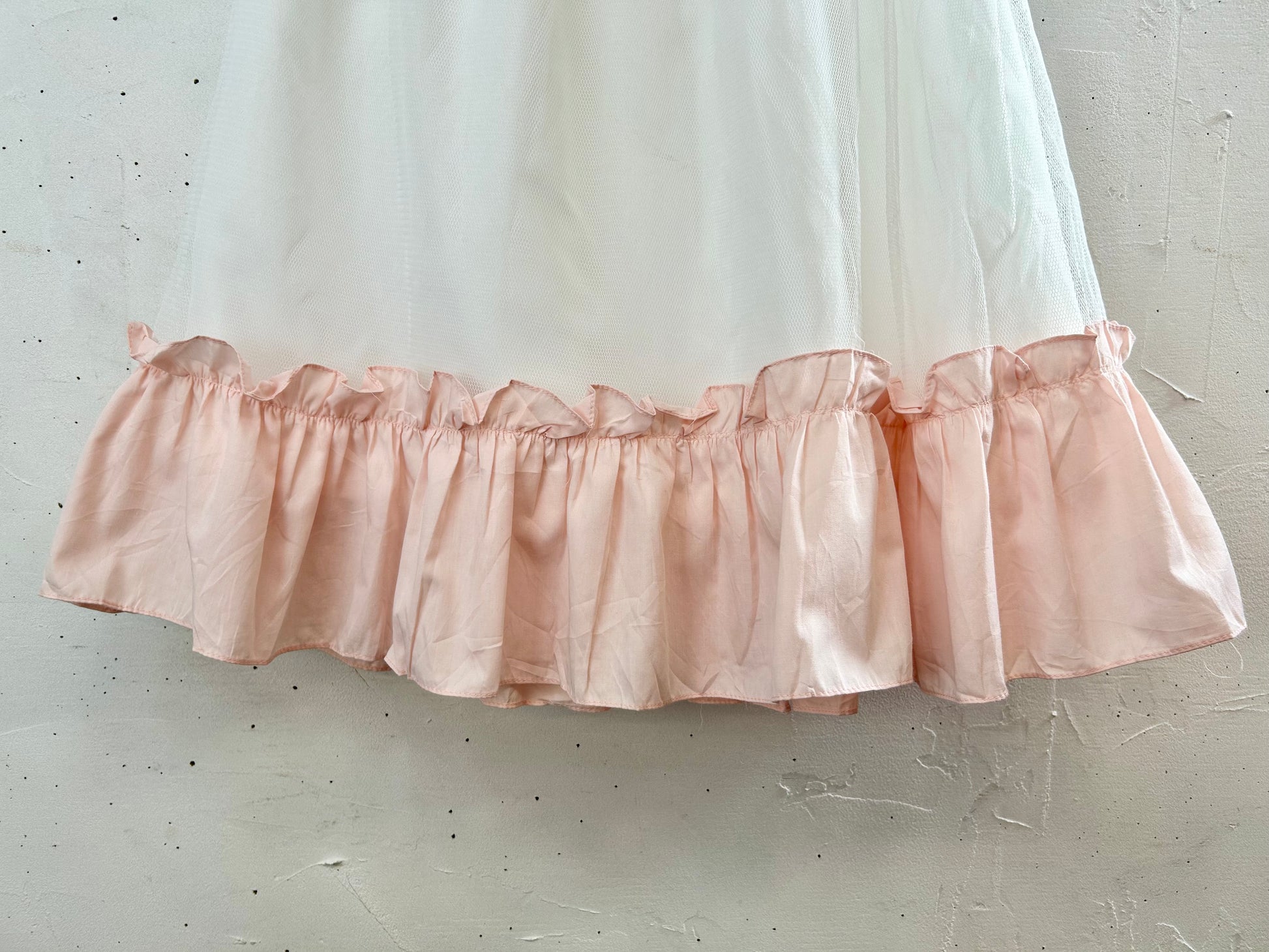 ホワイトチュールに淡いピンクの切替がガーリーな一着。